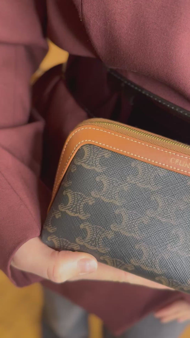 Celine Cosmetic Pouch in Triomphe Canvas And Calfskin Leather