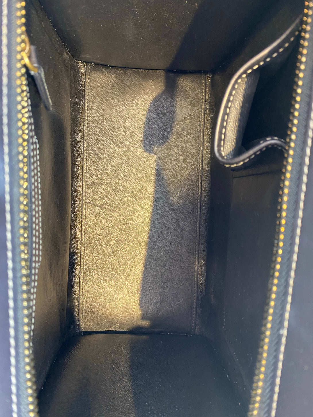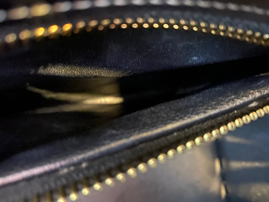 Good: Items show more prominent wear such as noticeable discoloration, stains and snags to fabric. May have worn corners and handles, tarnishing to hardware and creasing to leather. Pen or make up marks may be visible in the interior of the bag.