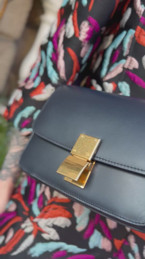 Celine Navy Leather Small Box Bag
