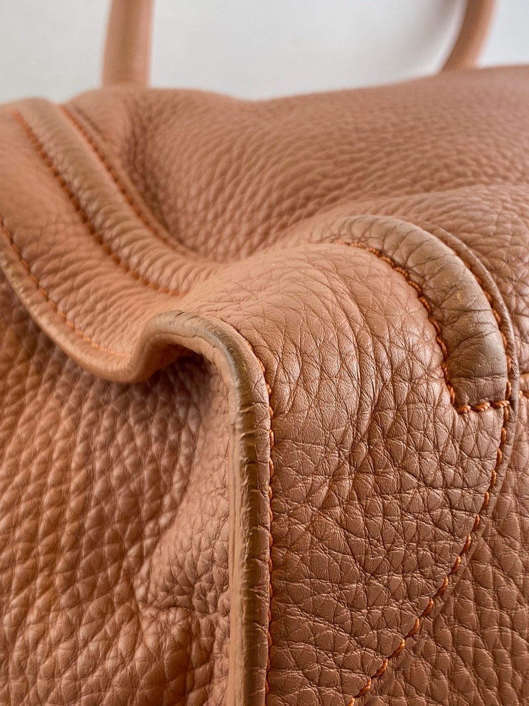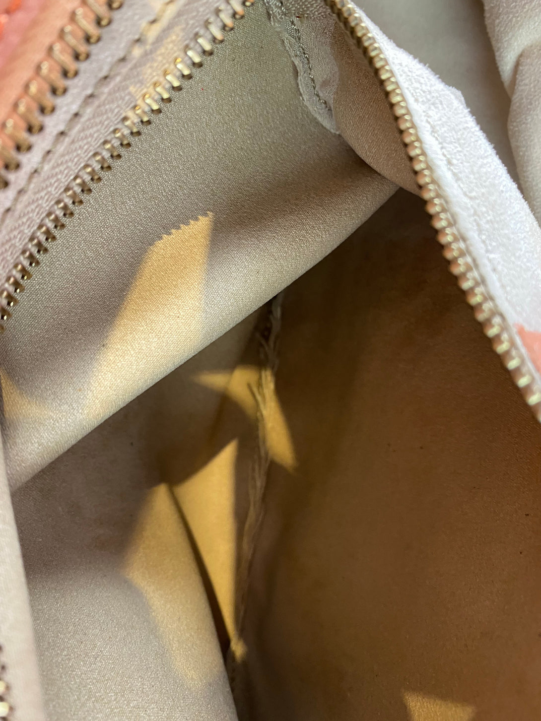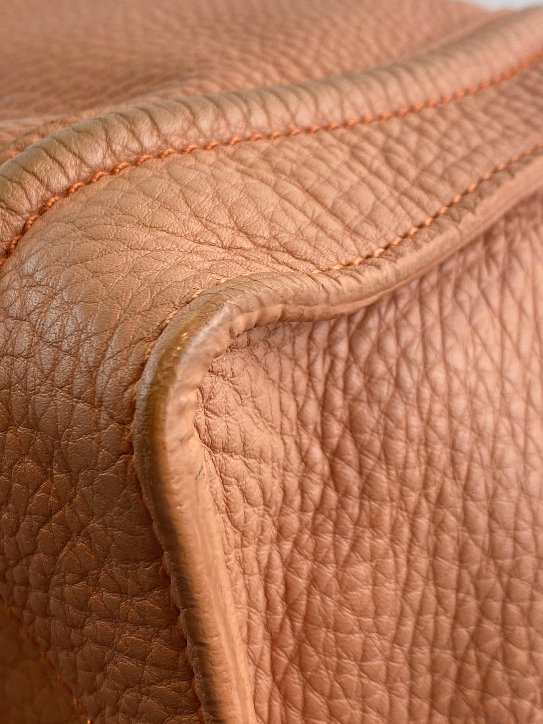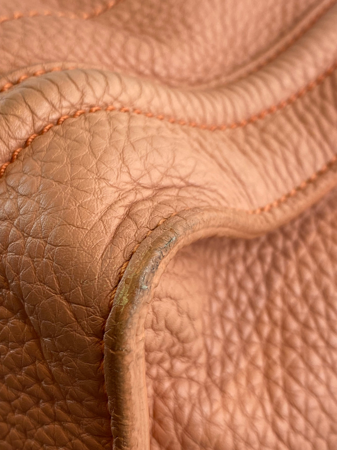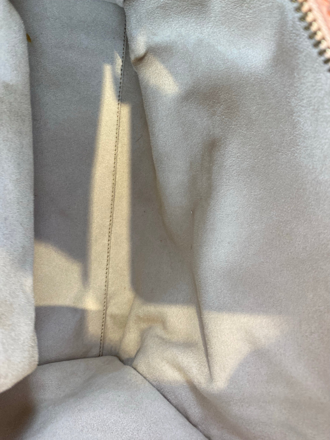 Good: Items show more prominent wear such as noticeable discoloration, stains and snags to fabric. May have worn corners and handles, tarnishing to hardware and creasing to leather. Pen or make up marks may be visible in the interior of the bag.
