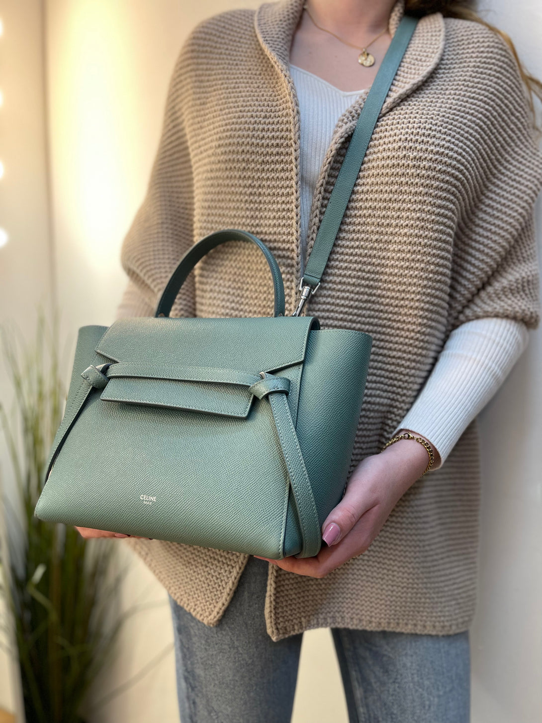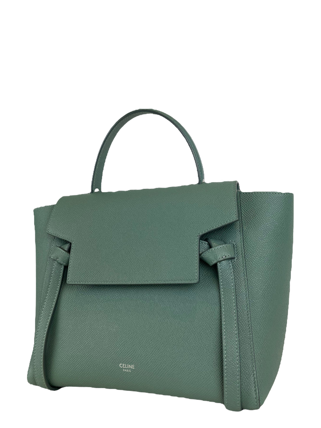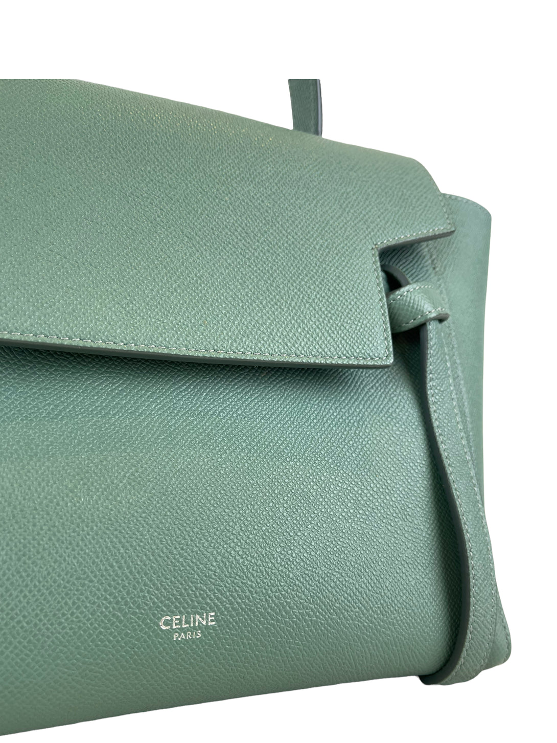 Celine Sea Green Grained Calfskin Leather "Micro Beltbag" Crossbody