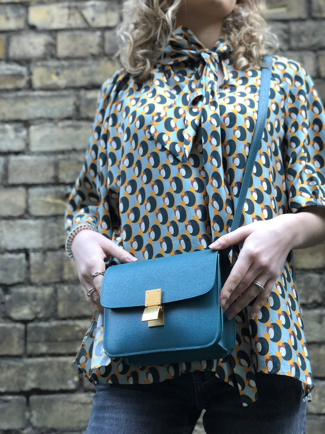 Celine Teal Leather 'Classic Box' Crossbody