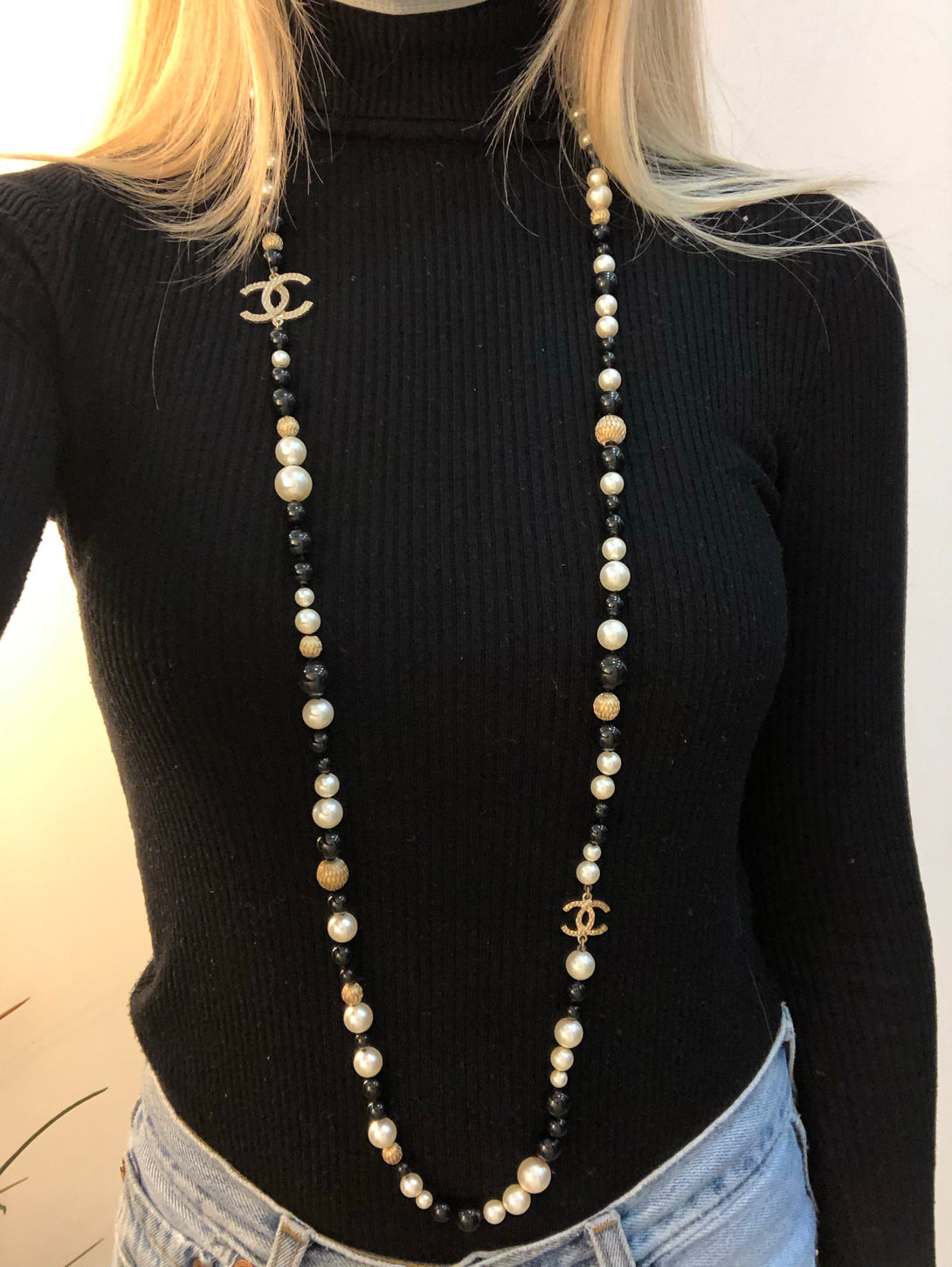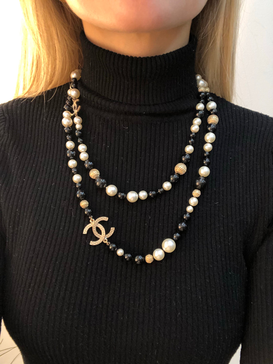 Chanel Black and White Faux Pearl Necklace