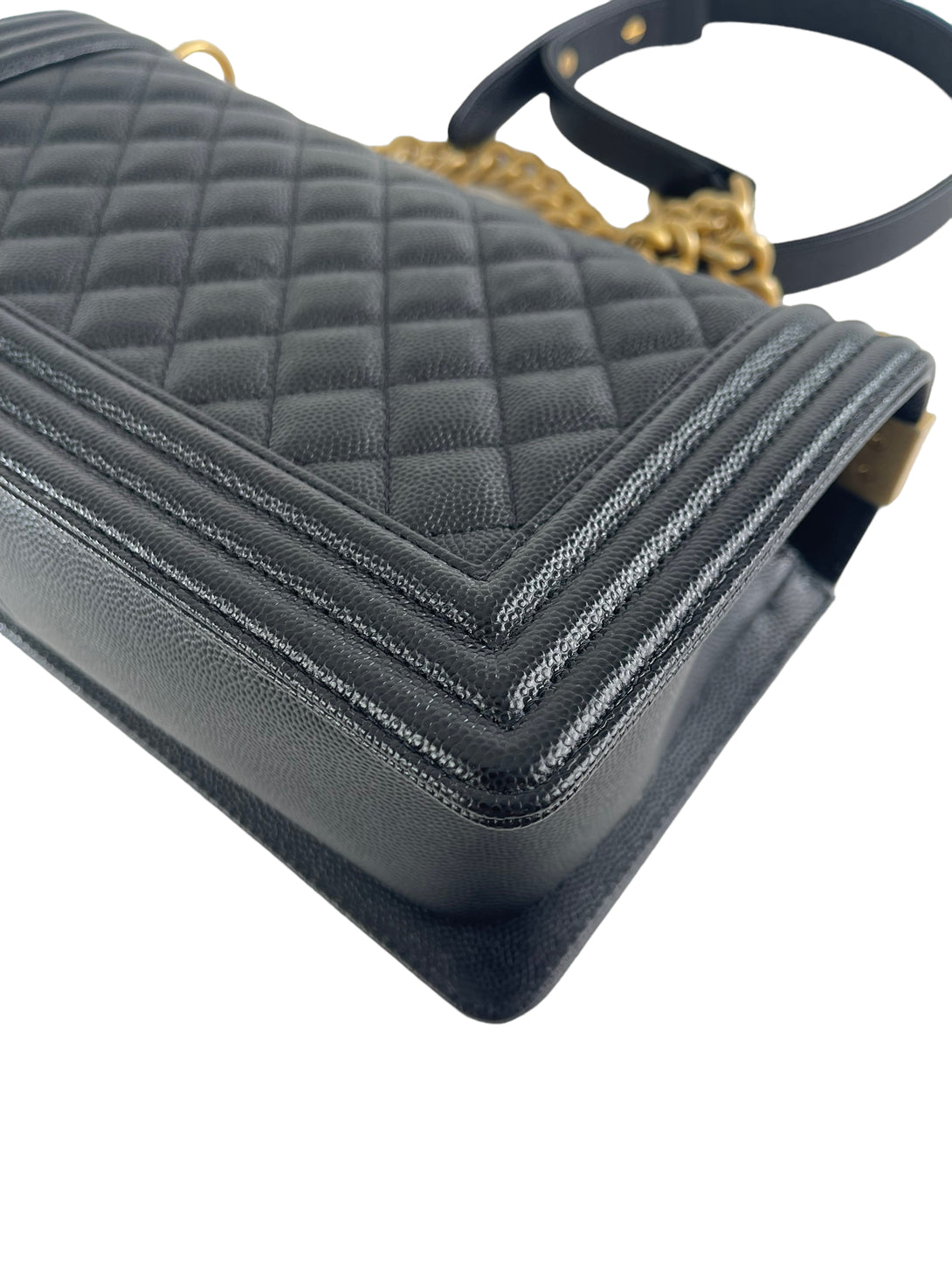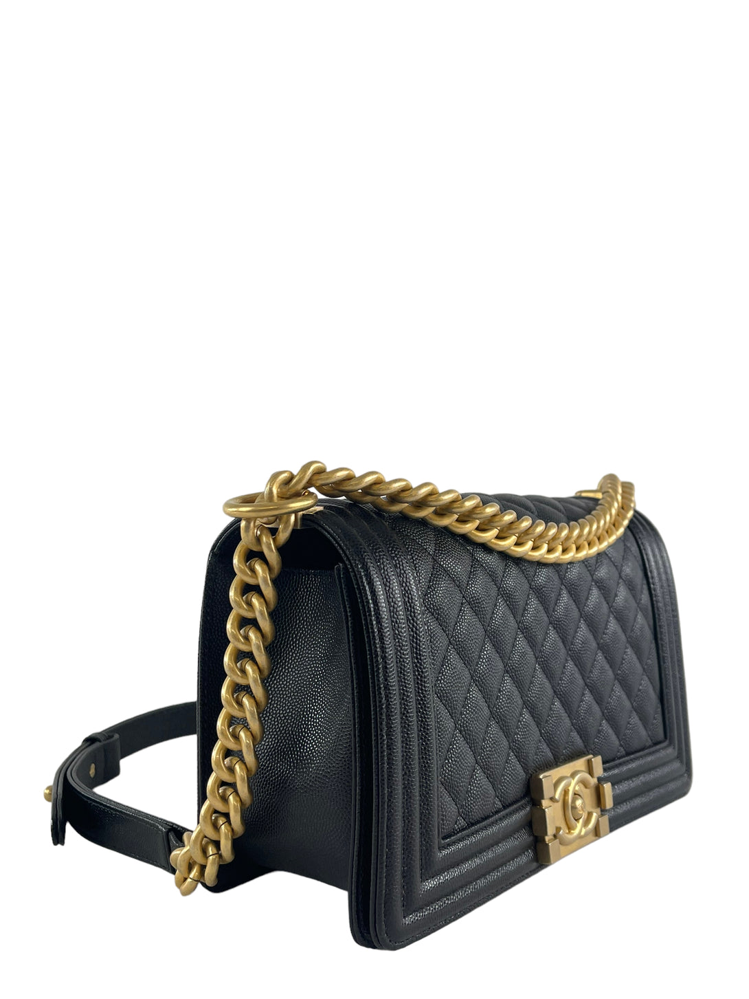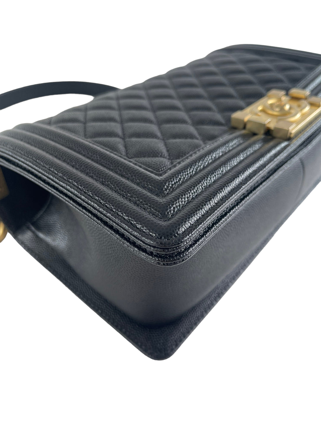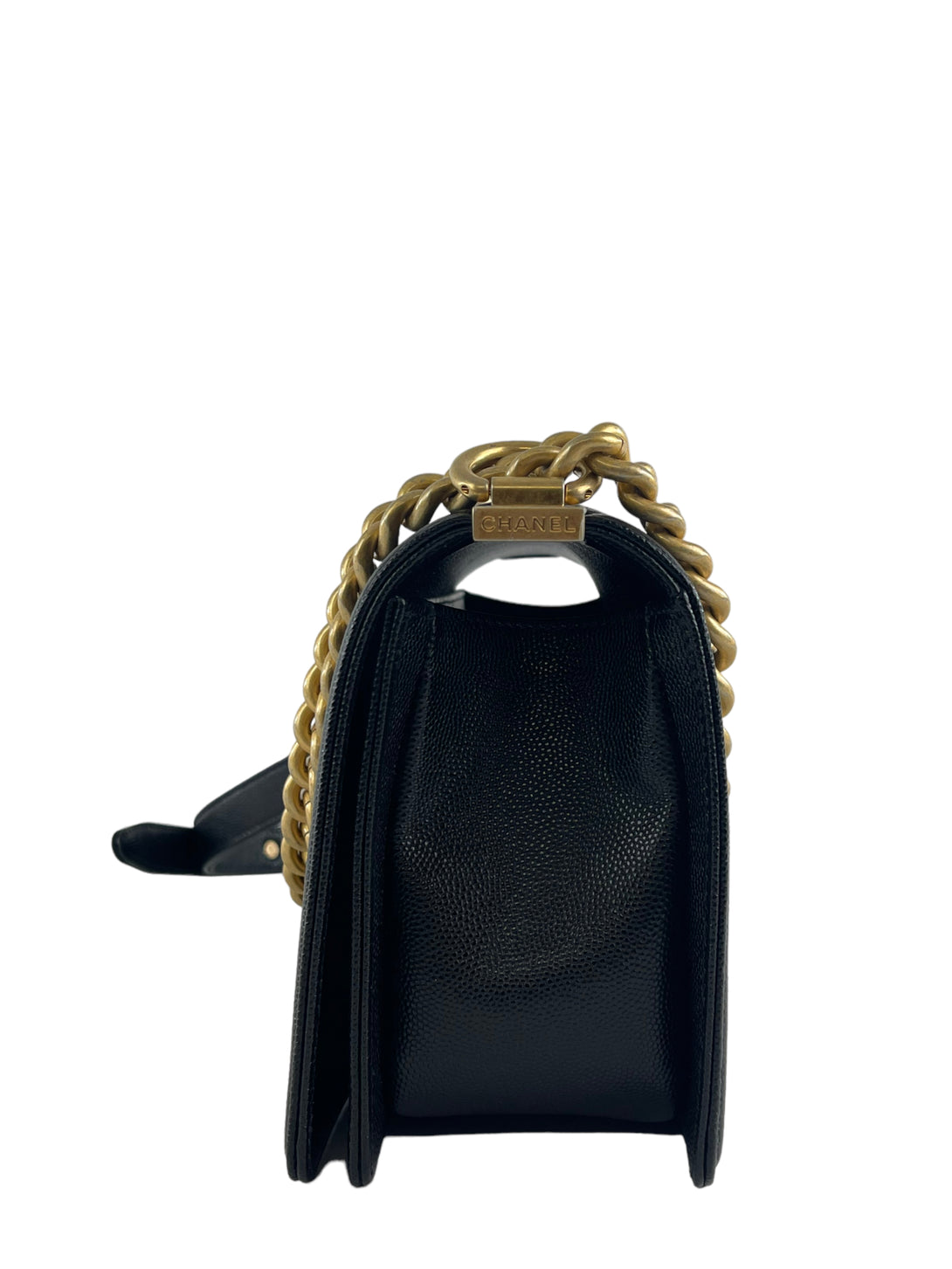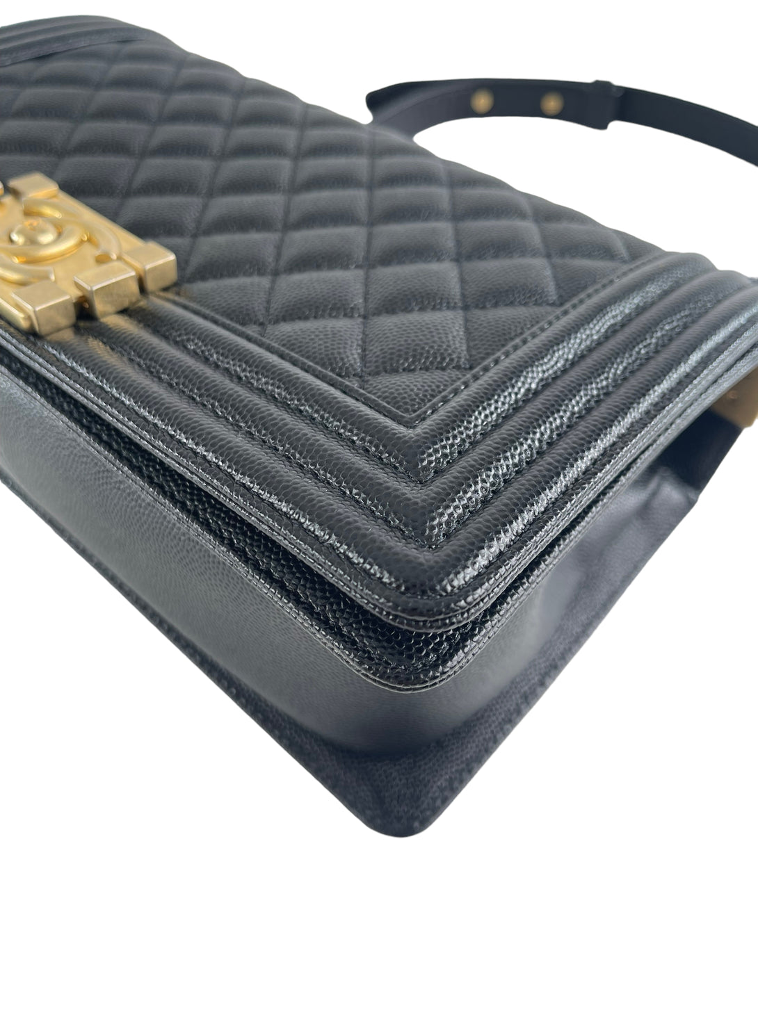 Chanel Black Caviar Leather Boy Bag W/ Goldtone Hardware
