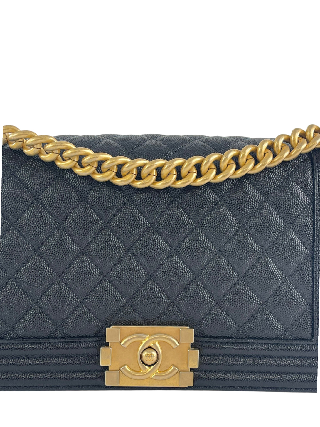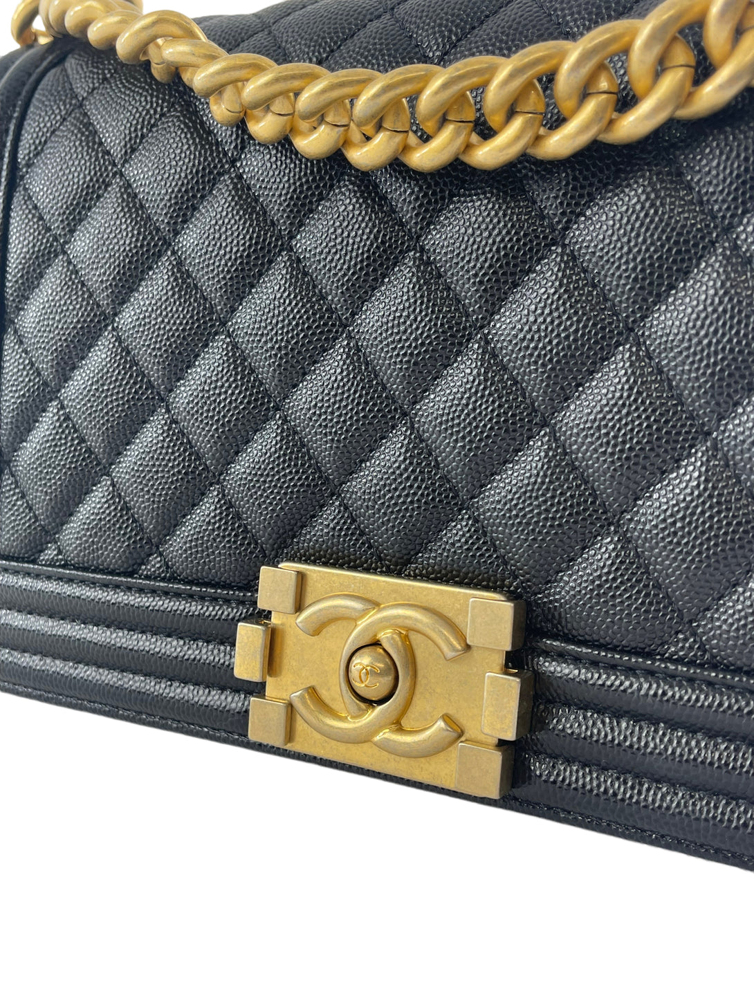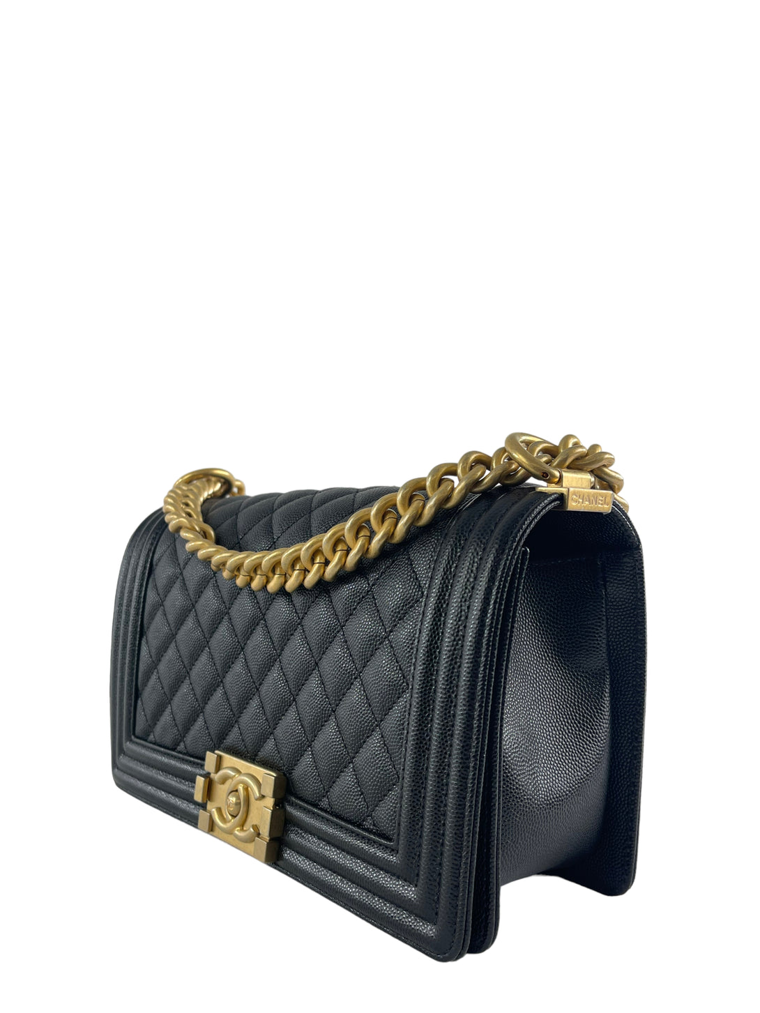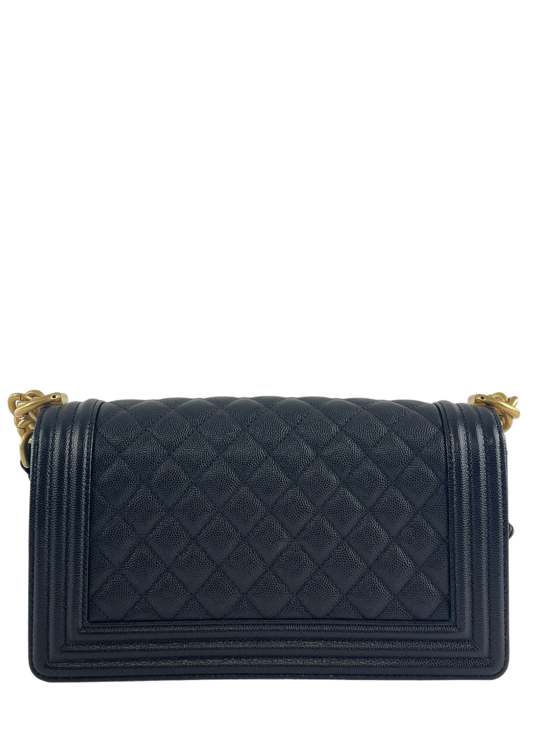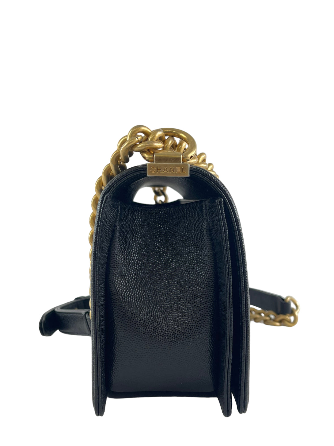 Chanel Black Caviar Leather Boy Bag W/ Goldtone Hardware