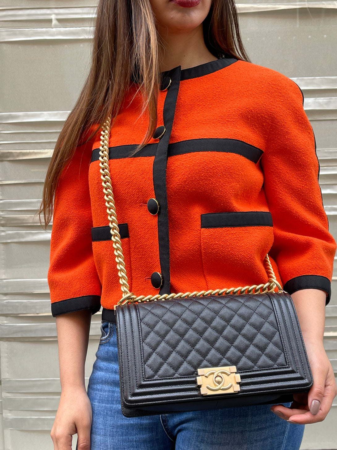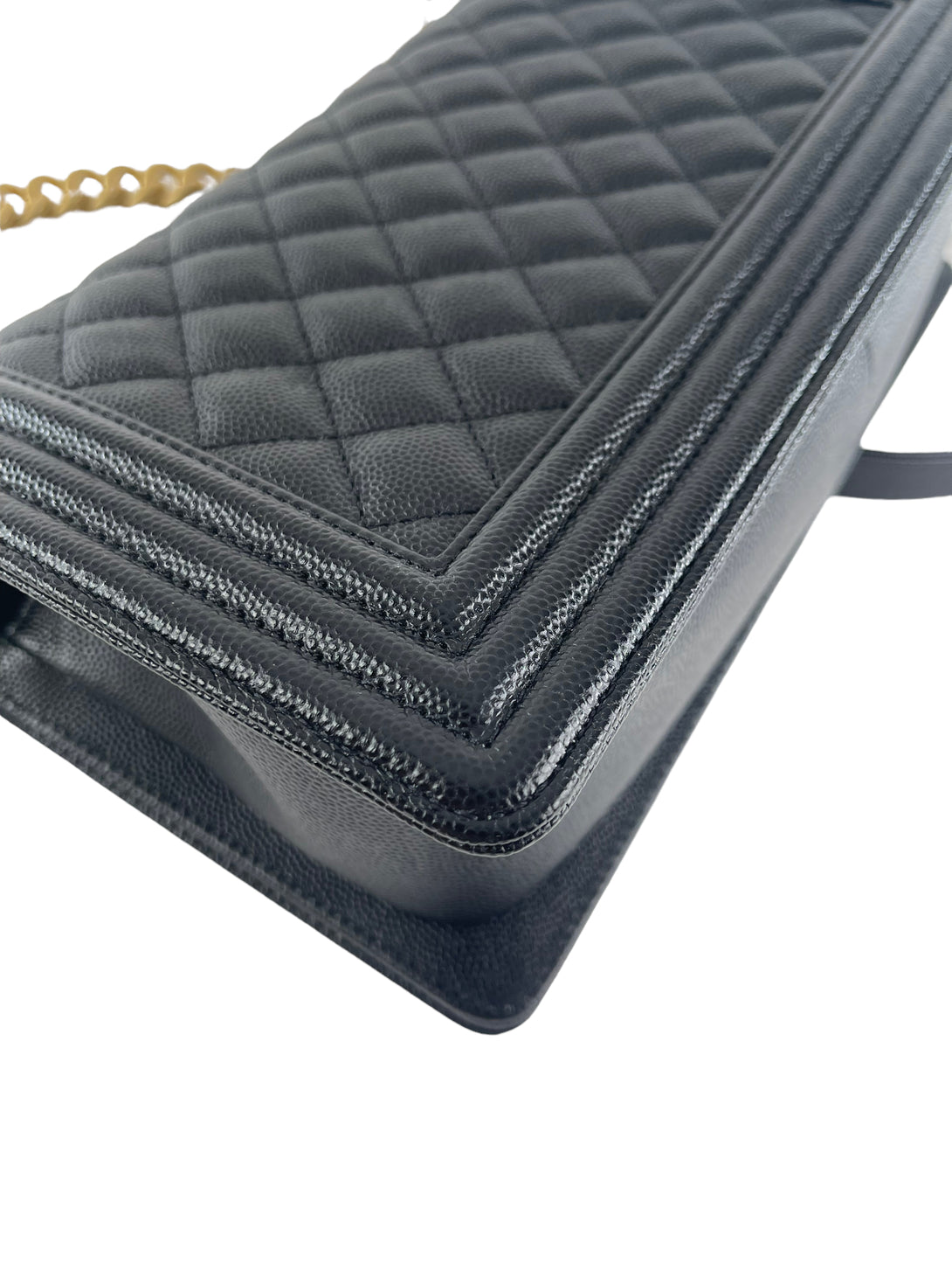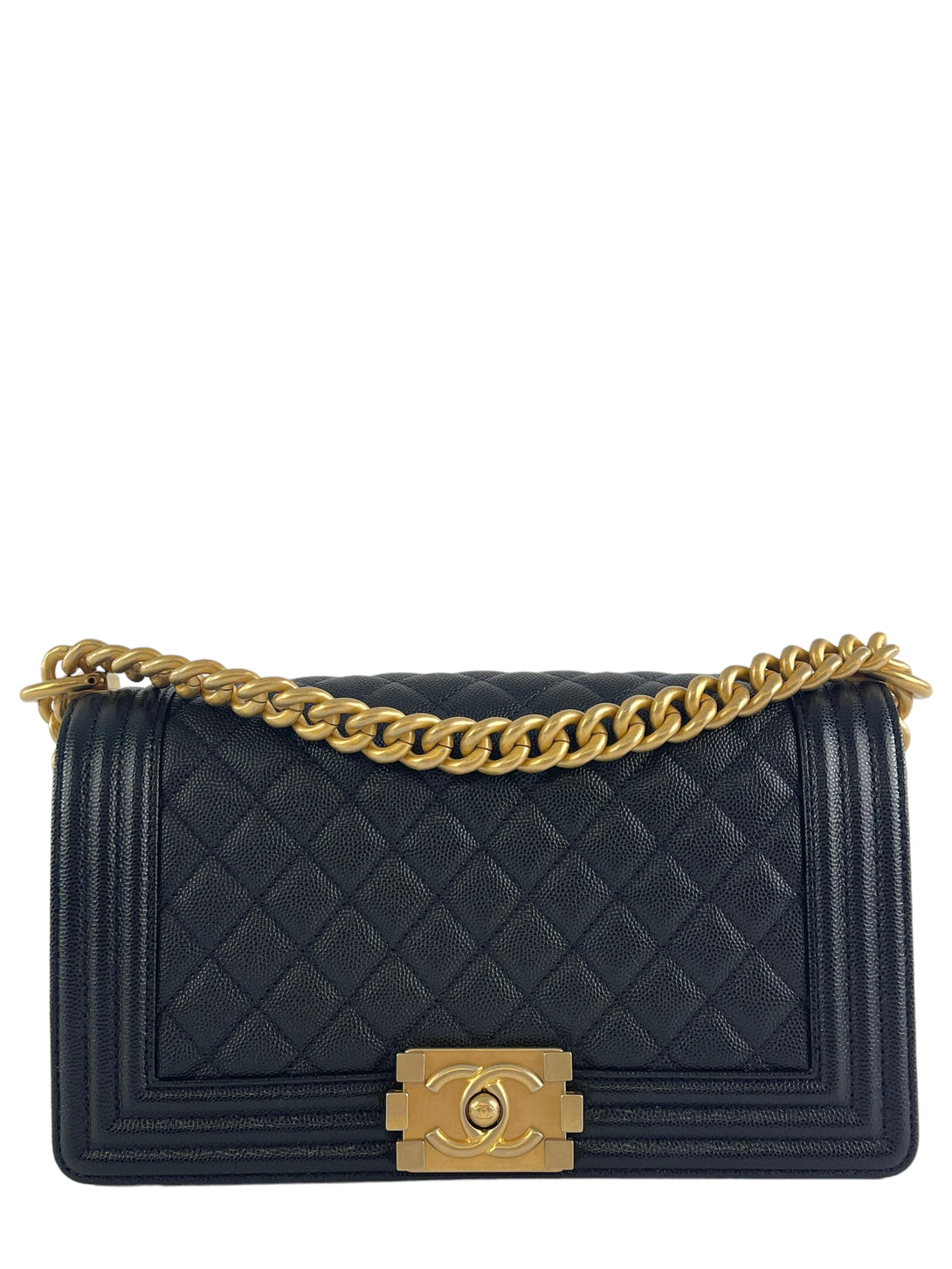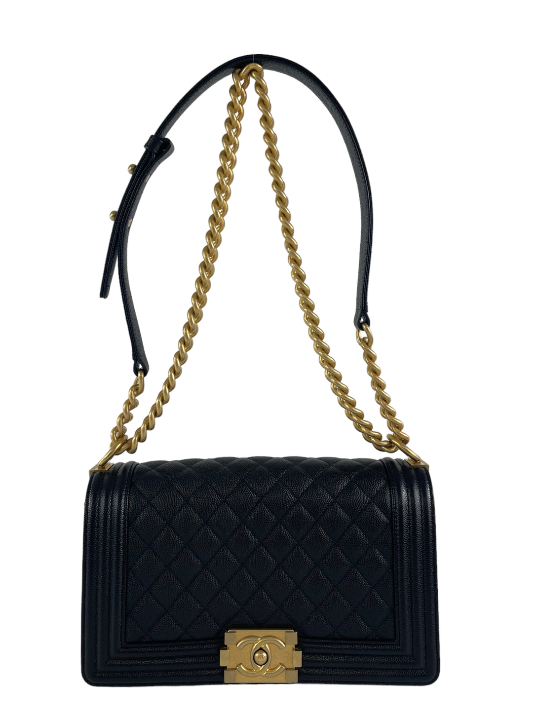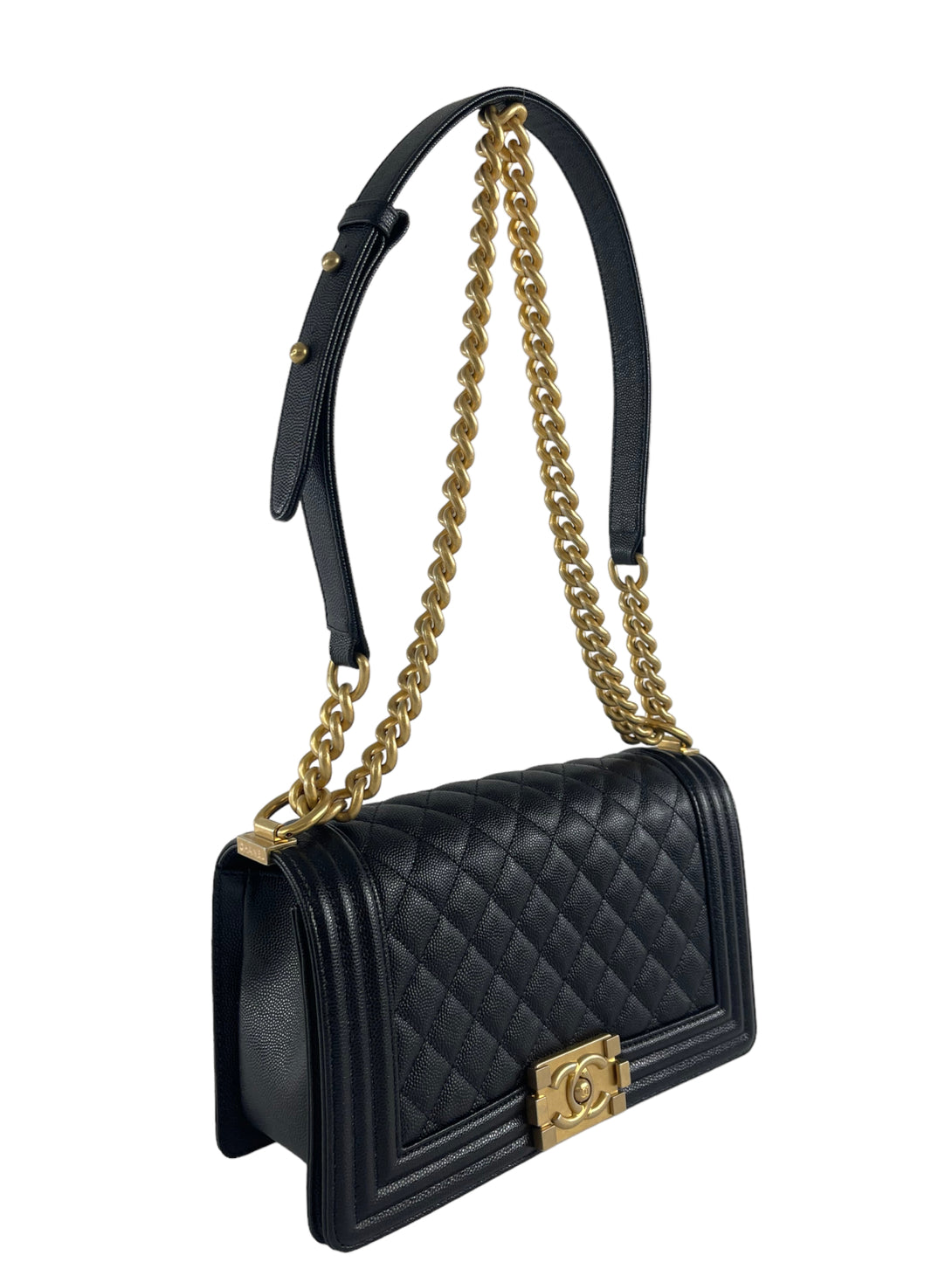 Chanel Black Caviar Leather Boy Bag W/ Goldtone Hardware