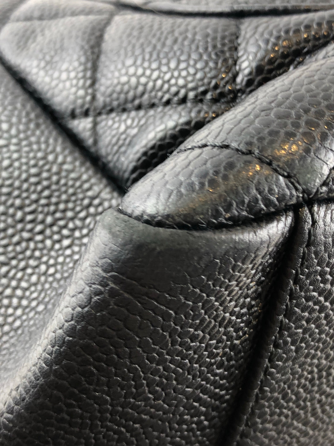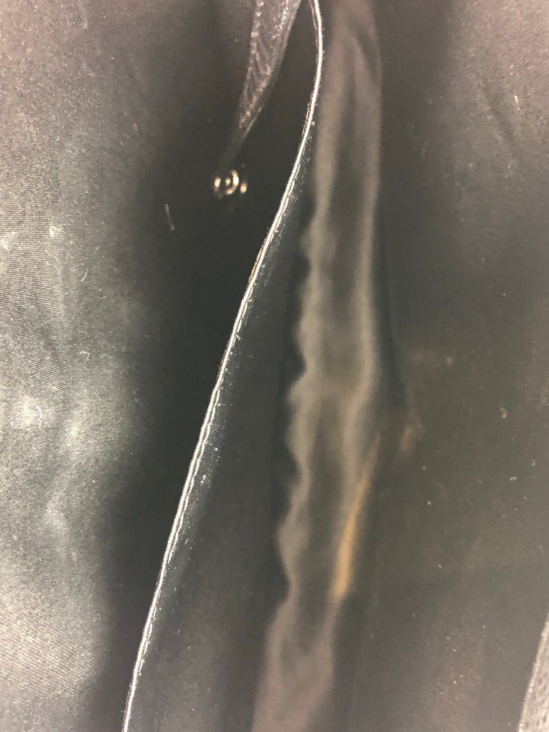 Good: Items show more prominent wear such as noticeable discoloration, stains and snags to fabric. May have worn corners and handles, tarnishing to hardware and creasing to leather. Pen or make up marks may be visible in the interior of the bag.