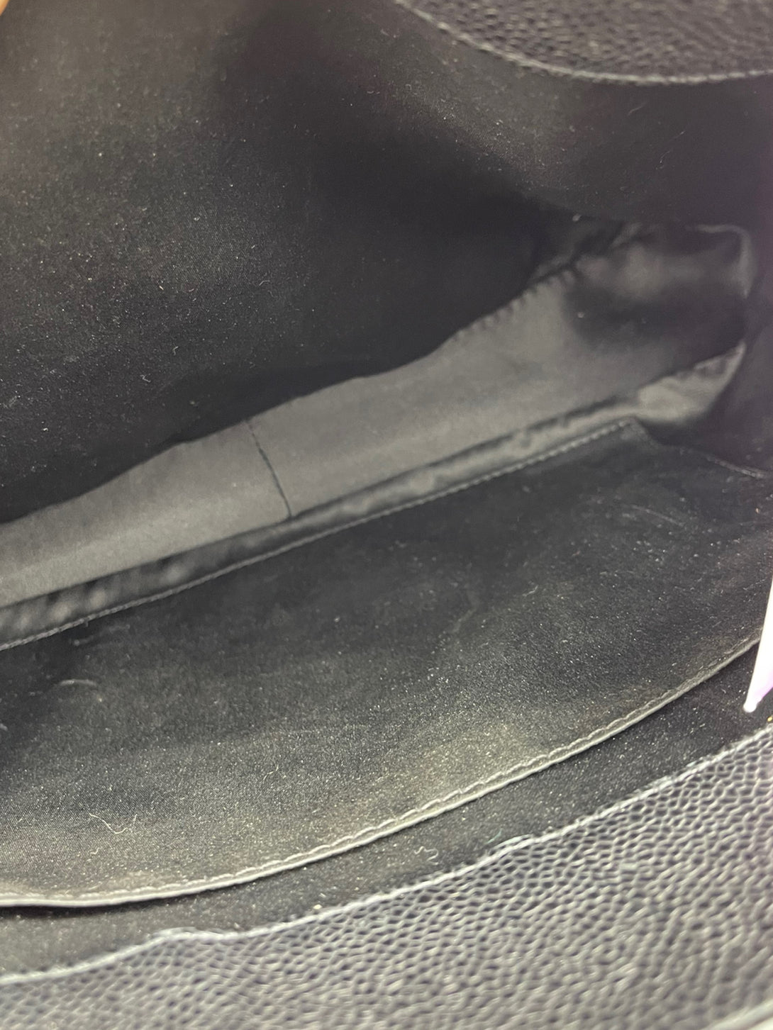 Good: Items show more prominent wear such as noticeable discoloration, stains and snags to fabric. May have worn corners and handles, tarnishing to hardware and creasing to leather. Pen or make up marks may be visible in the interior of the bag.