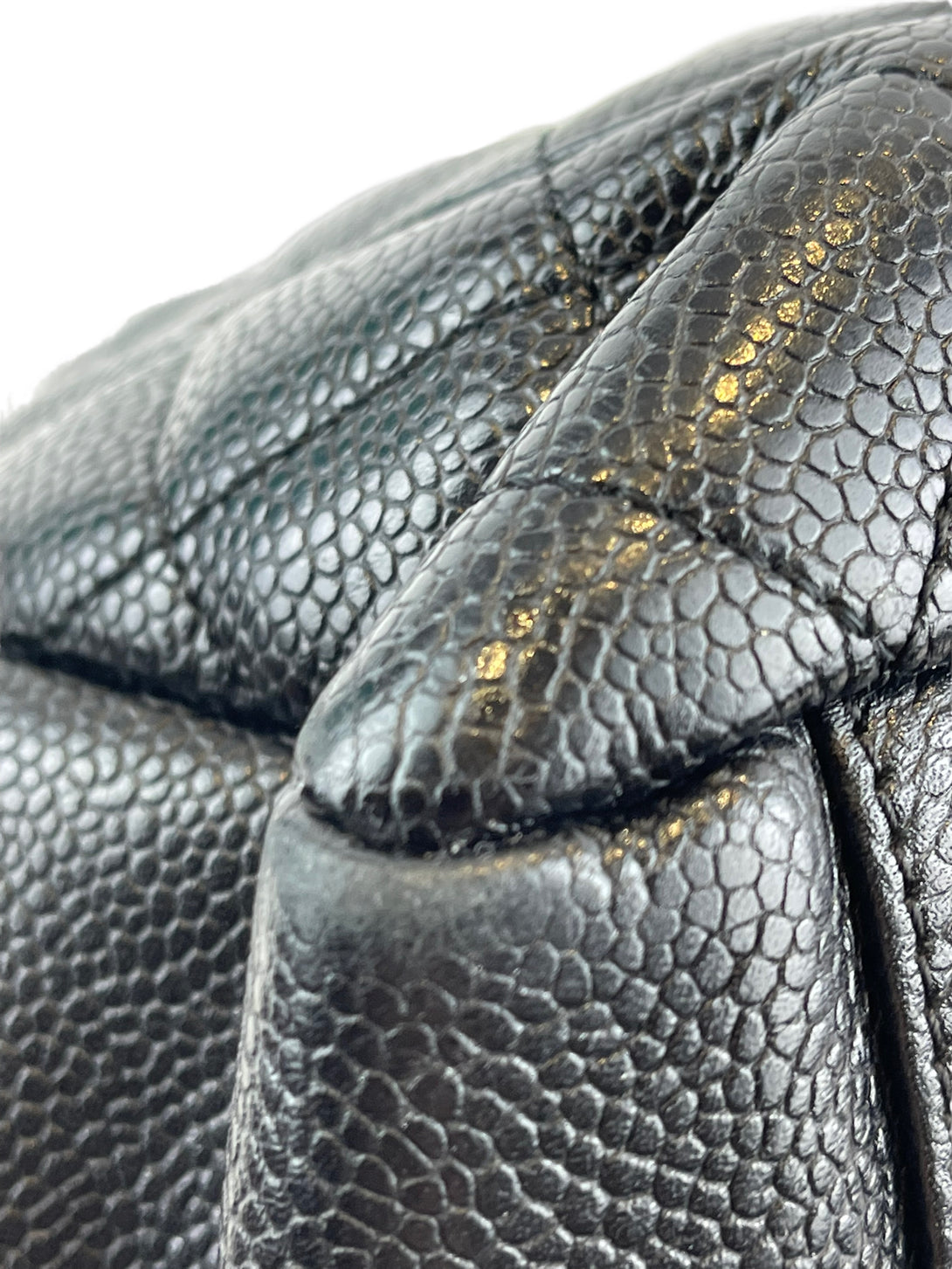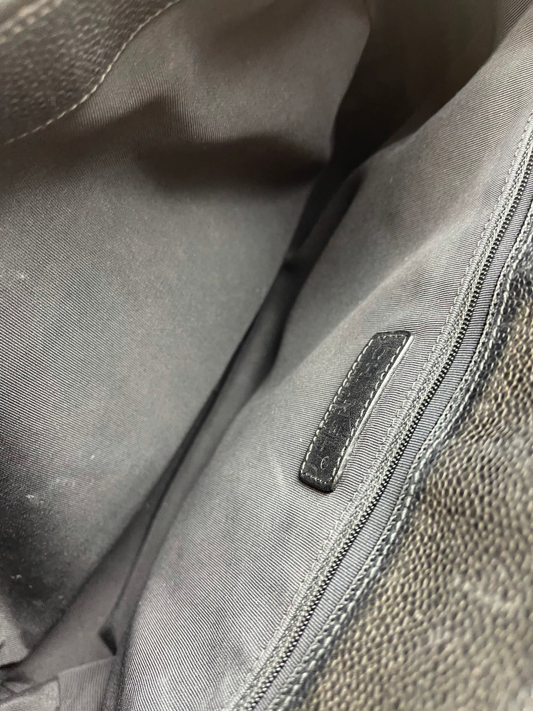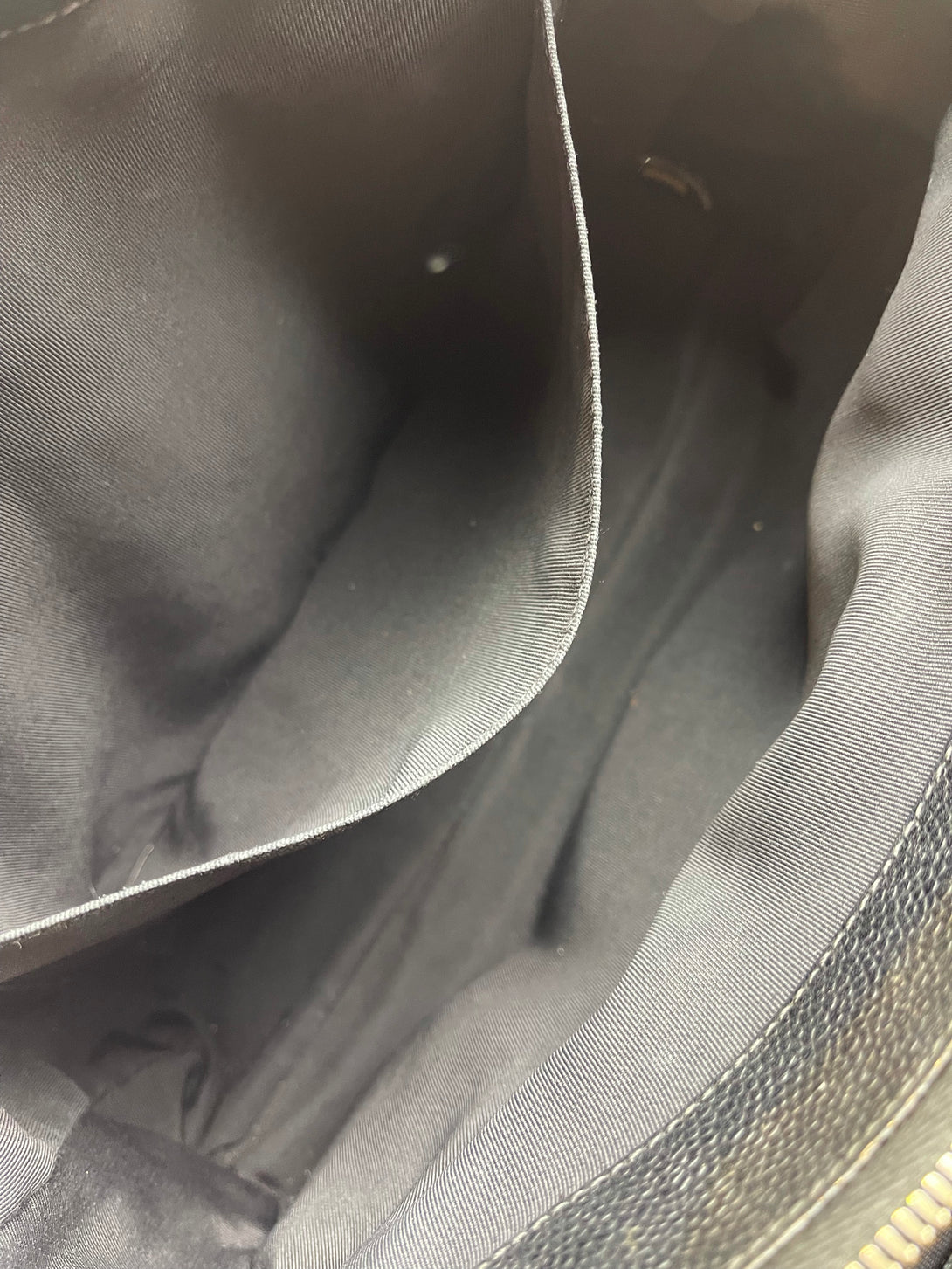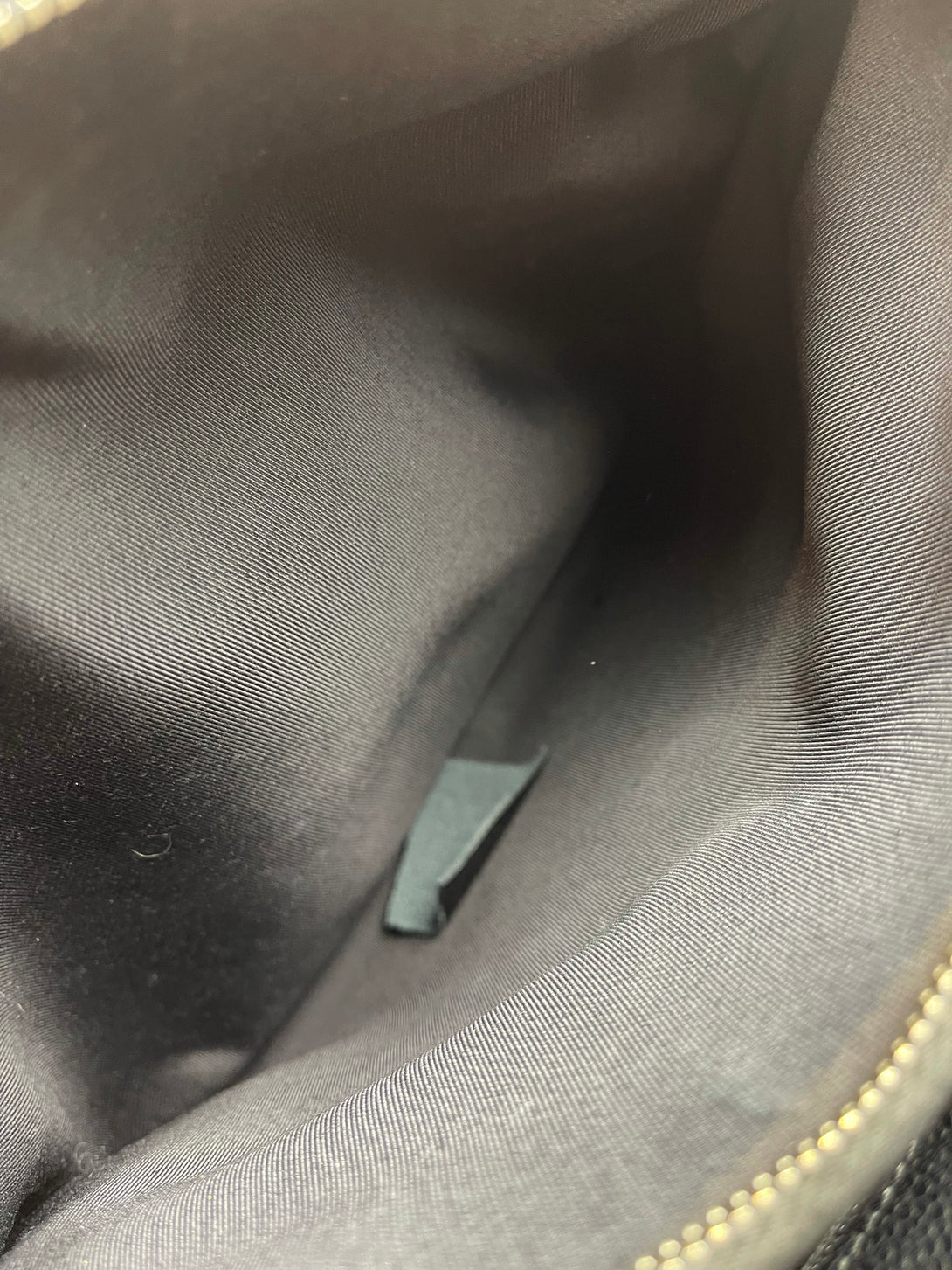 Good: Items show more prominent wear such as noticeable discoloration, stains and snags to fabric. May have worn corners and handles, tarnishing to hardware and creasing to leather. Pen or make up marks may be visible in the interior of the bag.