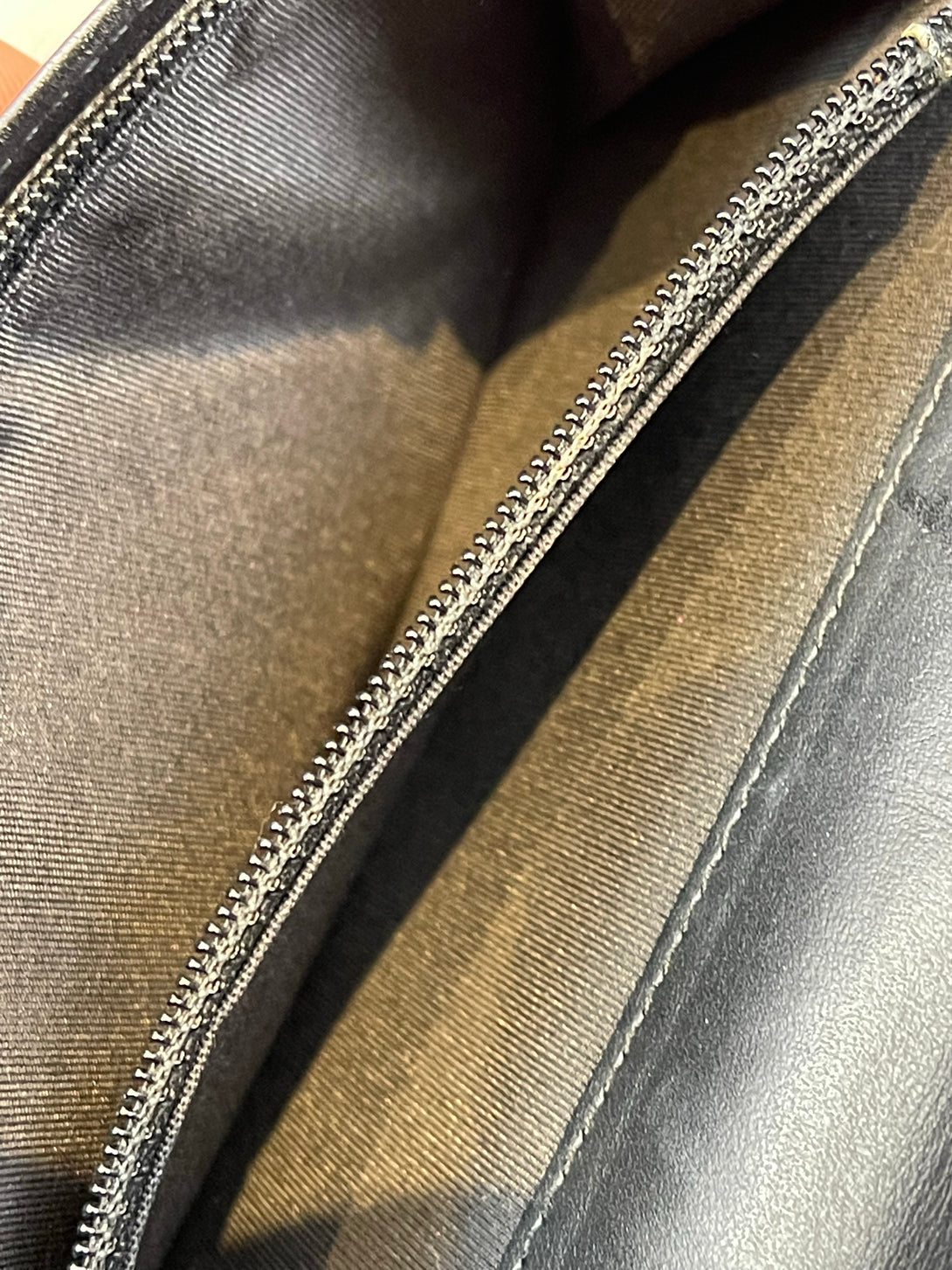 Fair: Very prominent wear, may have holes on corners, severe scuffs, piping of bag showing and pen marks to exterior. Interior may have pen or make up marks.