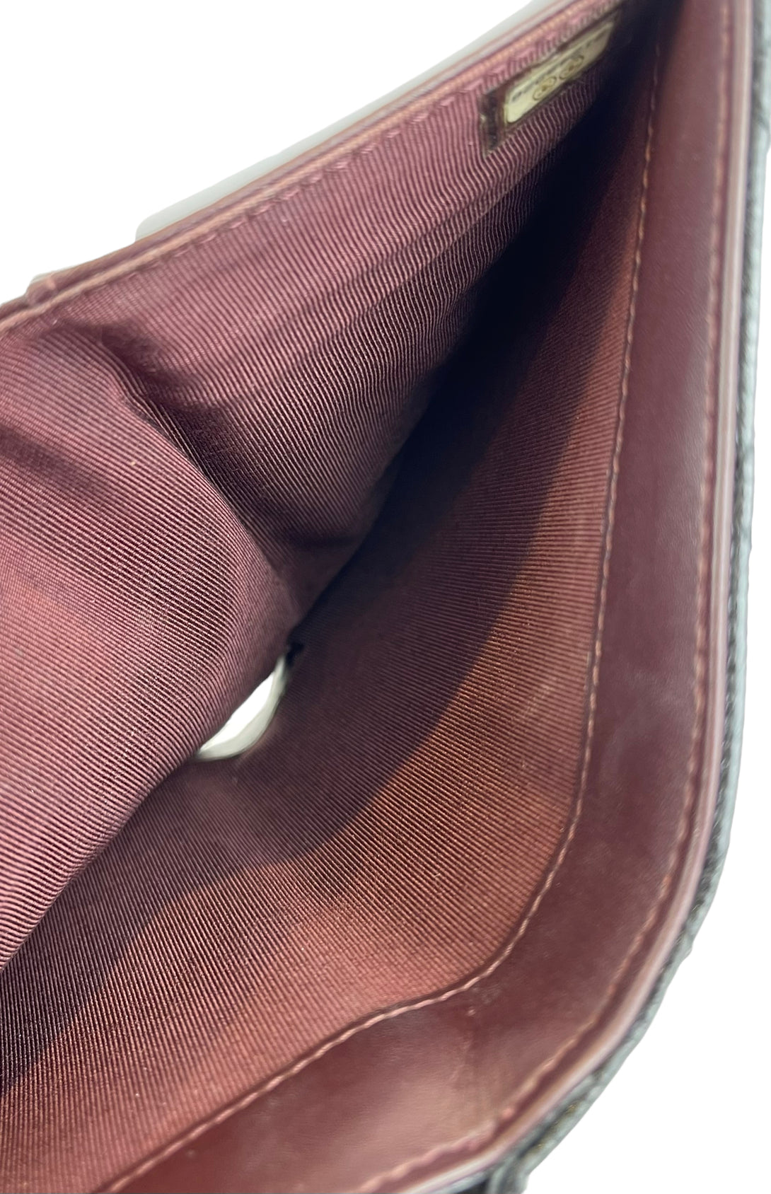 Good: Items show more prominent wear such as noticeable discoloration, stains and snags to fabric. May have worn corners and handles, tarnishing to hardware and creasing to leather. Pen or make up marks may be visible in the interior of the bag.