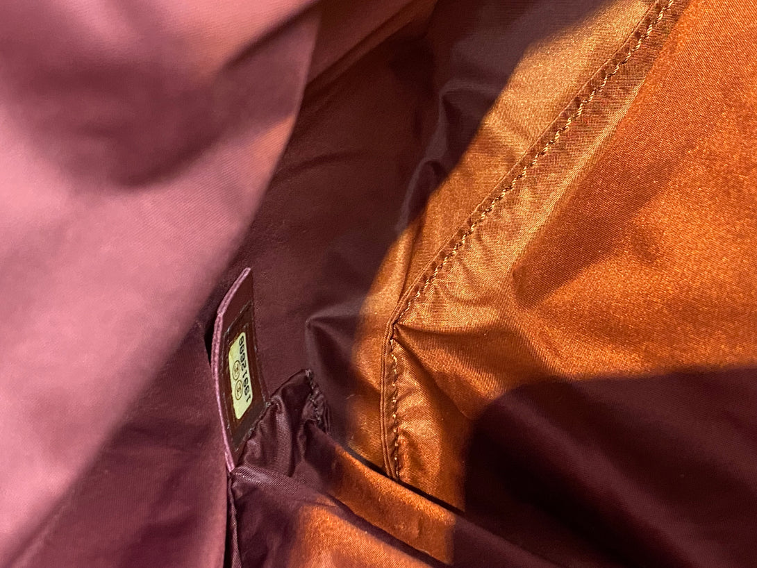 Good: Items show more prominent wear such as noticeable discoloration, stains and snags to fabric. May have worn corners and handles, tarnishing to hardware and creasing to leather. Pen or make up marks may be visible in the interior of the bag.