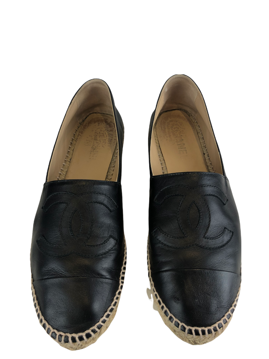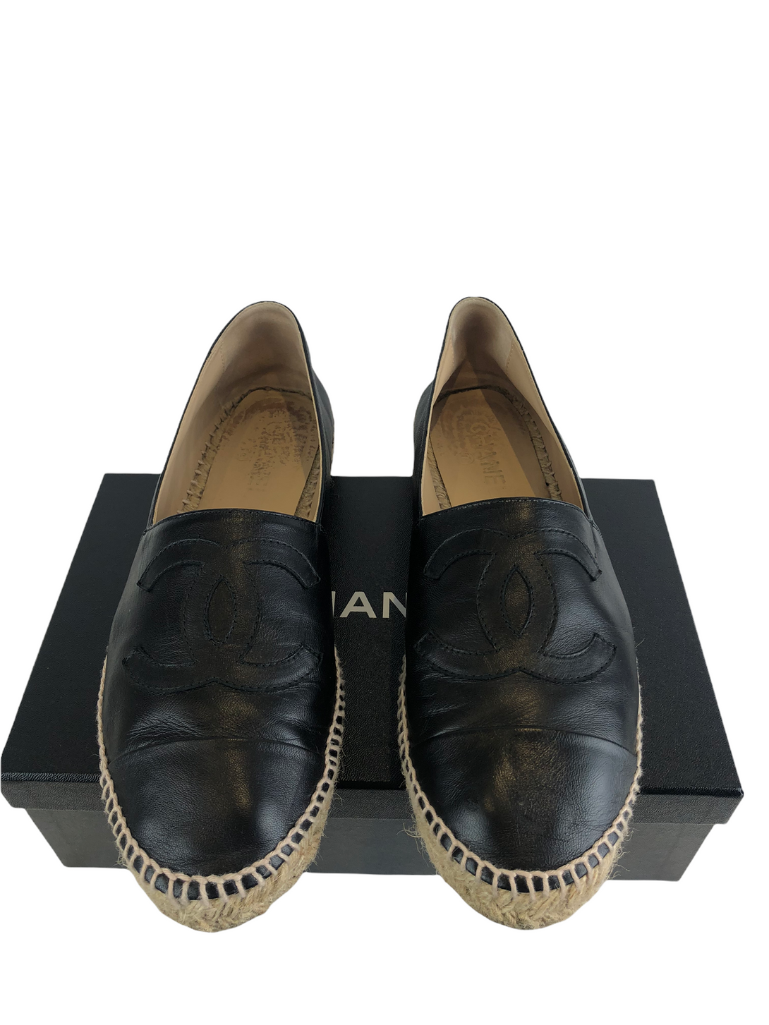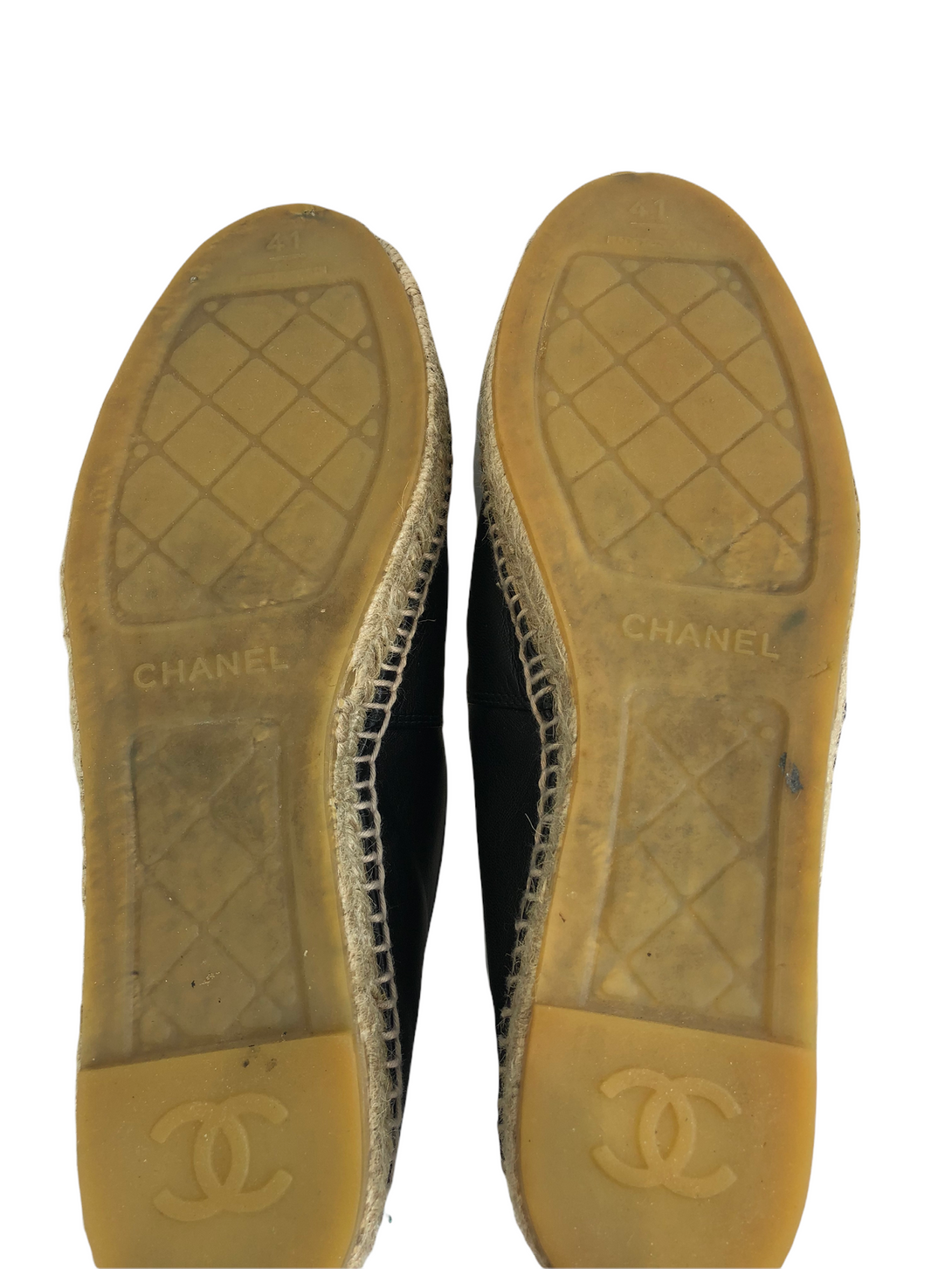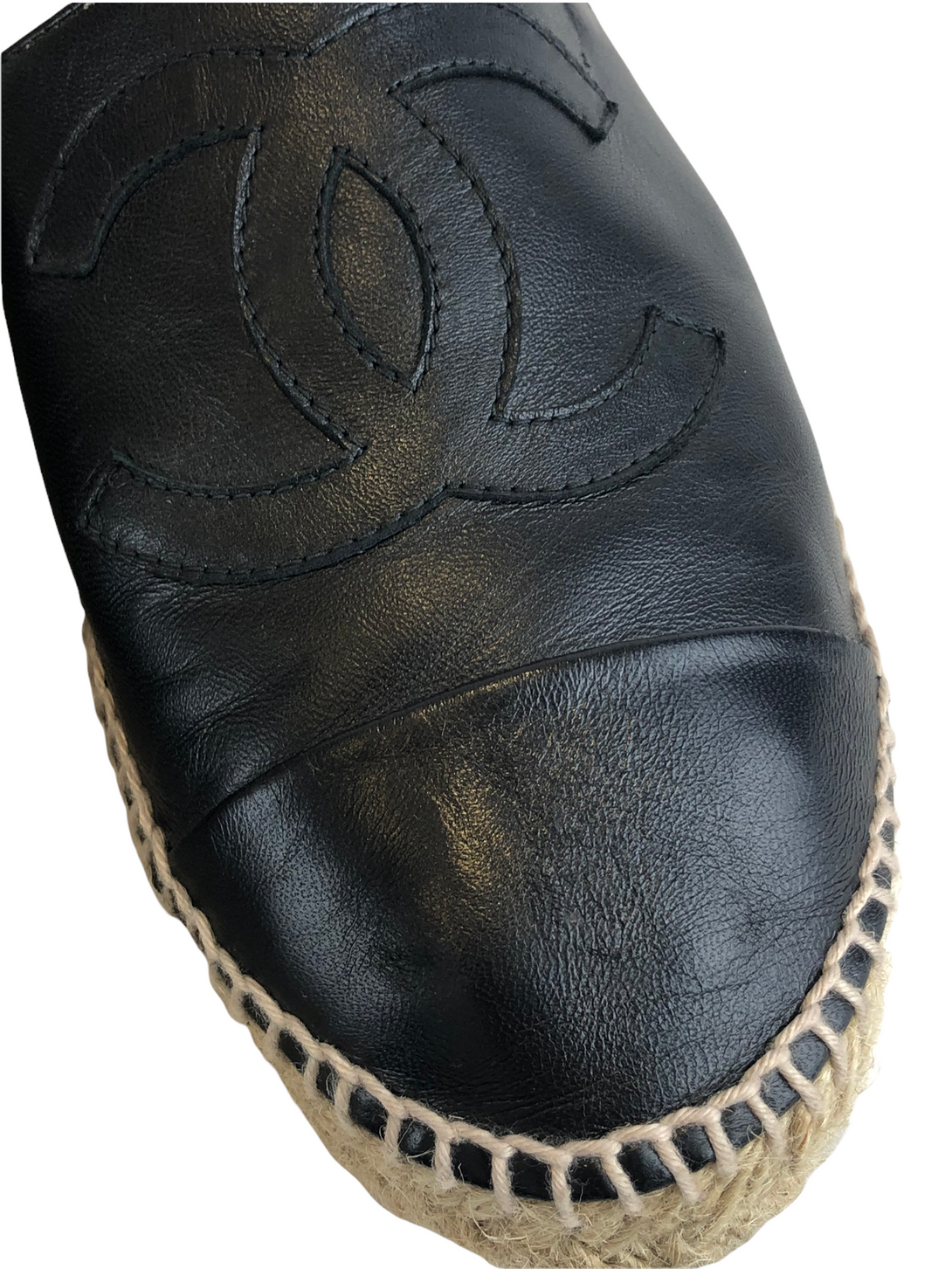 Chanel Black ‘CC’ Lamb Skin Espadrilles - UK 7