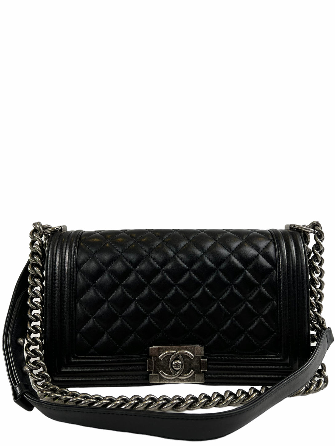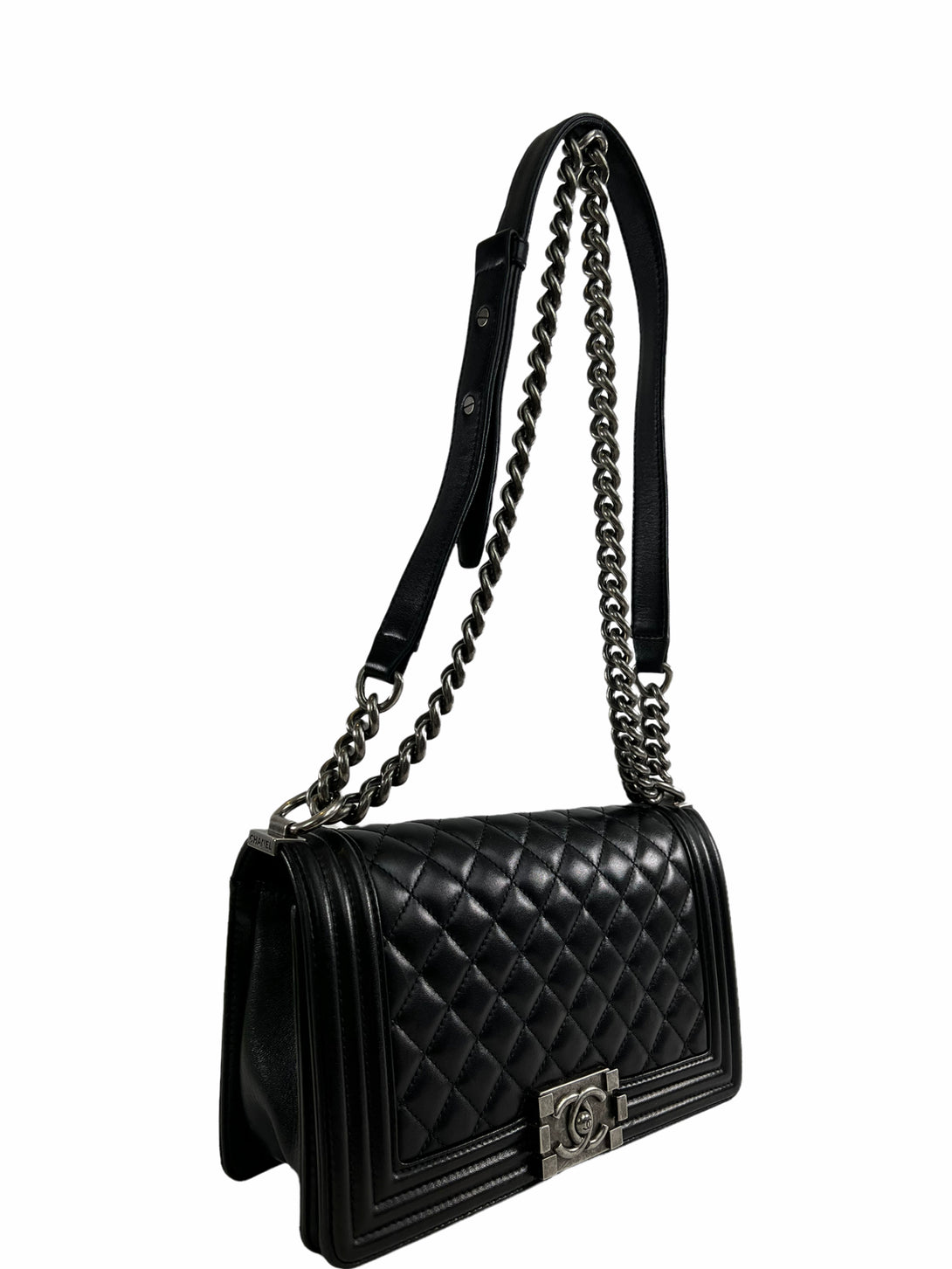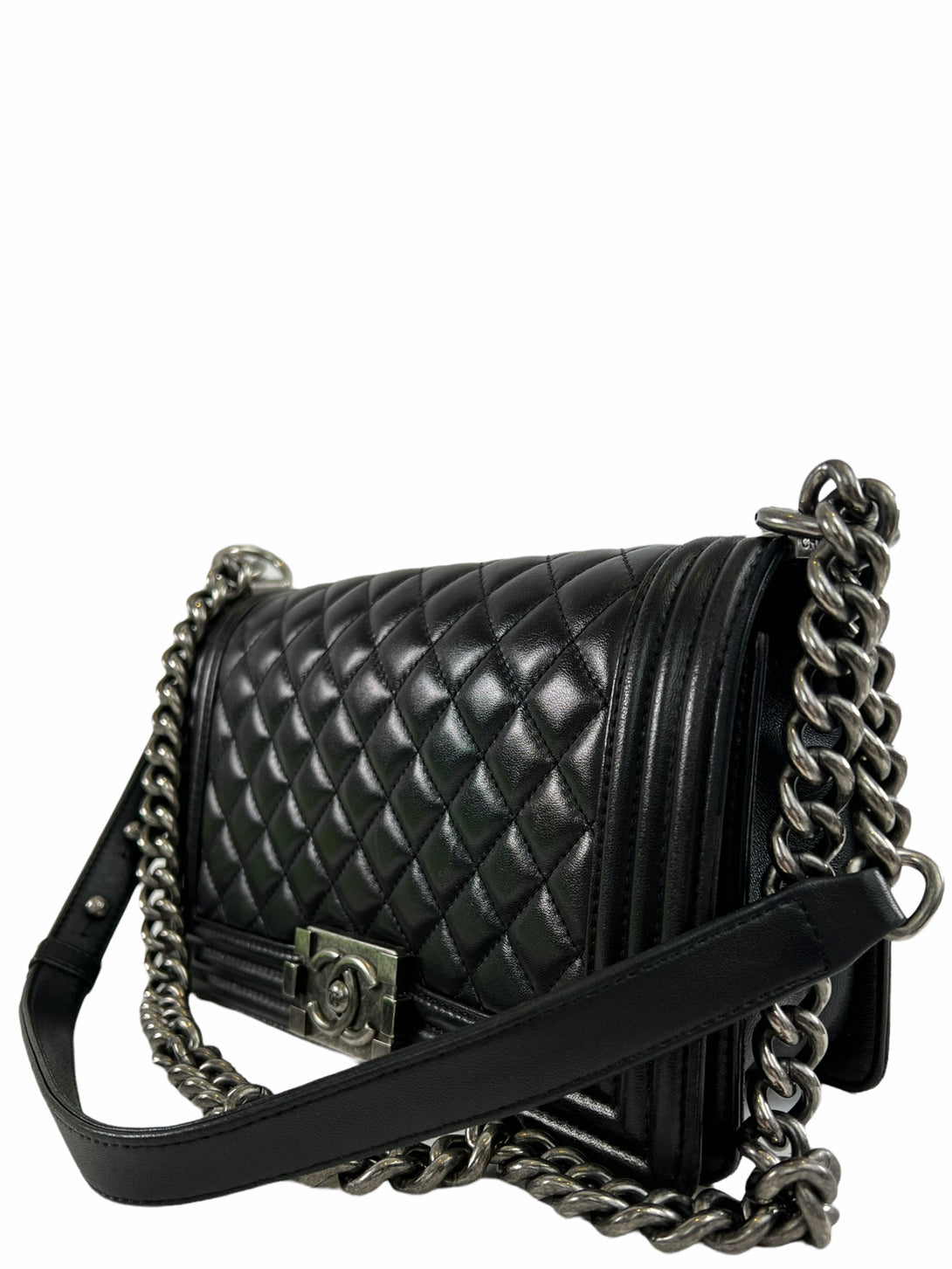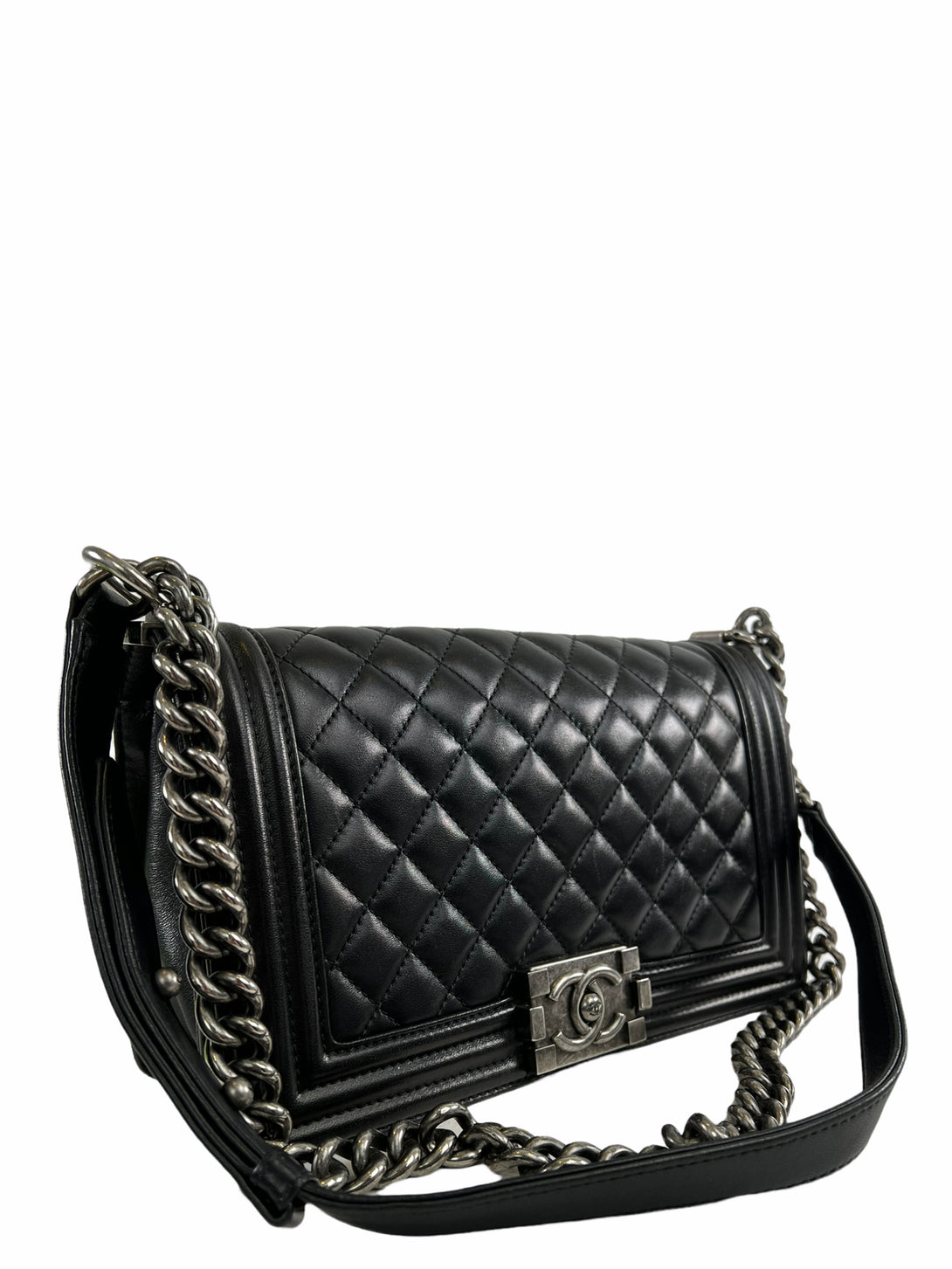 Chanel Medium Black Lambskin Leather `Boy' Bag