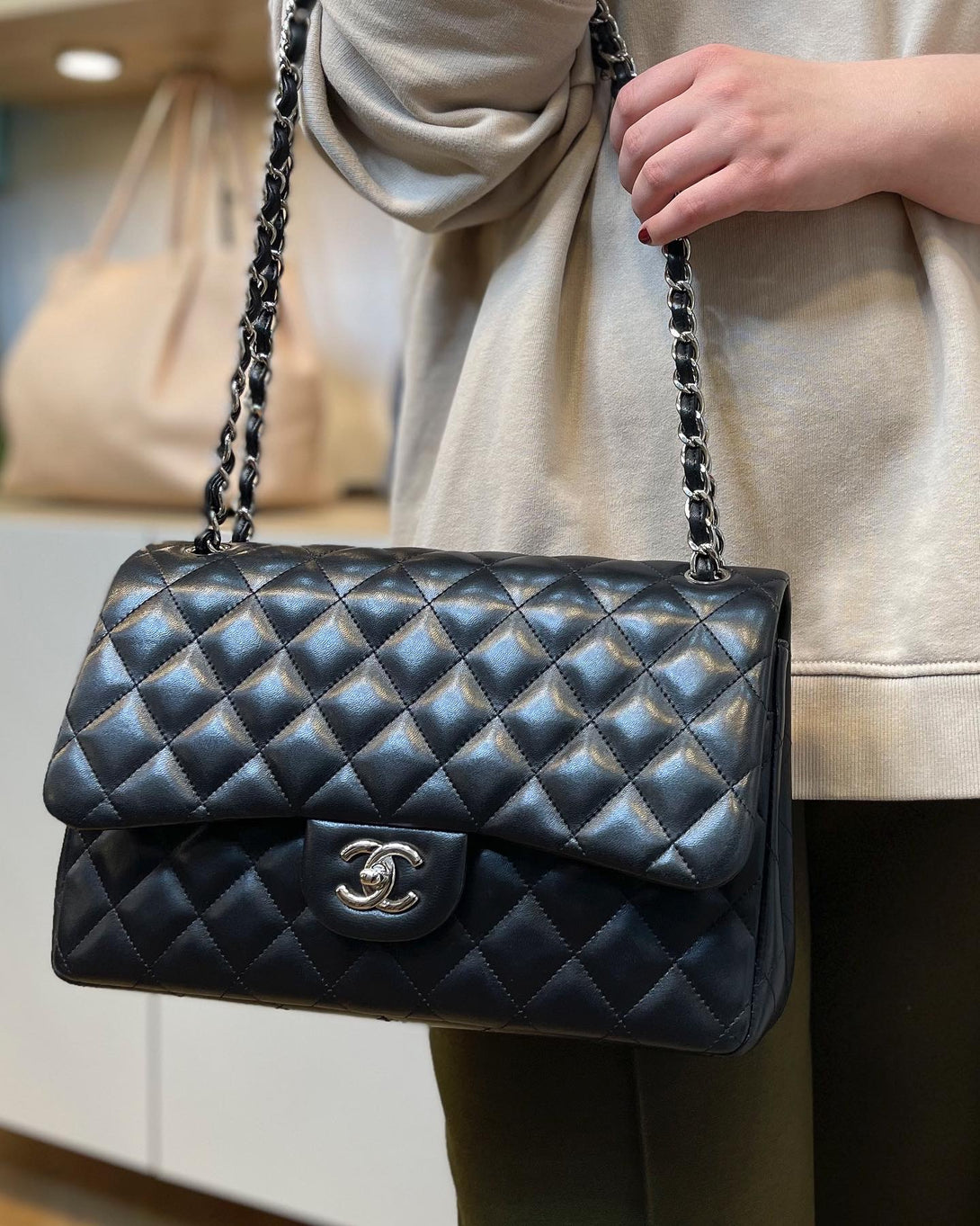 Chanel Black Lambskin Leather ‘Jumbo Double Flap’