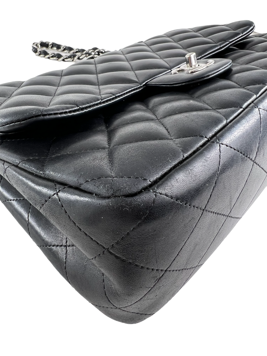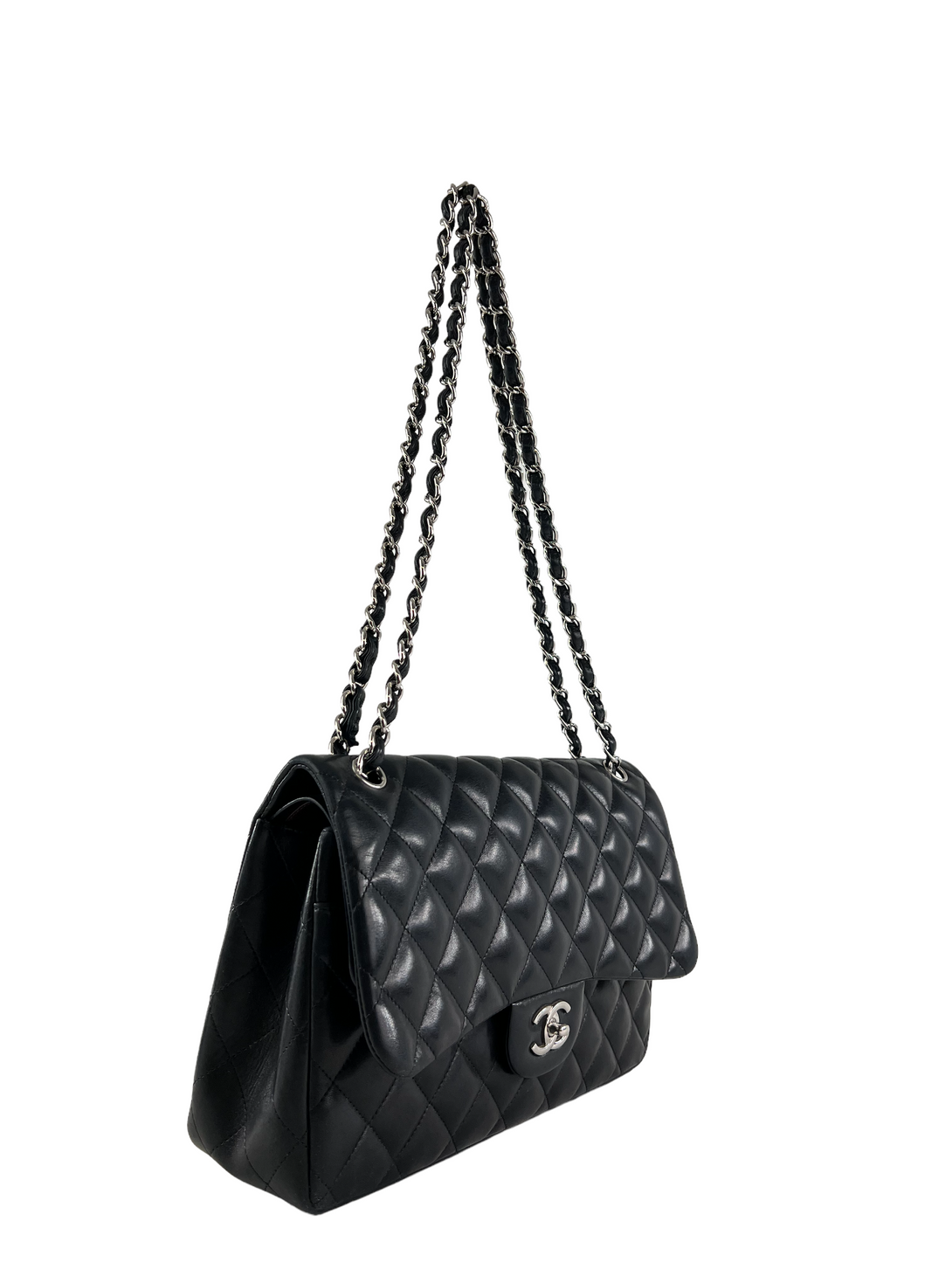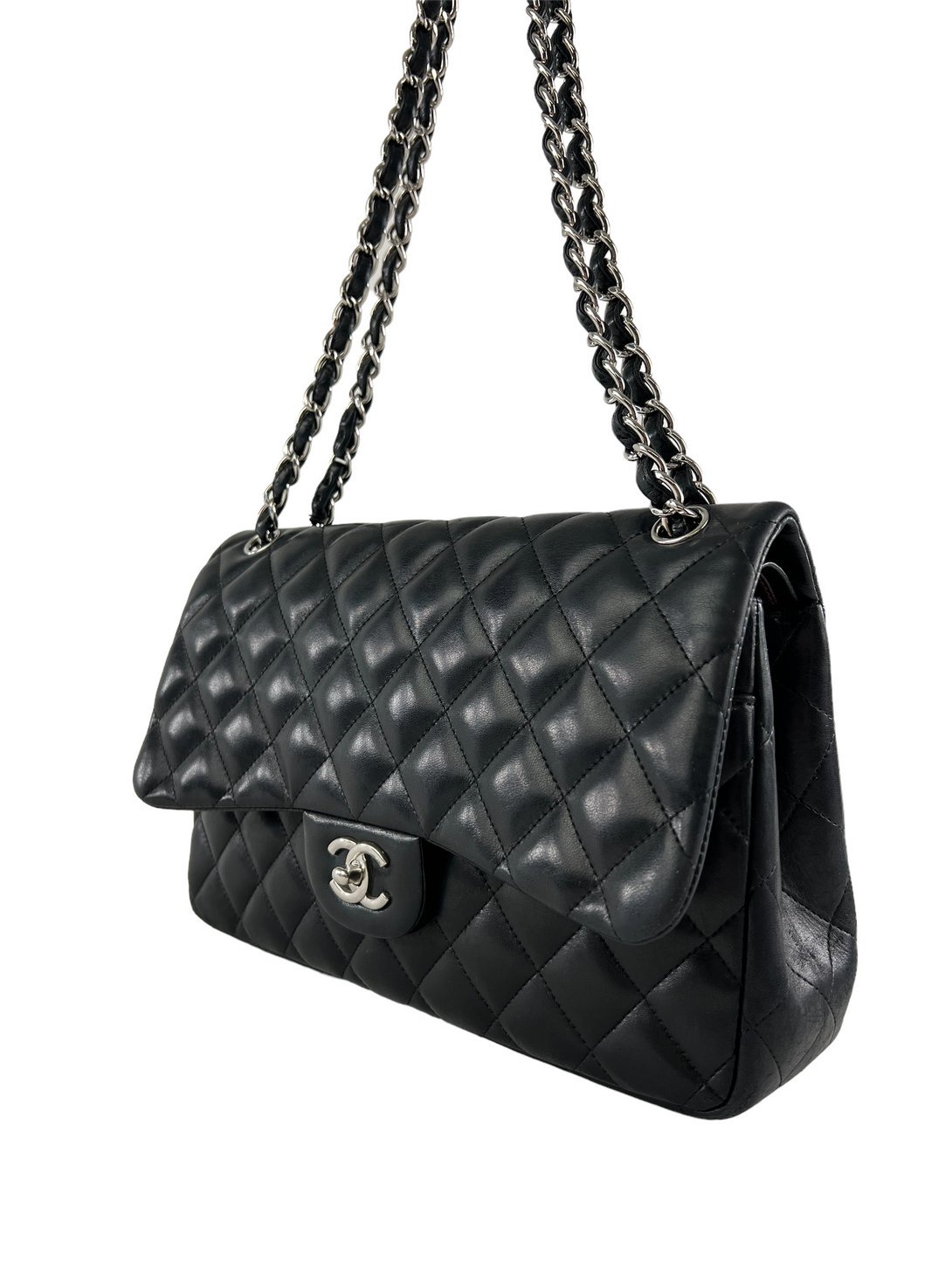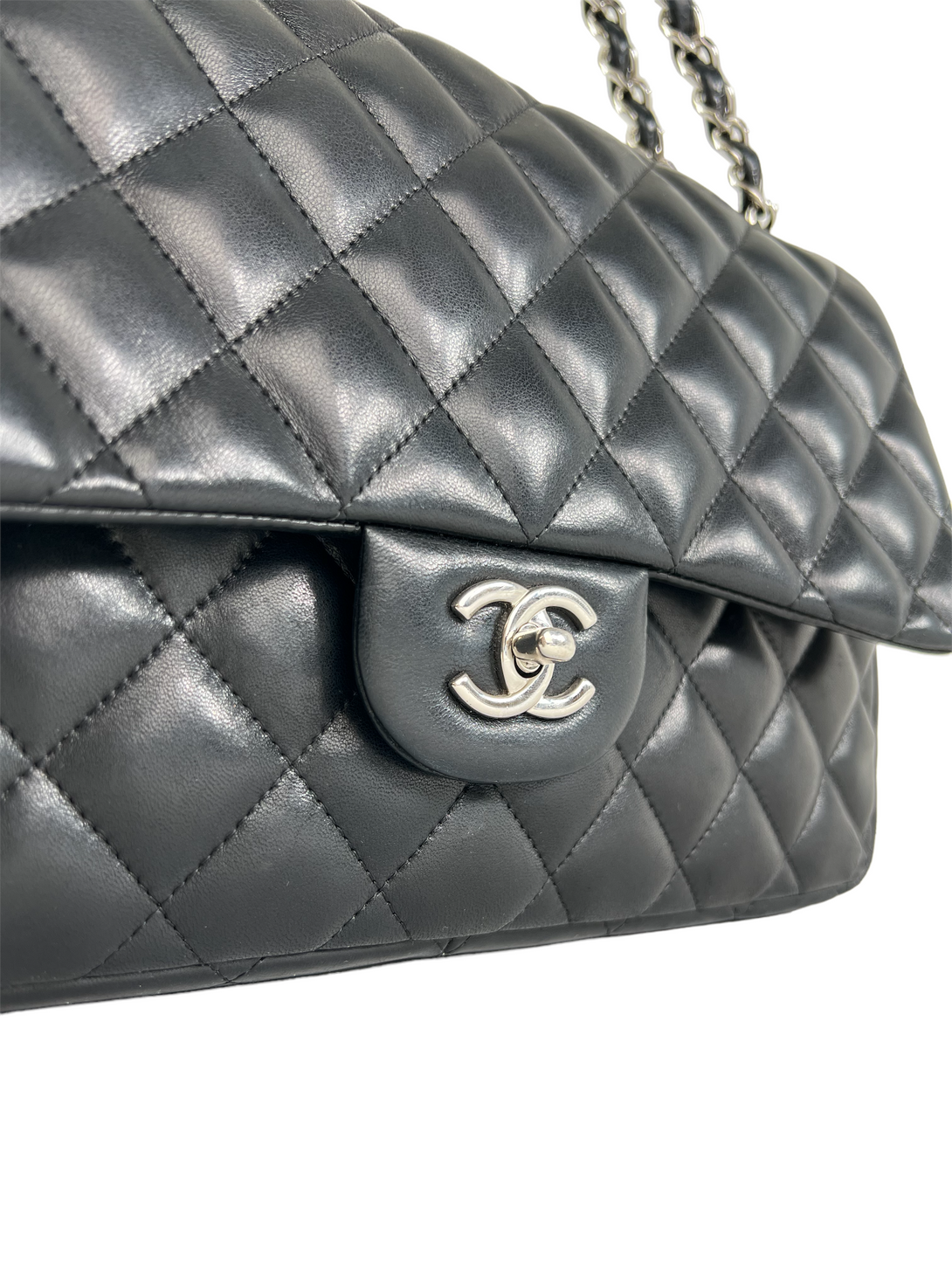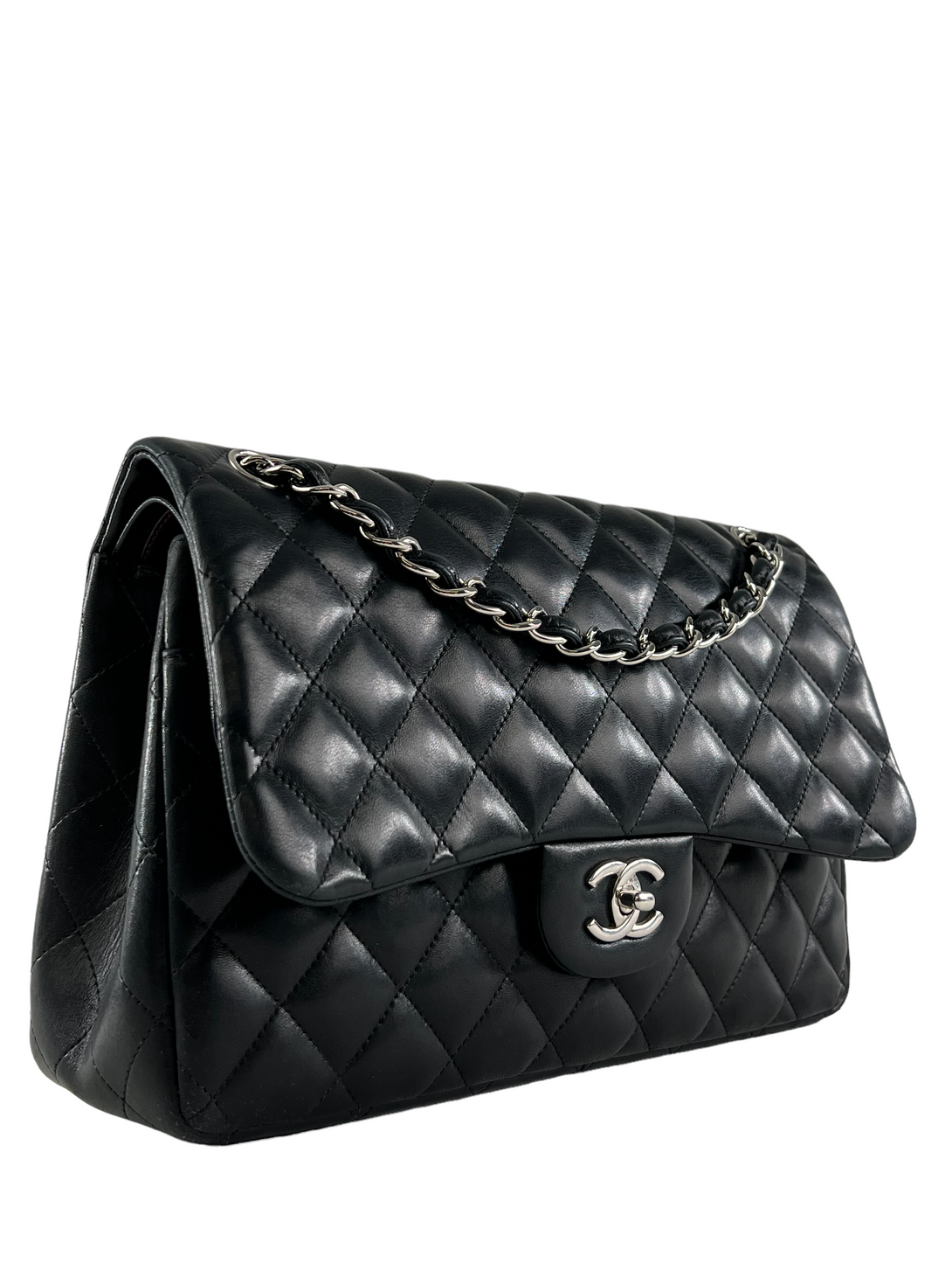 Chanel Black Lambskin Leather Jumbo Double Flap