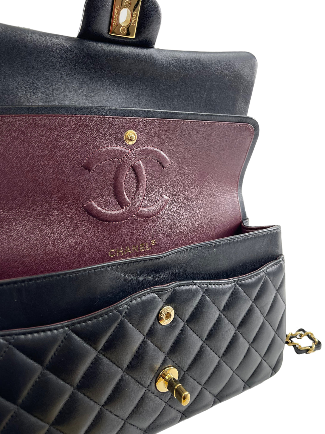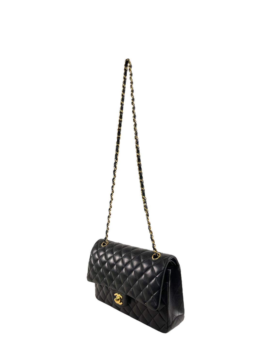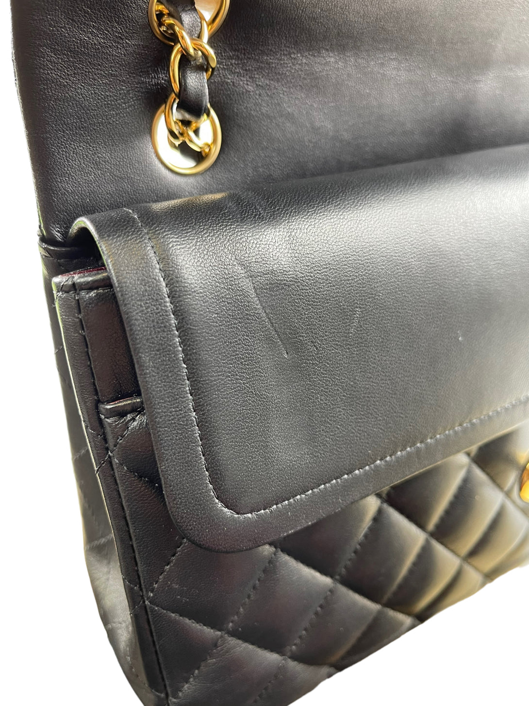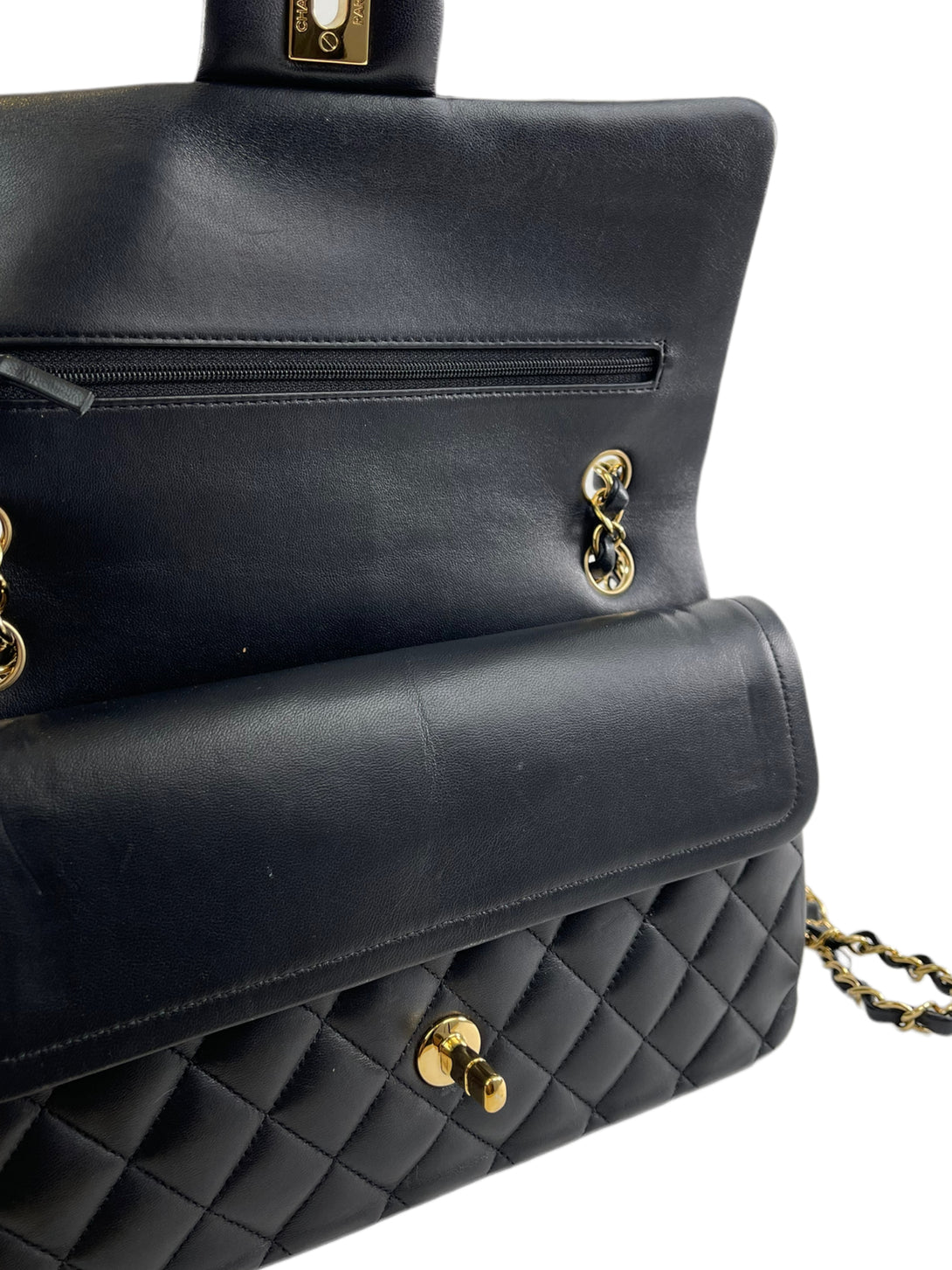 Chanel Black Lambskin Leather Medium Double Flap (Gold Hardware)