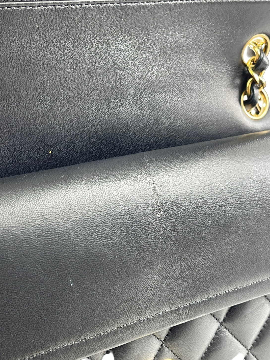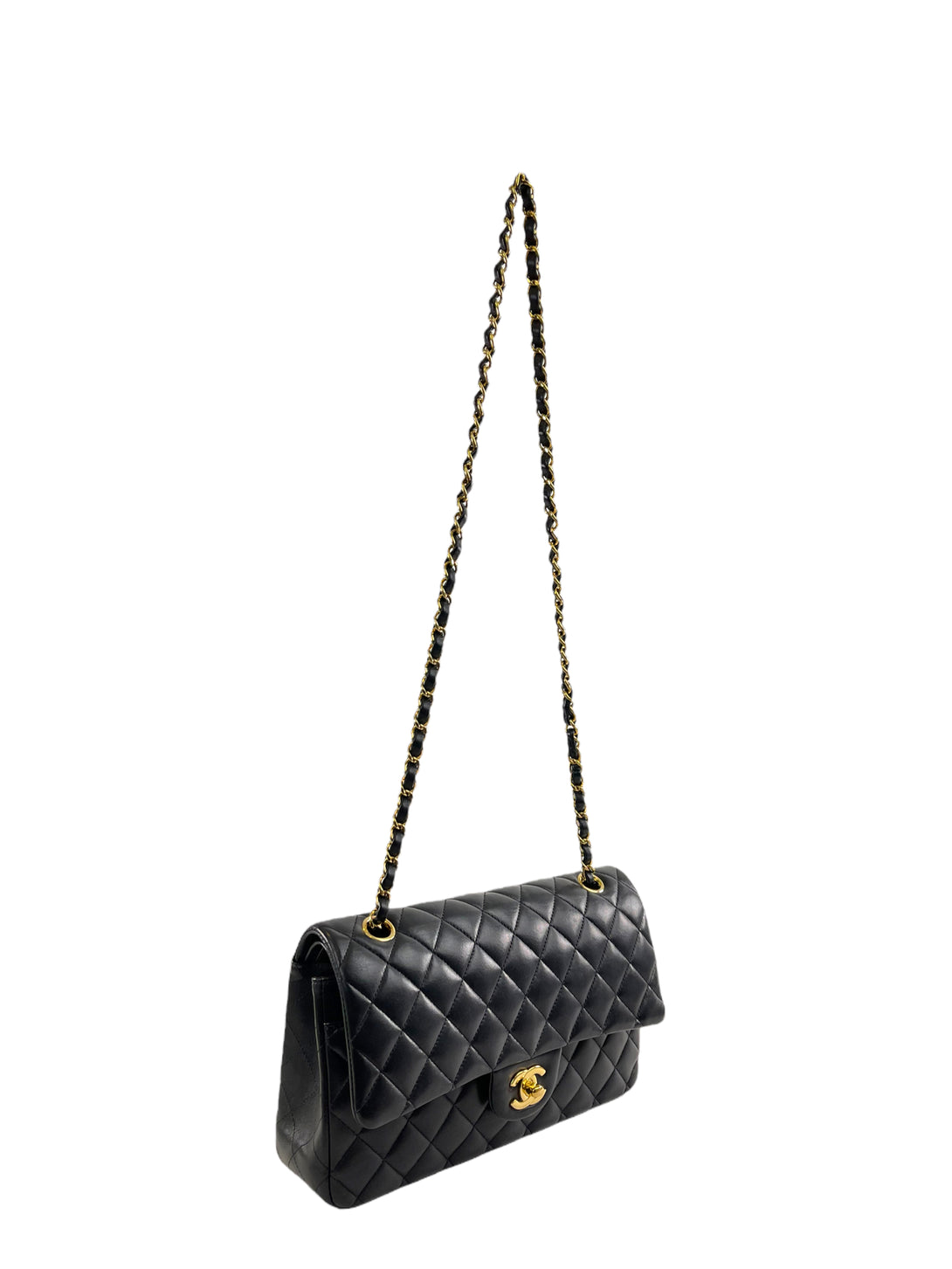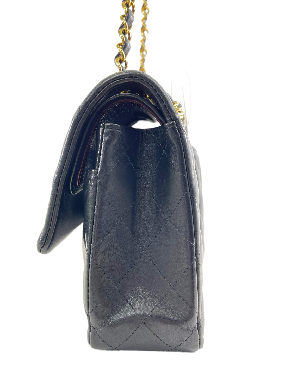 Chanel Black Lambskin Leather Medium Double Flap (Gold Hardware)