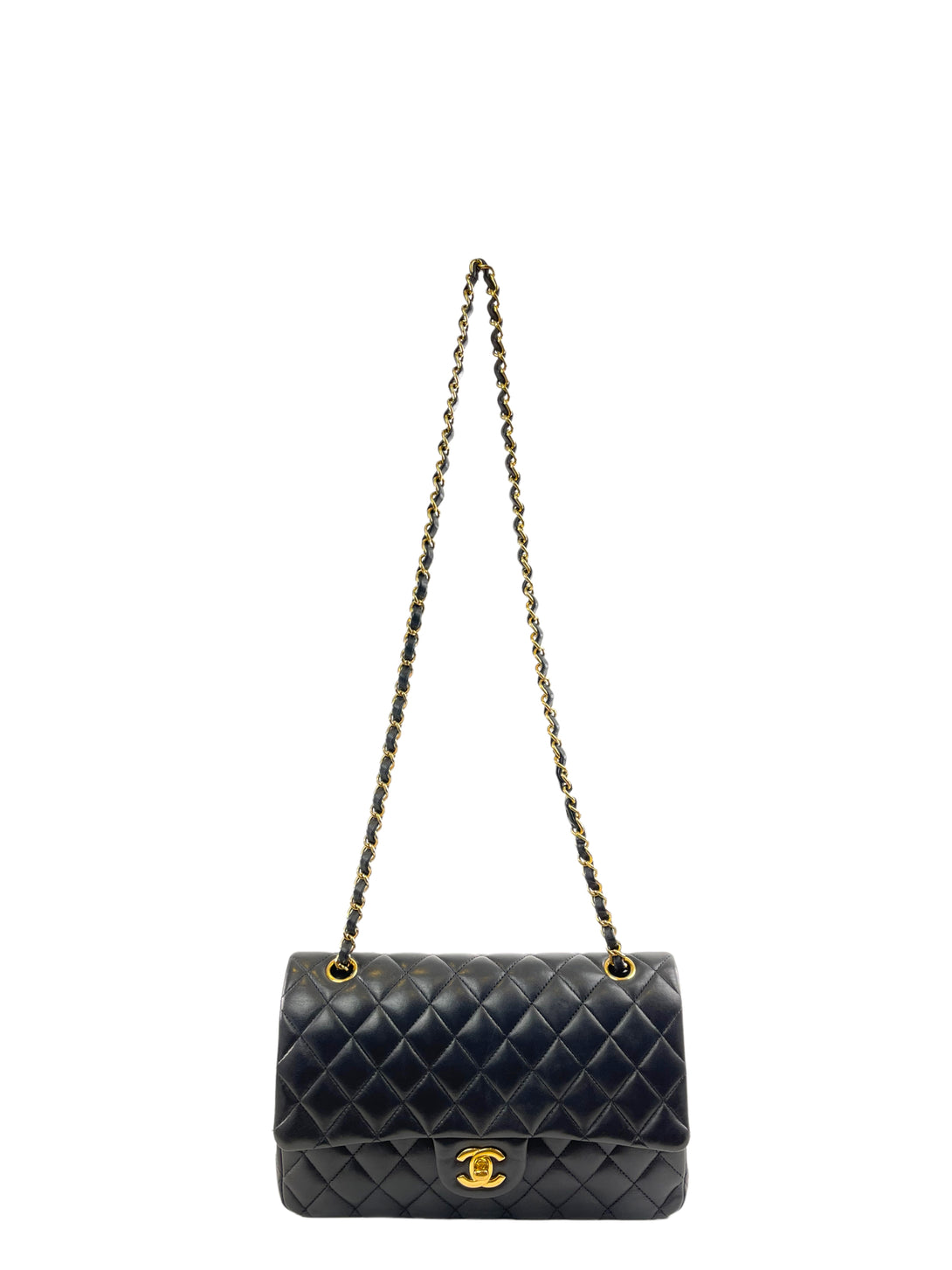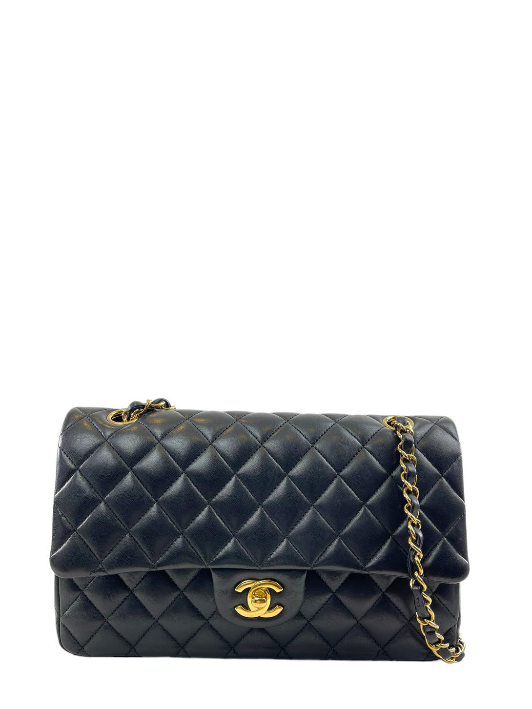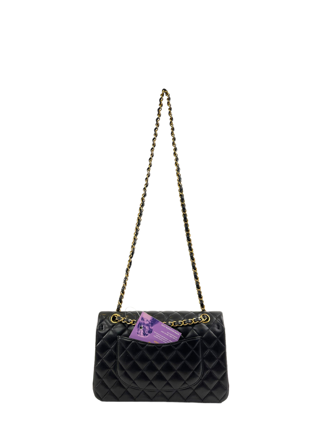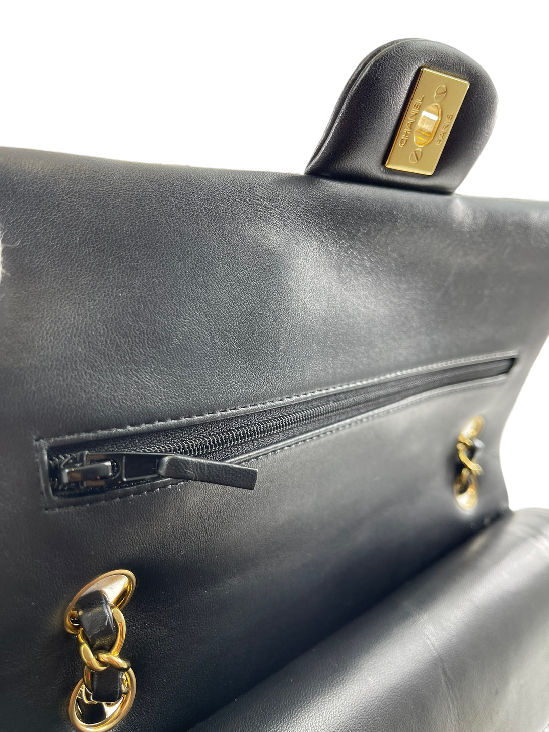 Chanel Black Lambskin Leather Medium Double Flap (Gold Hardware)