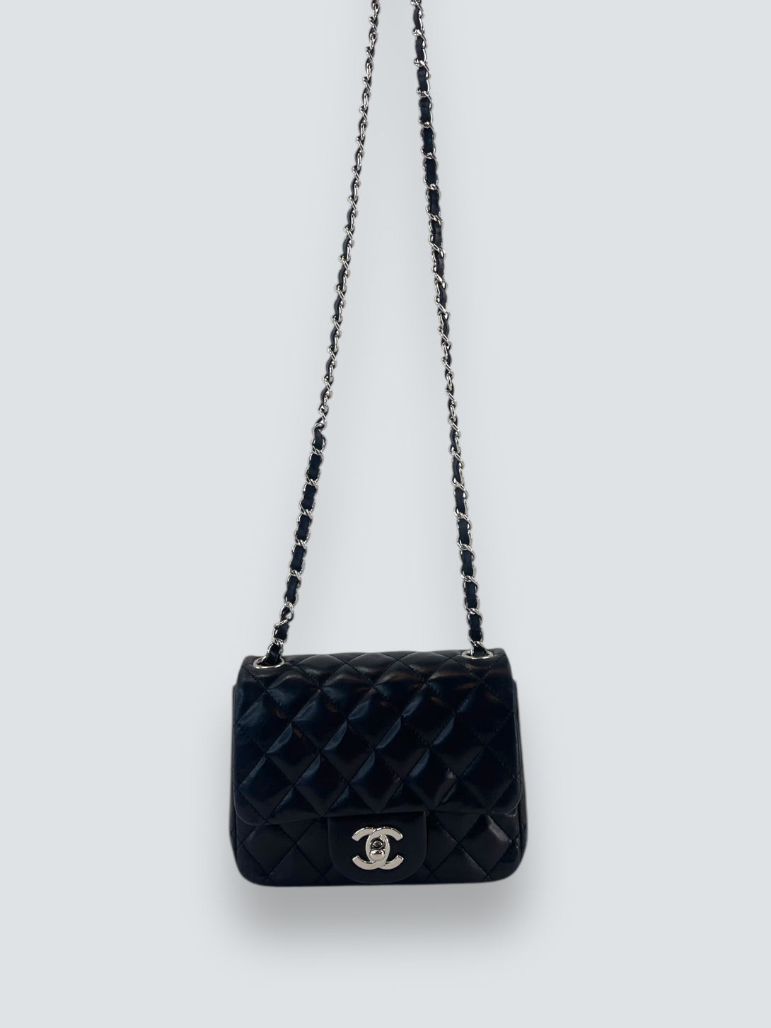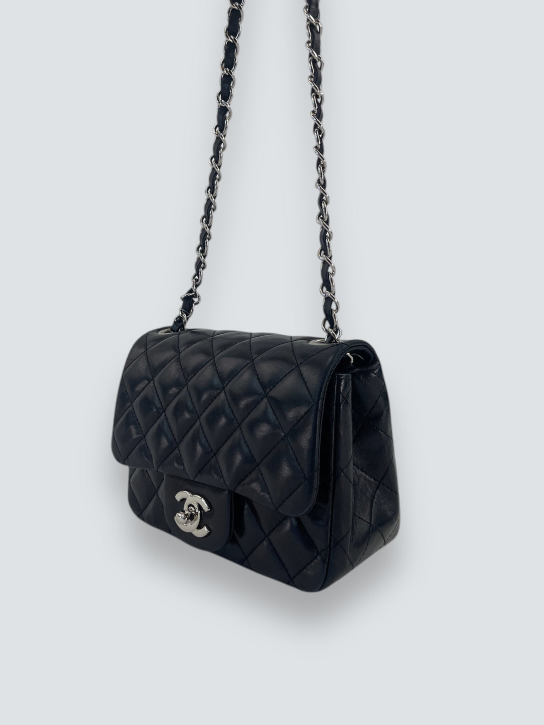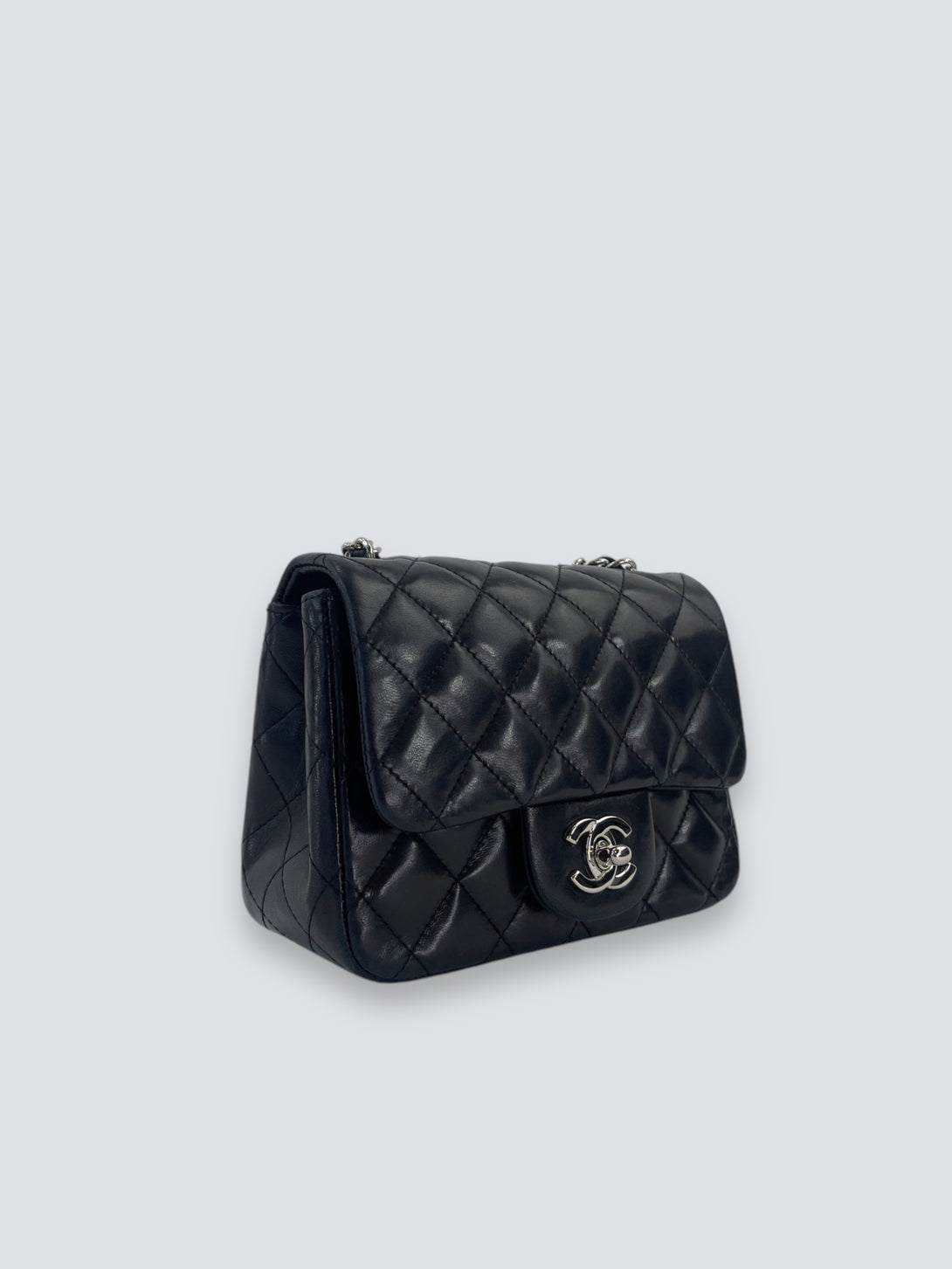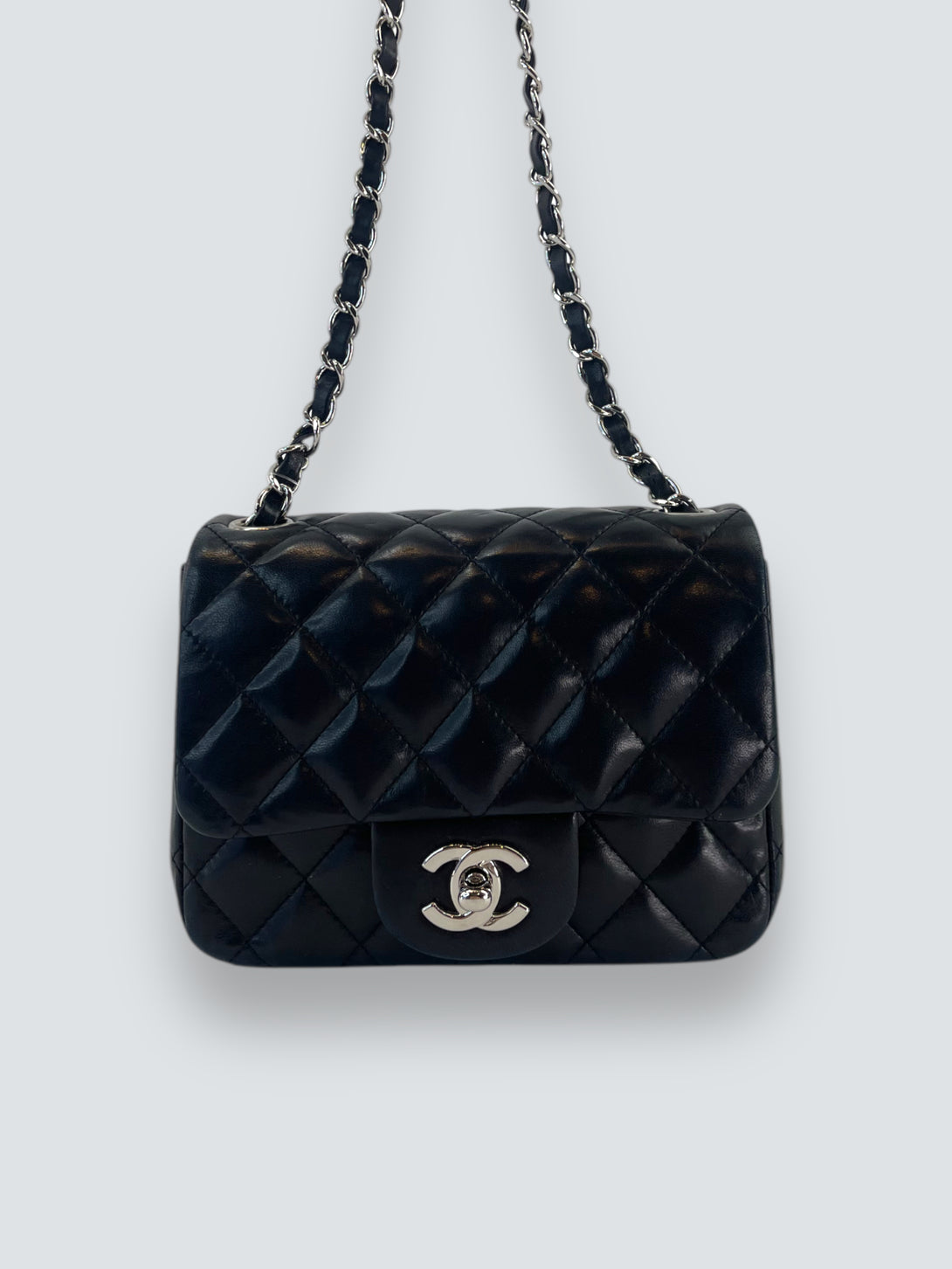 Chanel Black Lambskin Leather Mini Square Flap