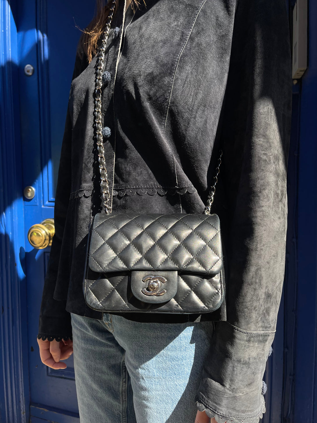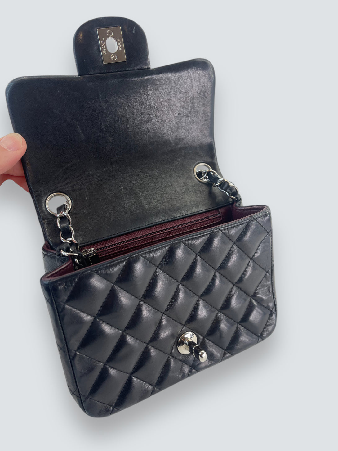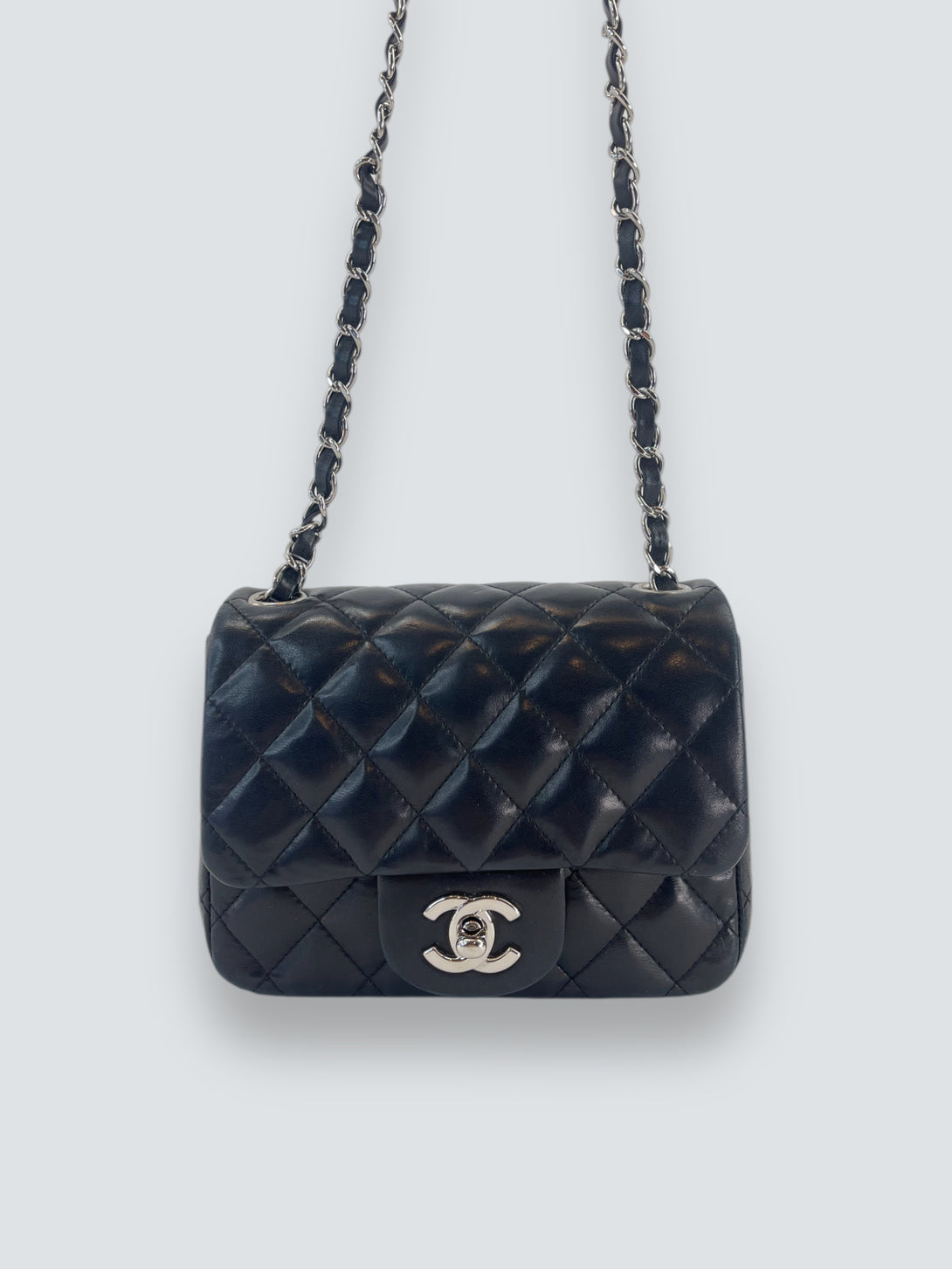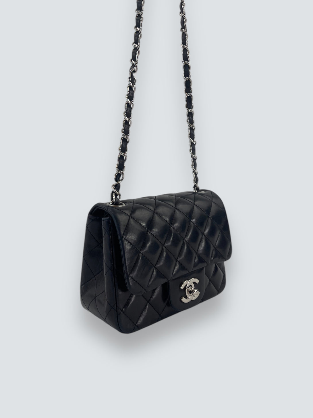 Chanel Black Lambskin Leather Mini Square Flap
