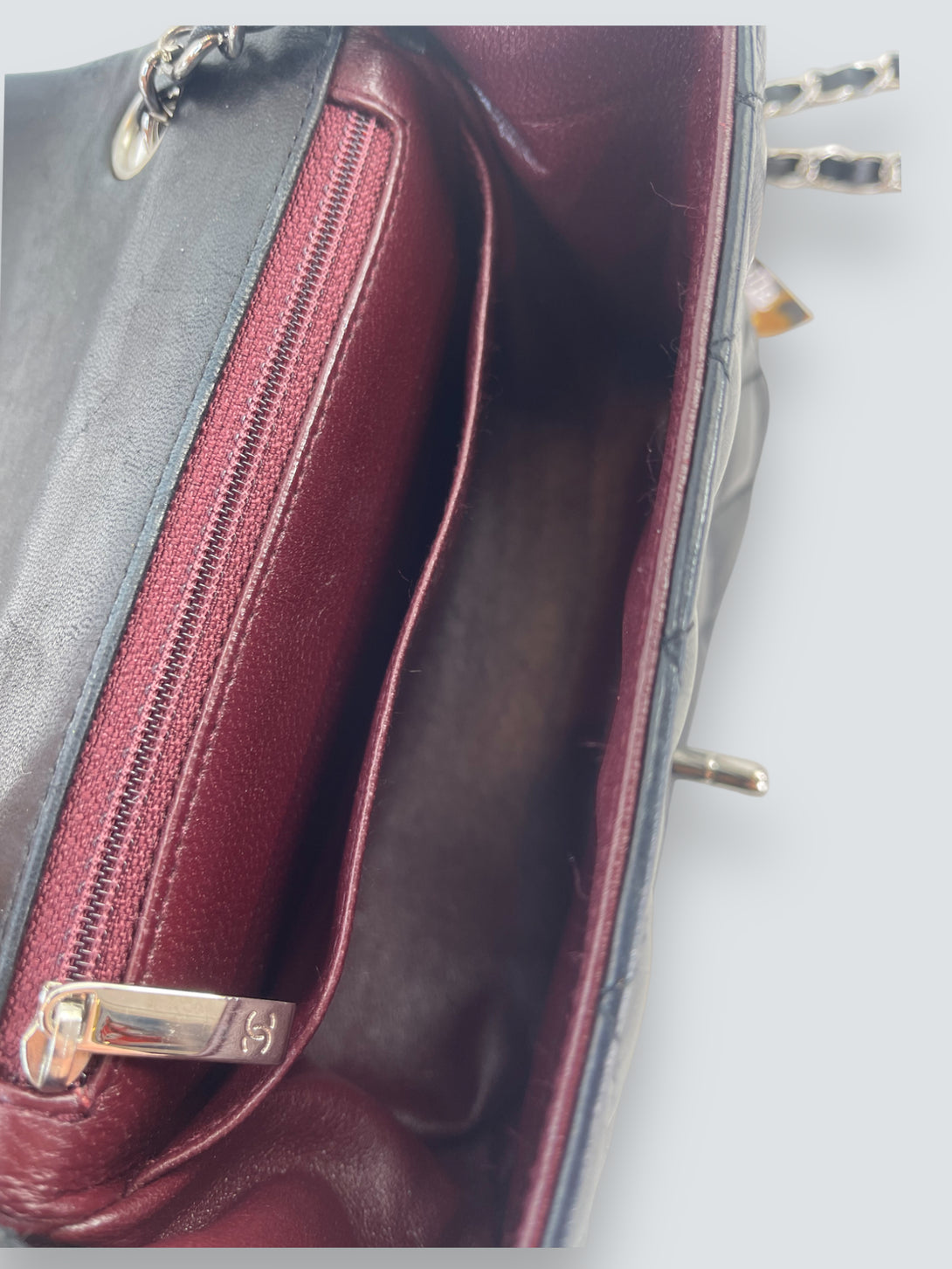 - Interior Compartments: Leather lined interior with slip & zip pockets