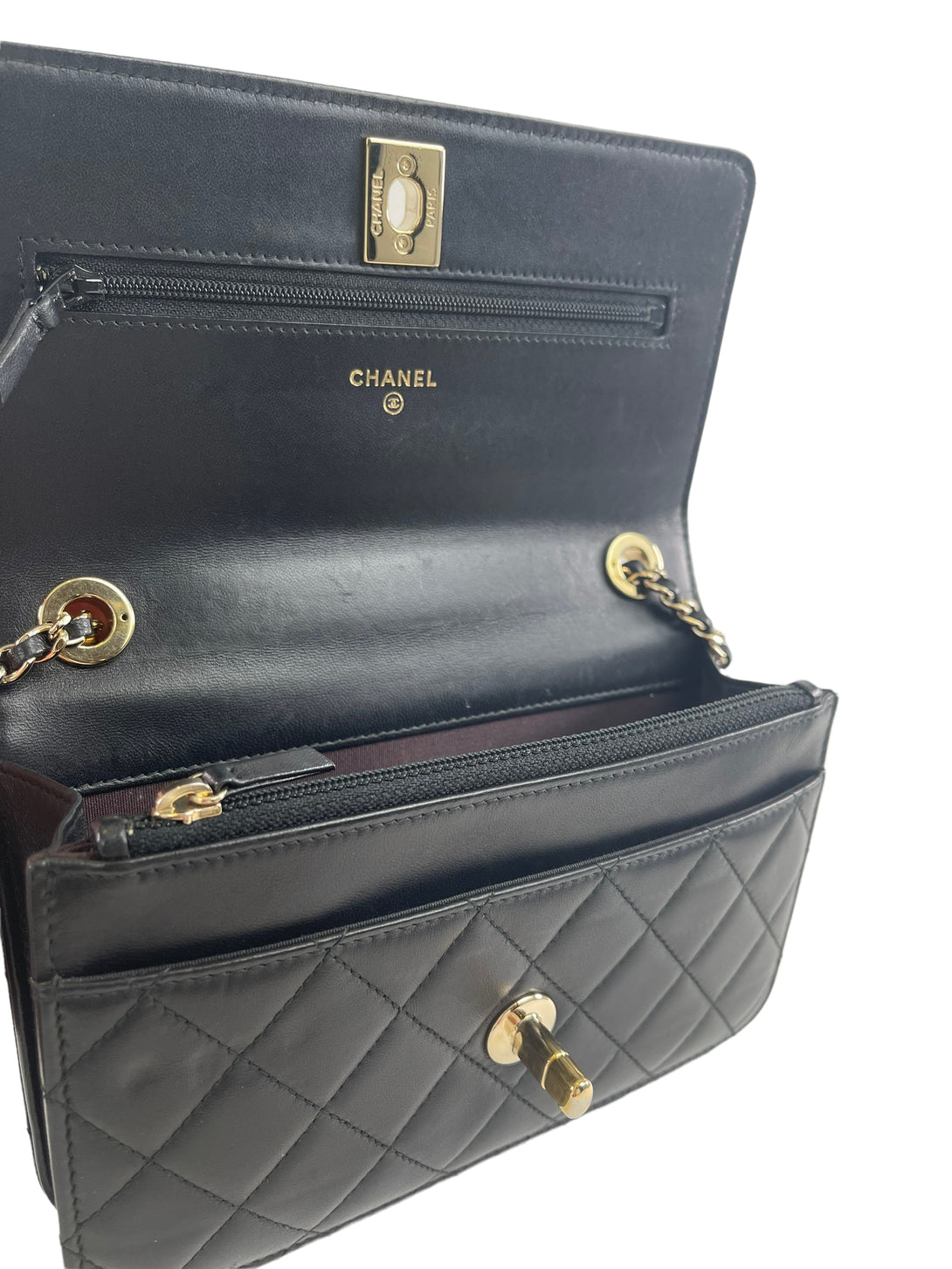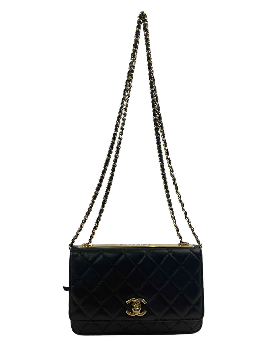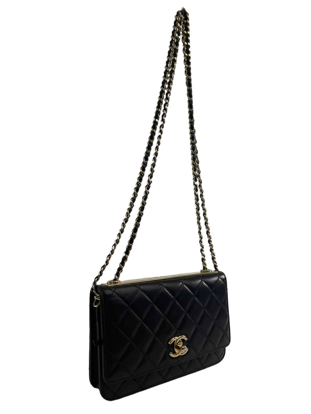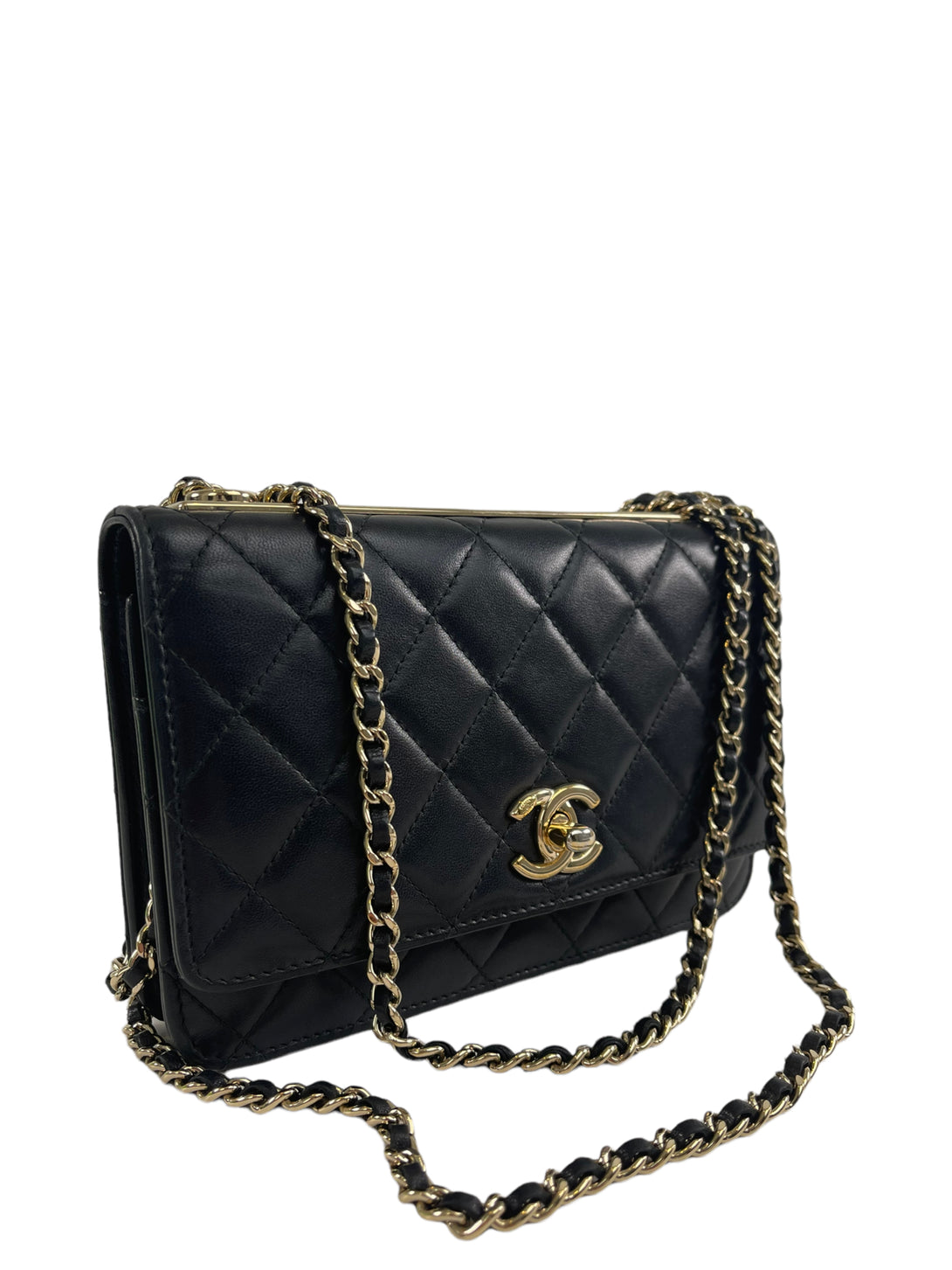 Chanel Black Lambskin Leather "Trendy" Wallet On Chain