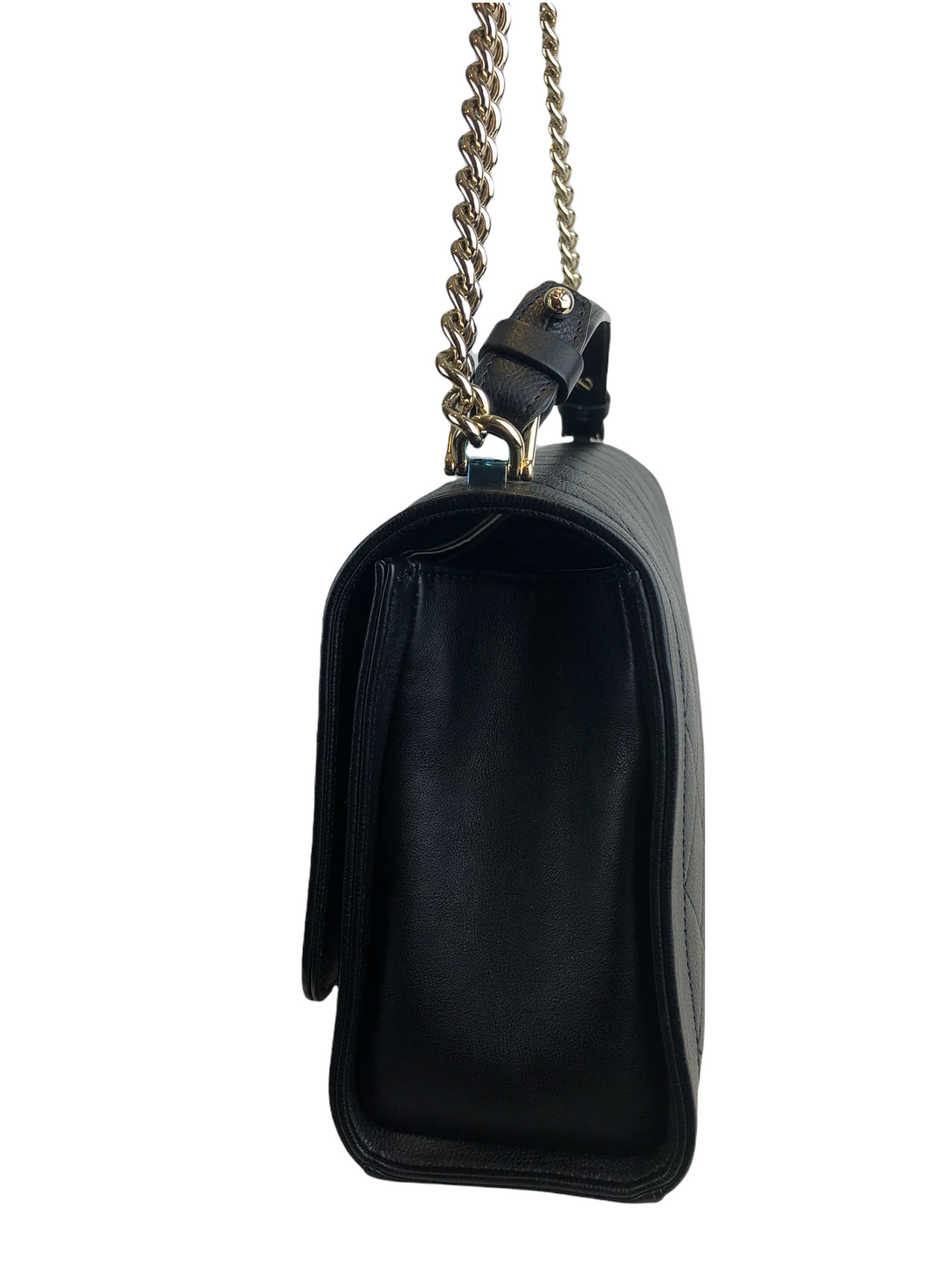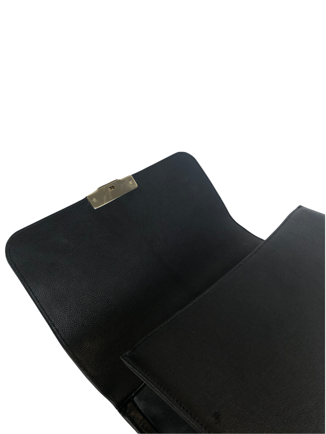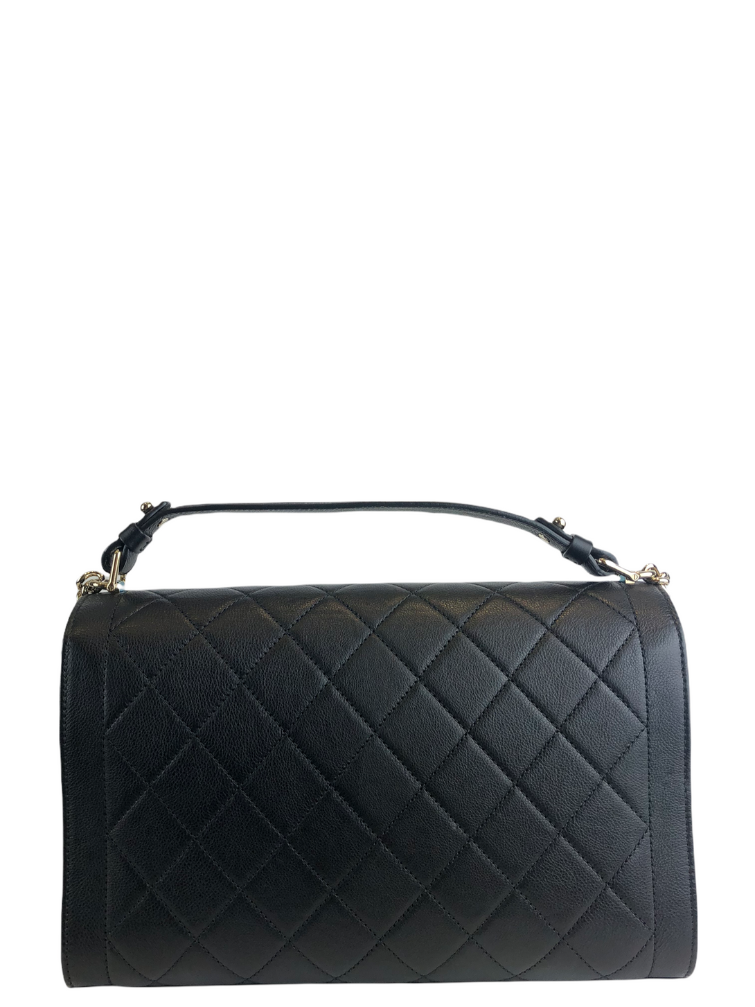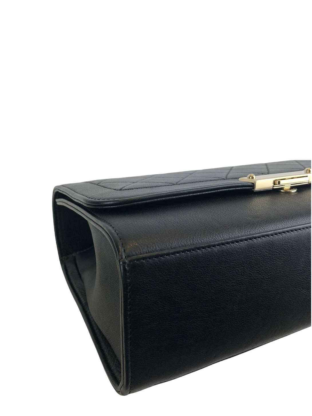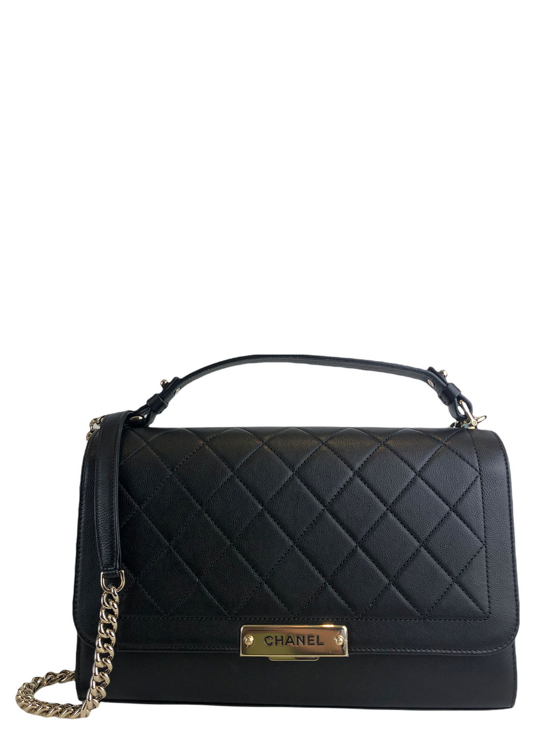 Chanel Quilted Black Calfskin Leather “Lable Click” Flap