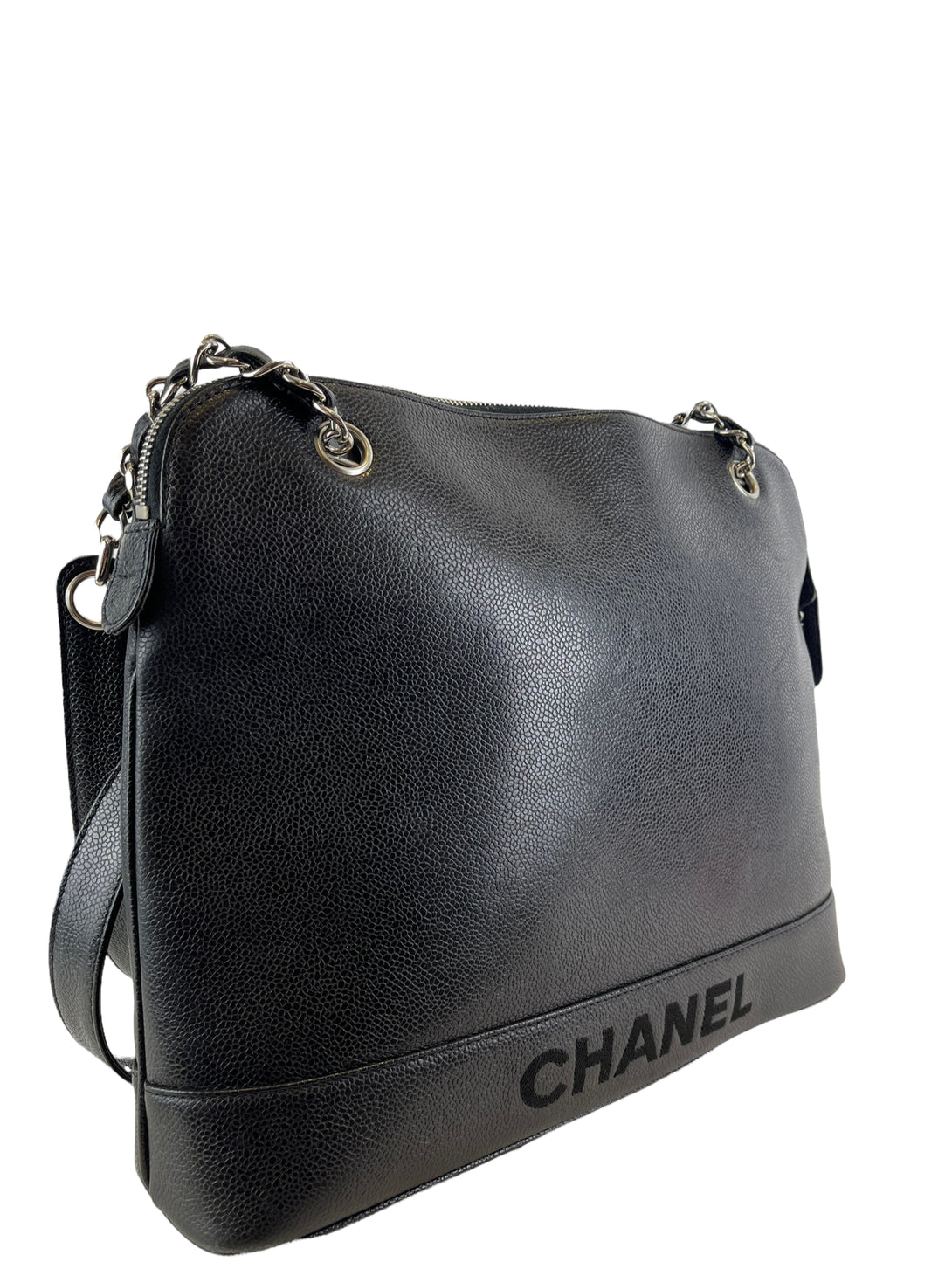 Chanel Vintage Black Caviar Leather Chain Tote/Shoulder Bag