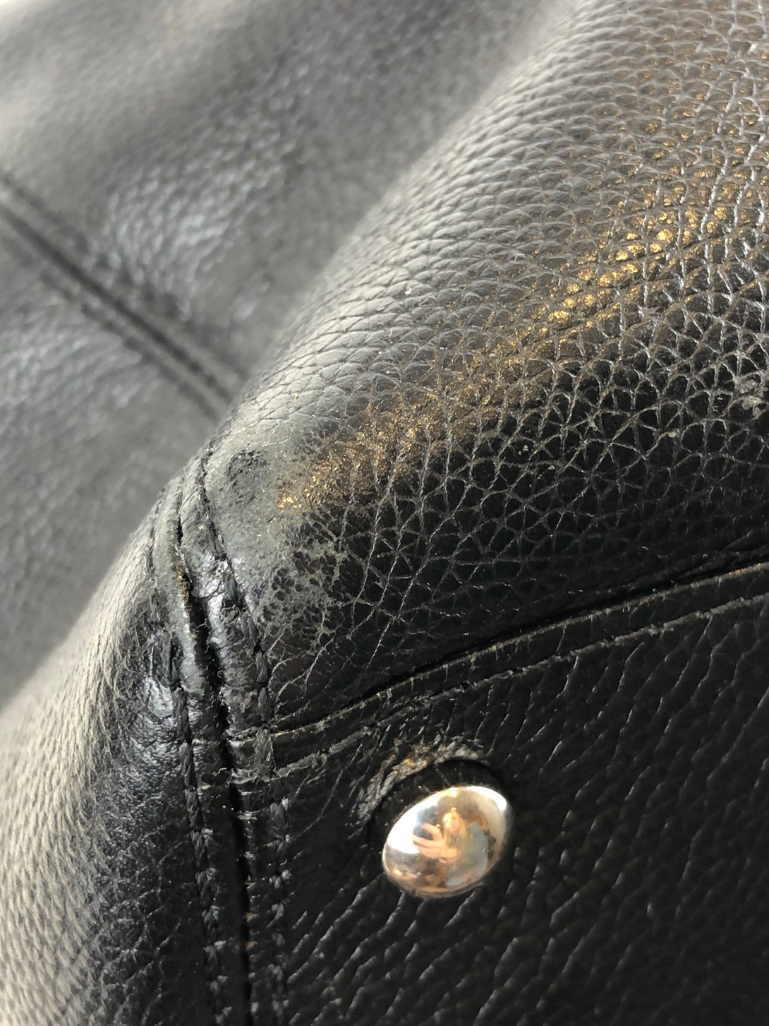 Good: Items show more prominent wear such as noticeable discoloration, stains and snags to fabric. May have worn corners and handles, tarnishing to hardware and creasing to leather. Pen or make up marks may be visible in the interior of the bag.