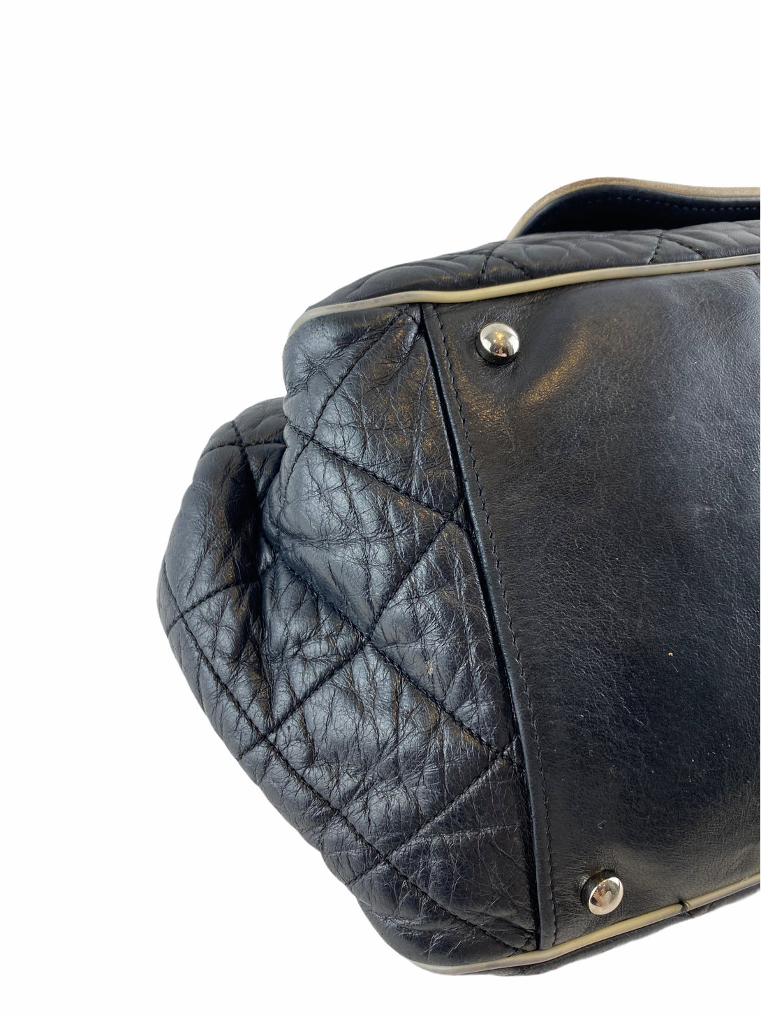 Good: Items show more prominent wear such as noticeable discoloration, stains and snags to fabric. May have worn corners and handles, tarnishing to hardware and creasing to leather. Pen or make up marks may be visible in the interior of the bag.