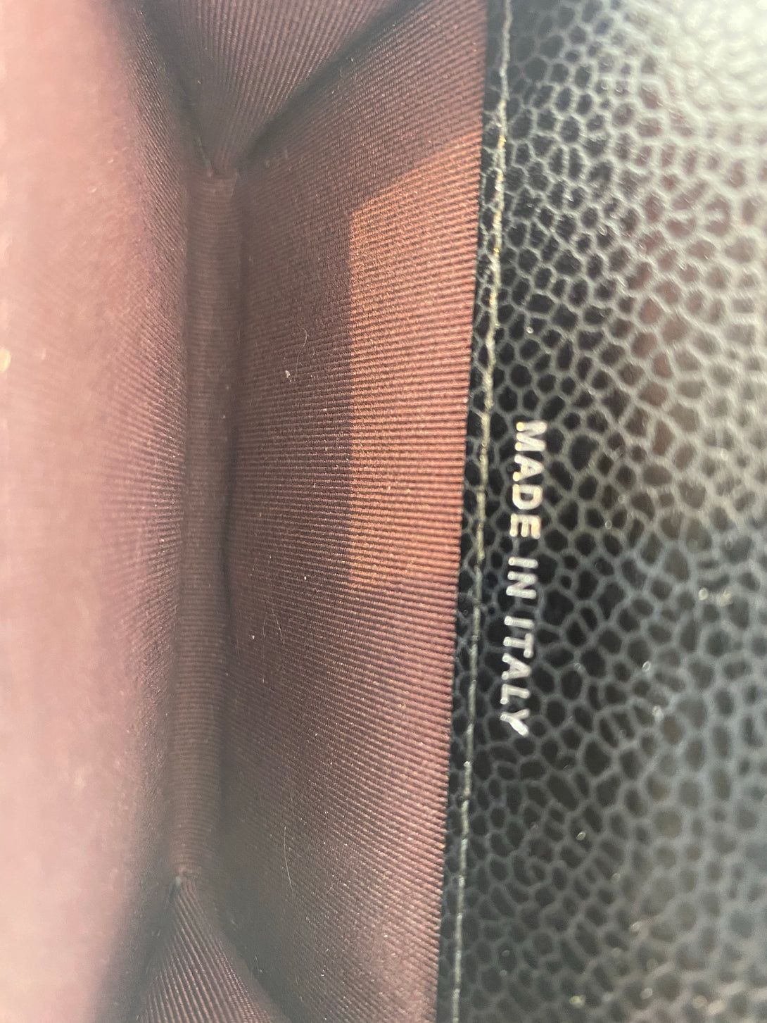 Good: Items show more prominent wear such as noticeable discoloration, stains and snags to fabric. May have worn corners and handles, tarnishing to hardware and creasing to leather. Pen or make up marks may be visible in the interior of the bag.
