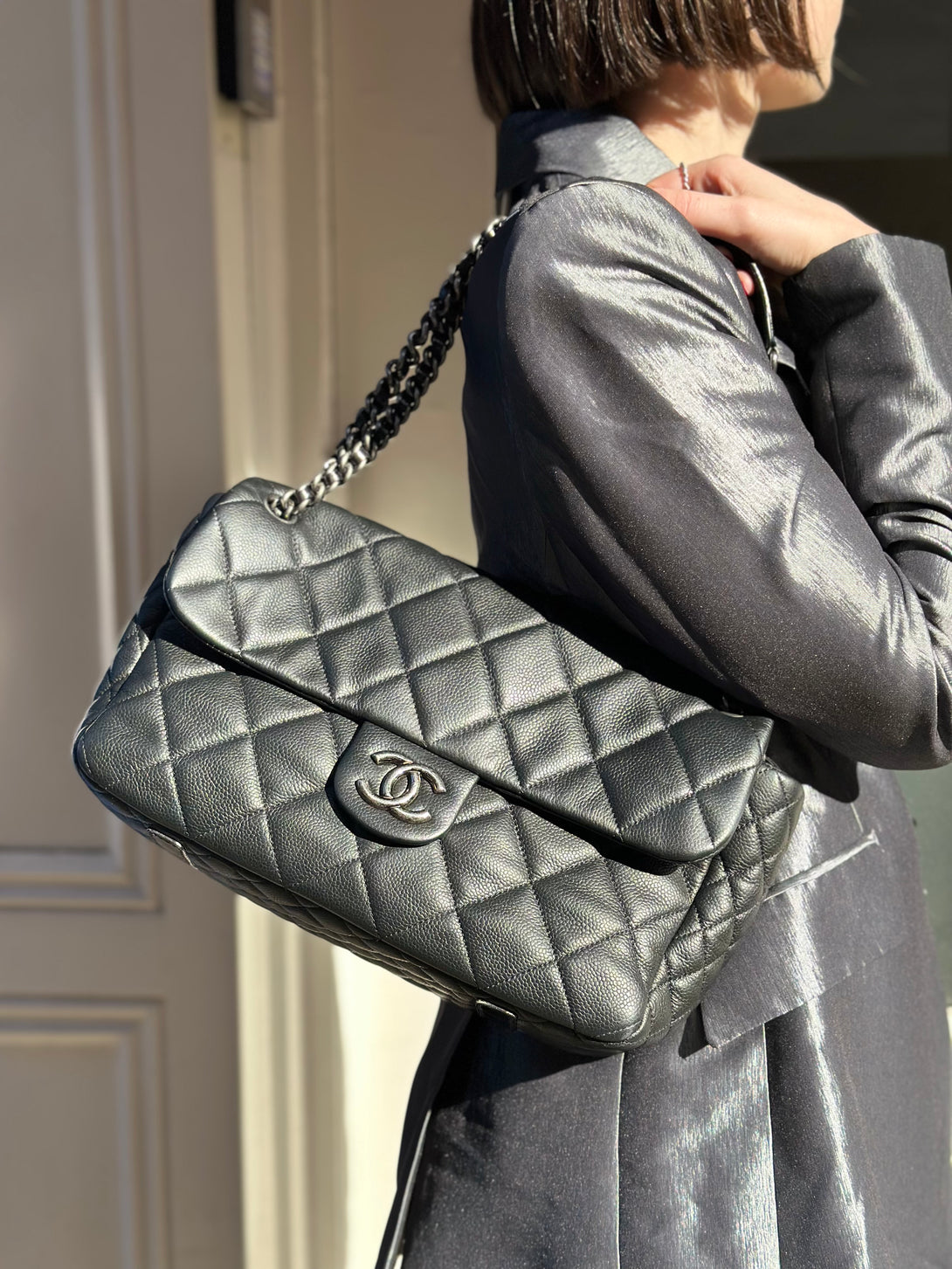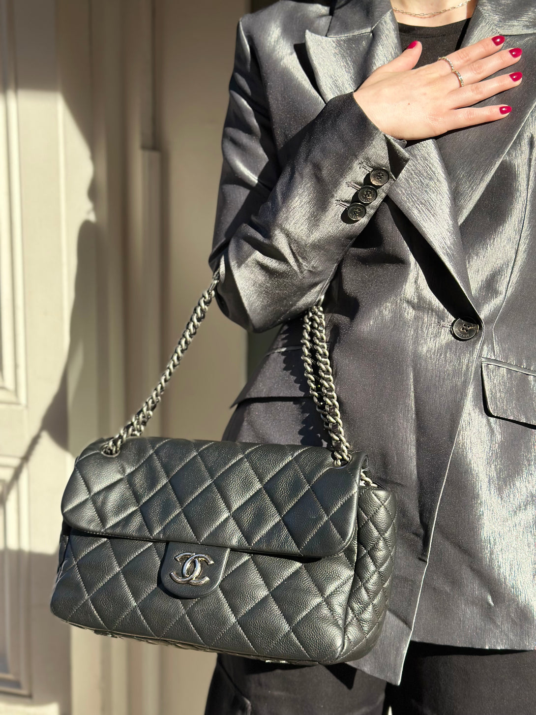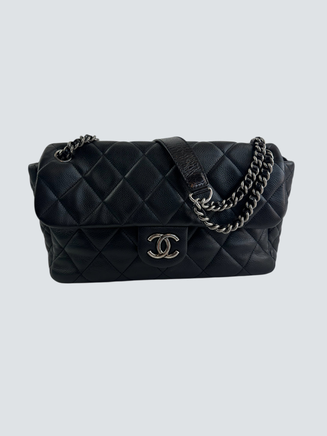 Chanel Black Quillted Caviar Leather Shoulder Bag