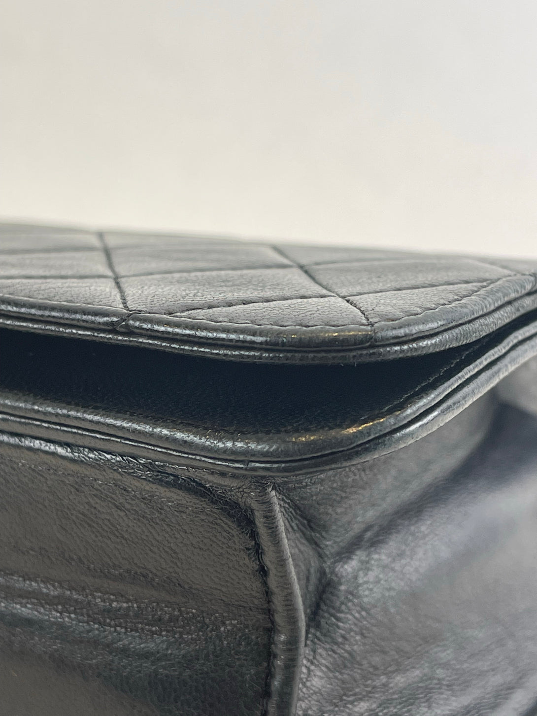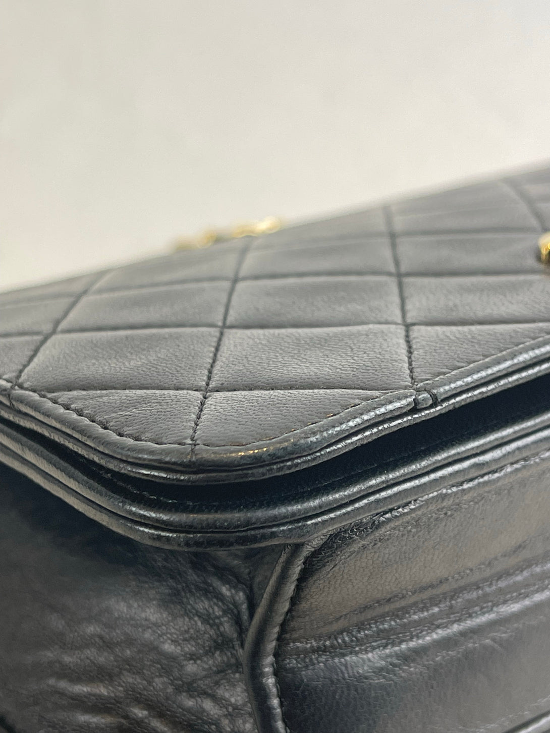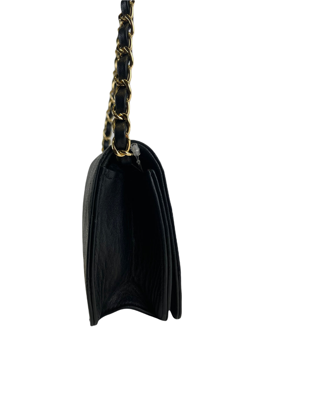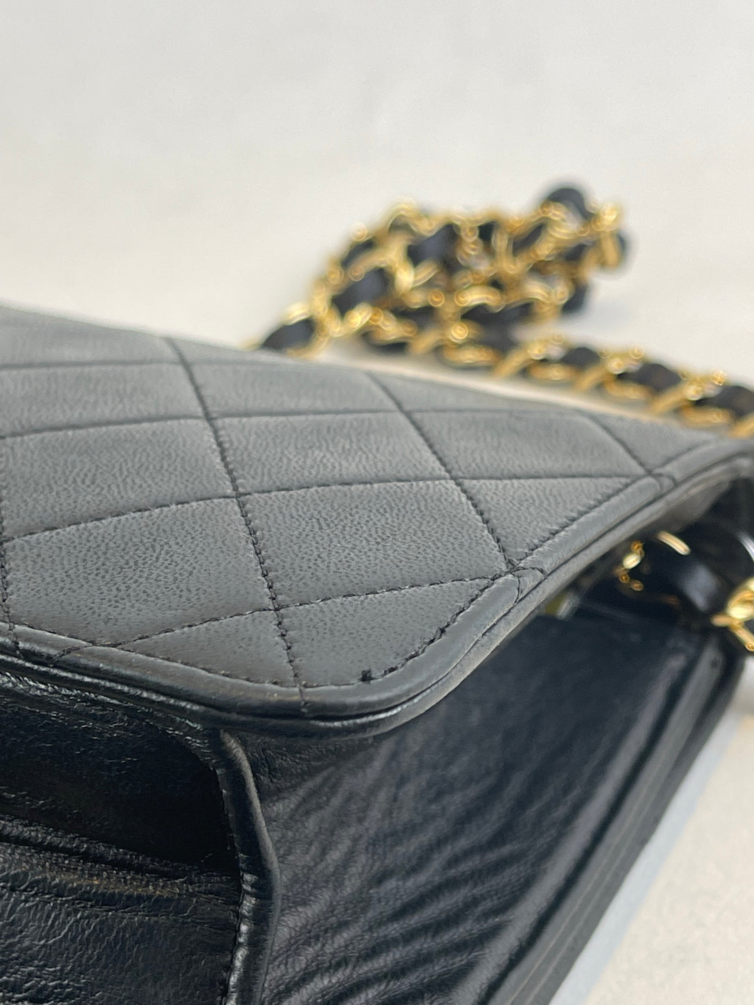 Chanel Vintage Black Quilted Lambskin Leather Wallet on Chain Shoulder Bag