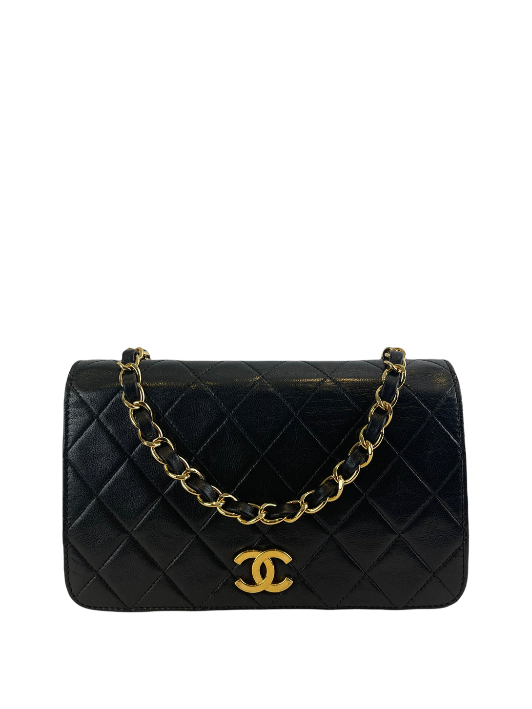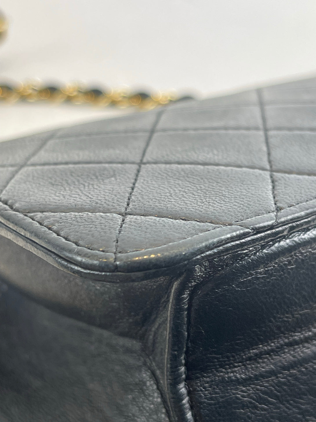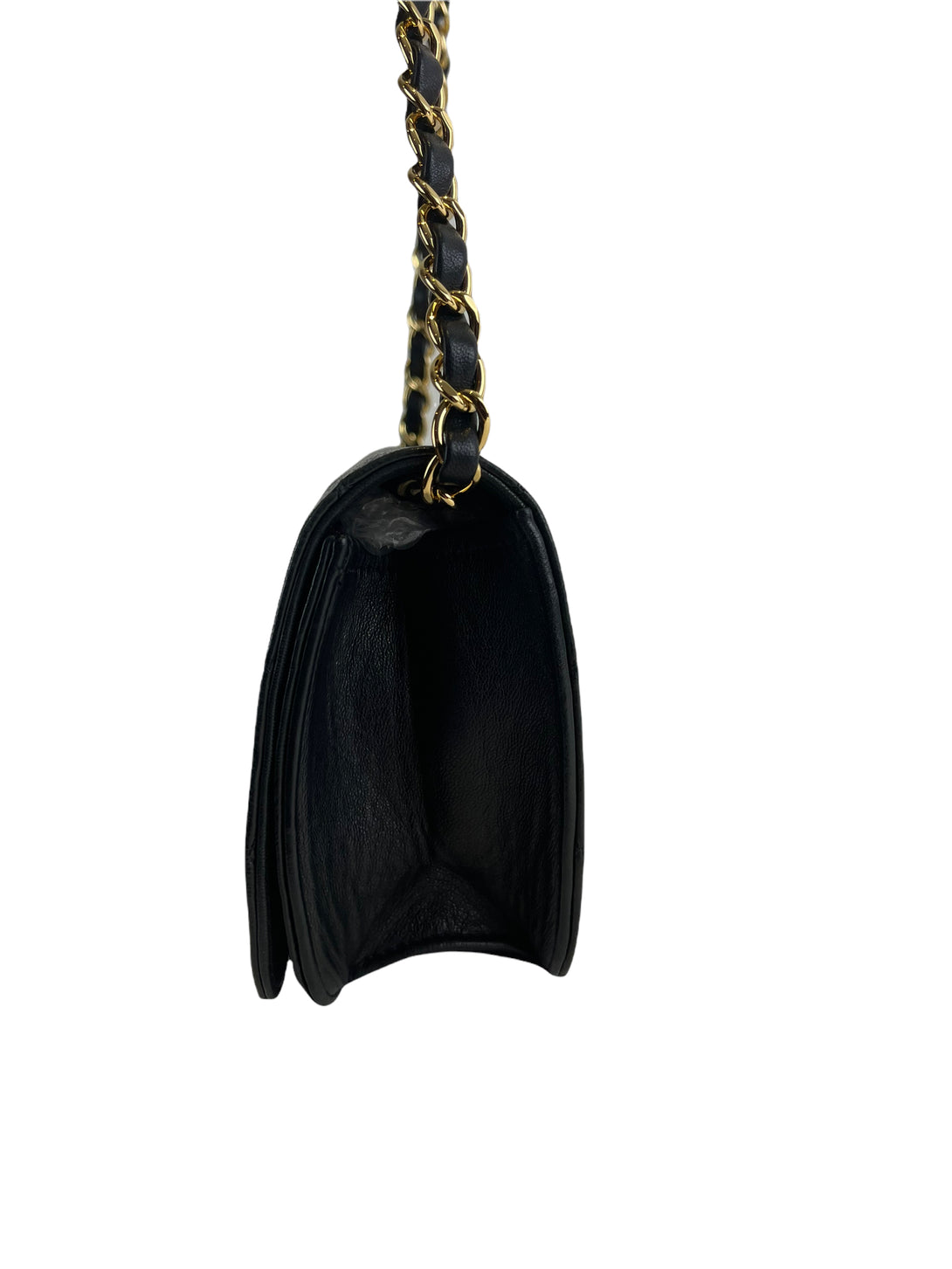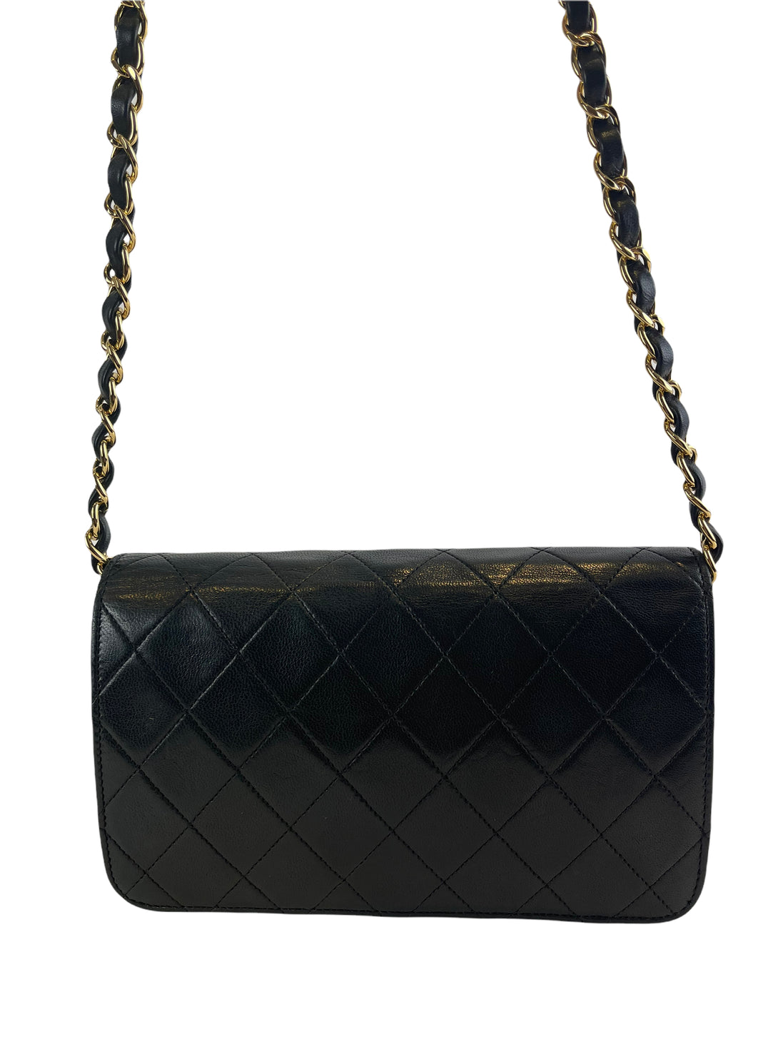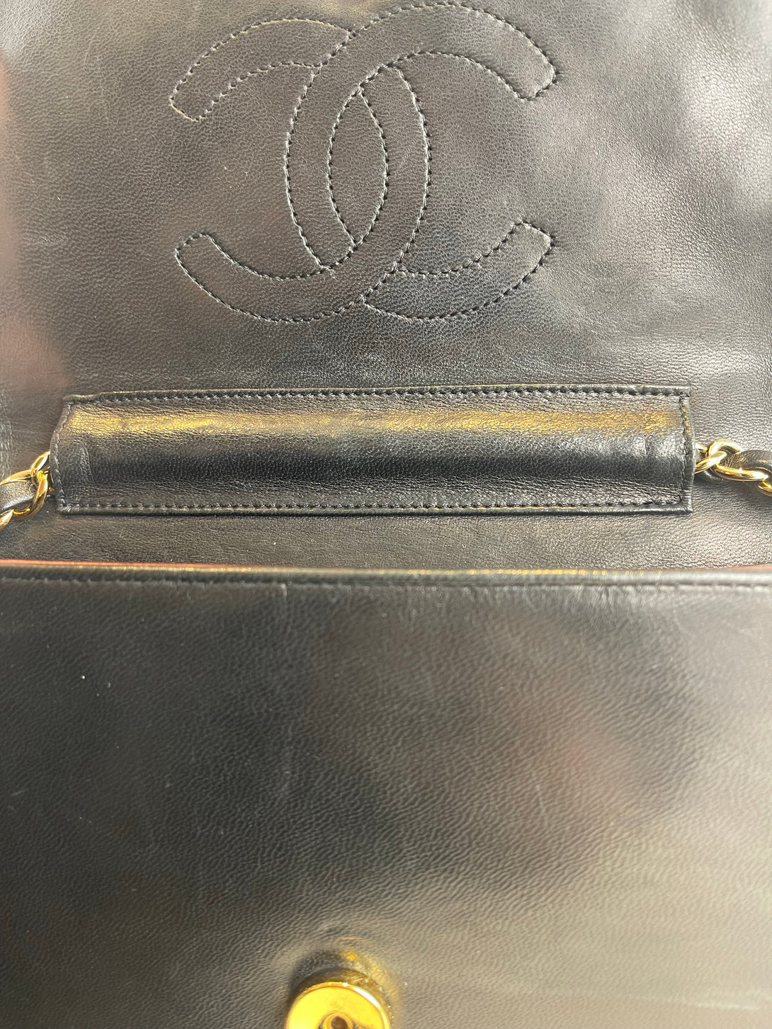 Chanel Vintage Black Quilted Lambskin Leather Wallet on Chain Shoulder Bag