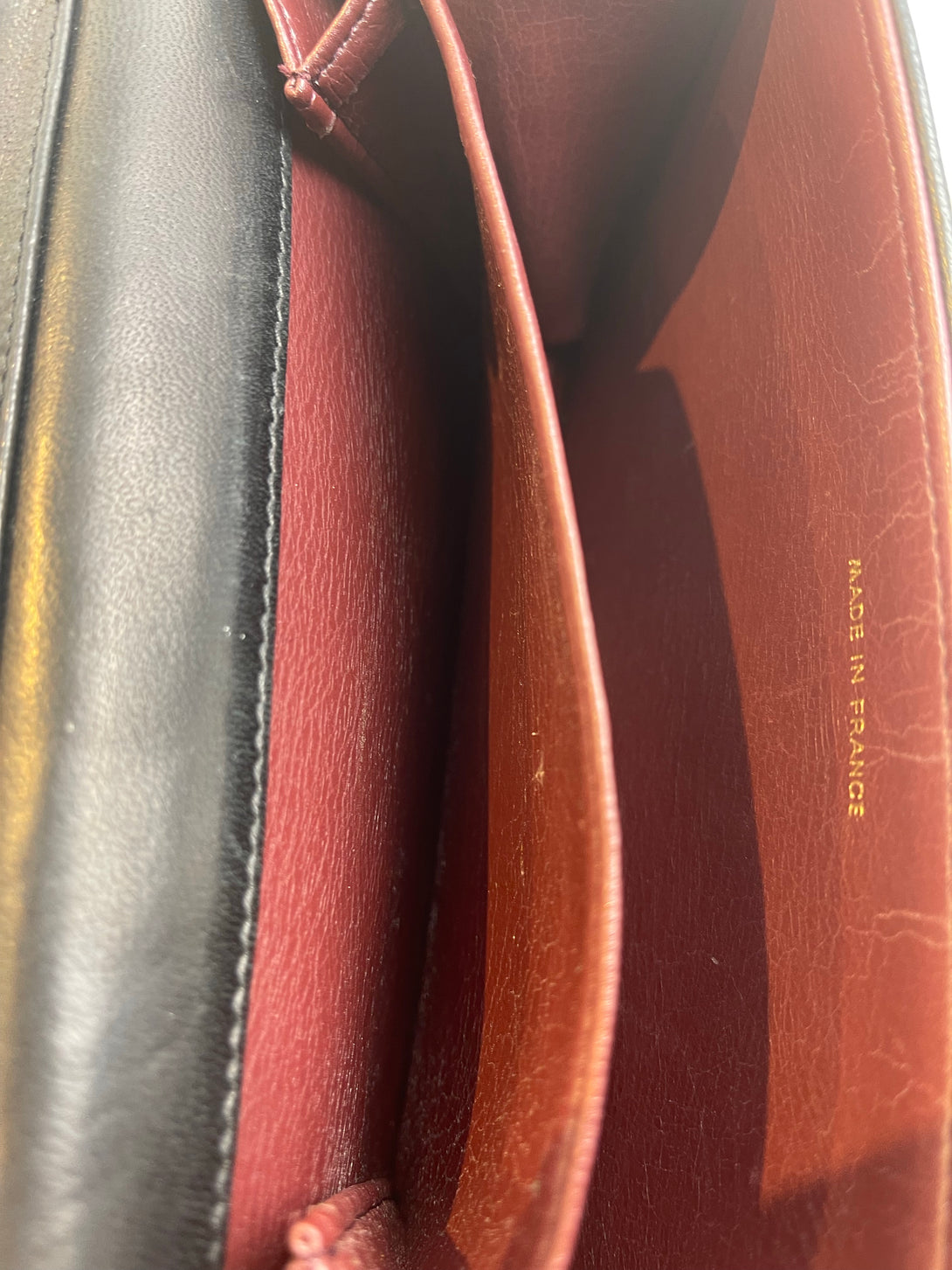 Good: Items show more prominent wear such as noticeable discoloration, stains and snags to fabric. May have worn corners and handles, tarnishing to hardware and creasing to leather. Pen or make up marks may be visible in the interior of the bag.