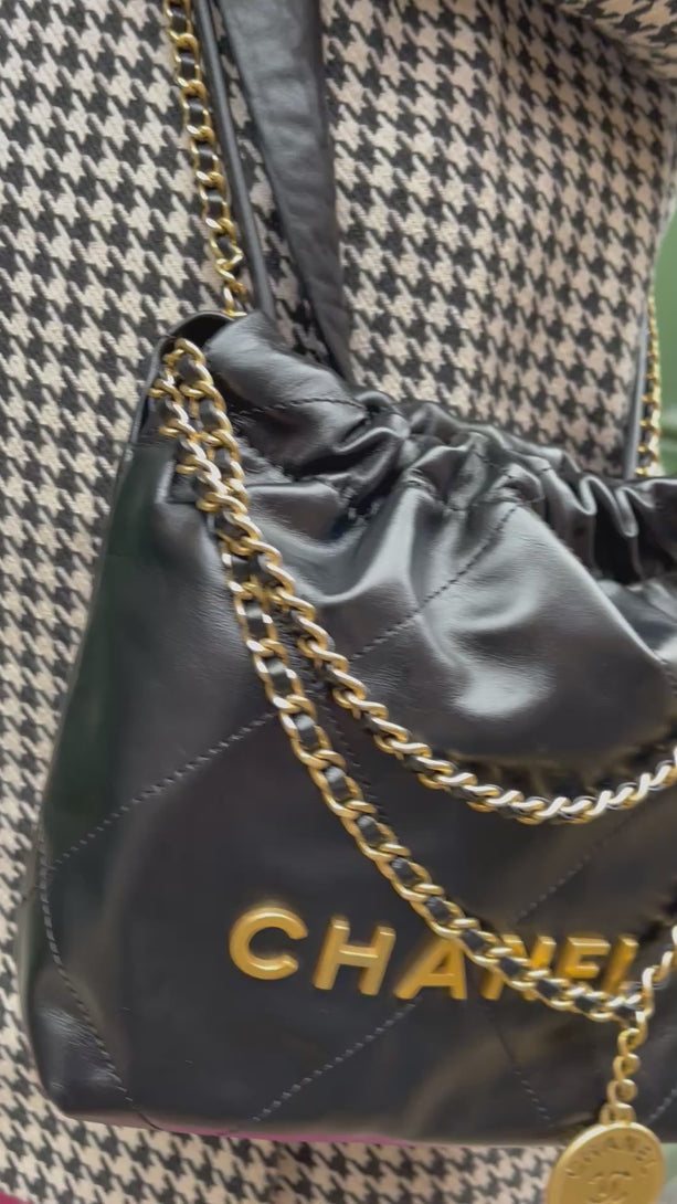 Chanel Black Shiny Calfskin Leather 22 Mini Crossbody