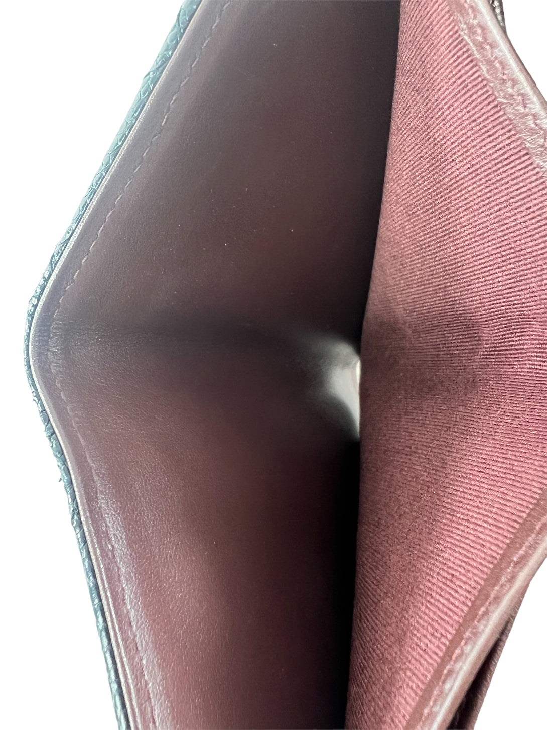 Good: Items show more prominent wear such as noticeable discoloration, stains and snags to fabric. May have worn corners and handles, tarnishing to hardware and creasing to leather. Pen or make up marks may be visible in the interior of the bag.