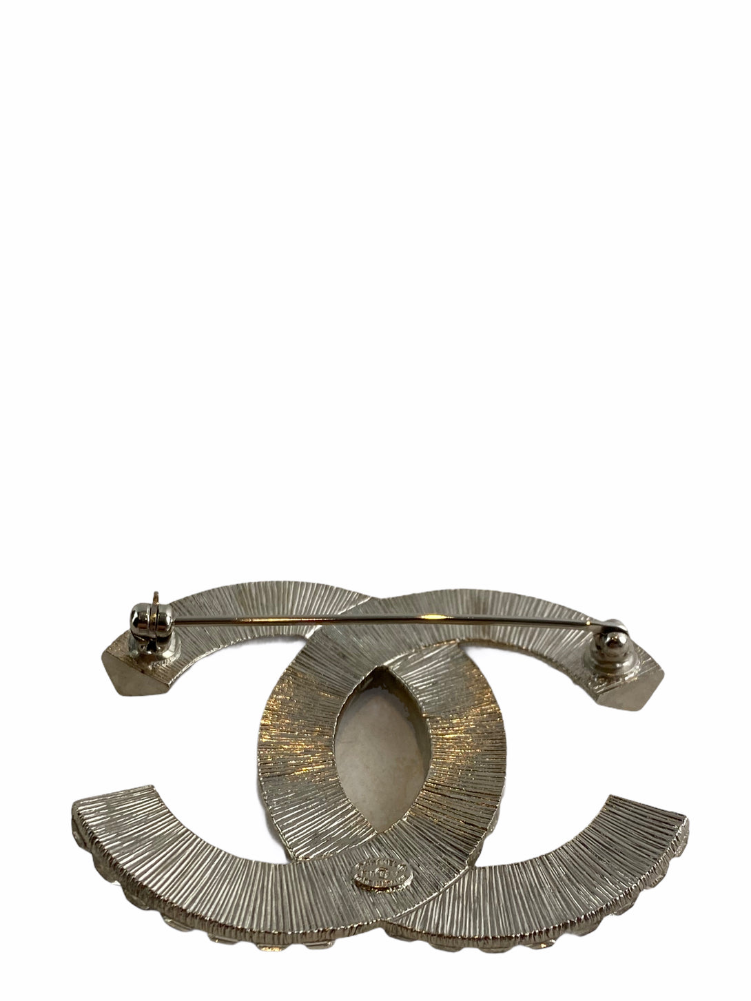 Chanel CC Silver Brooch