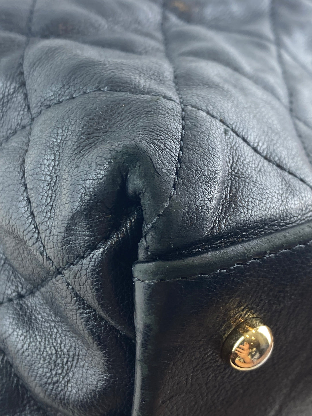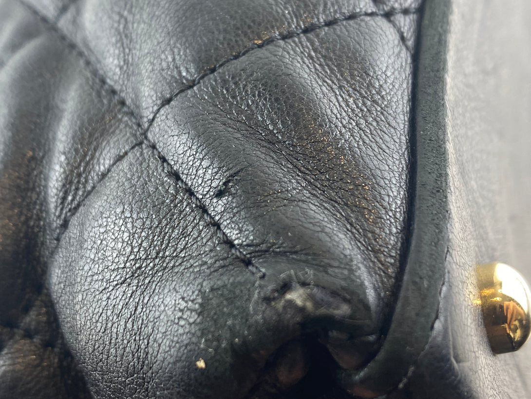 Good: Items show more prominent wear such as noticeable discoloration, stains and snags to fabric. May have worn corners and handles, tarnishing to hardware and creasing to leather. Pen or make up marks may be visible in the interior of the bag.