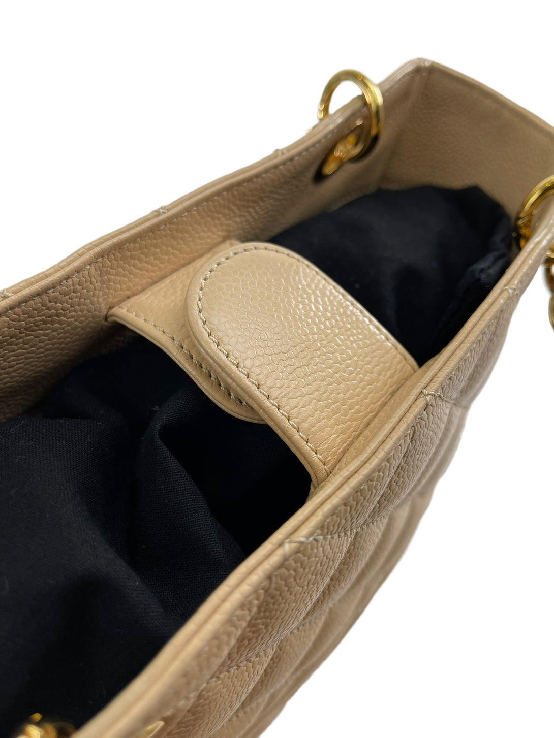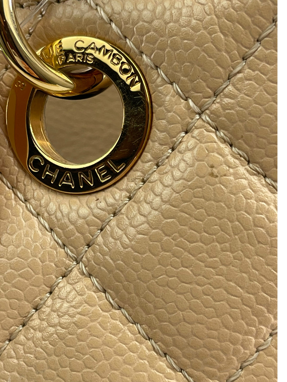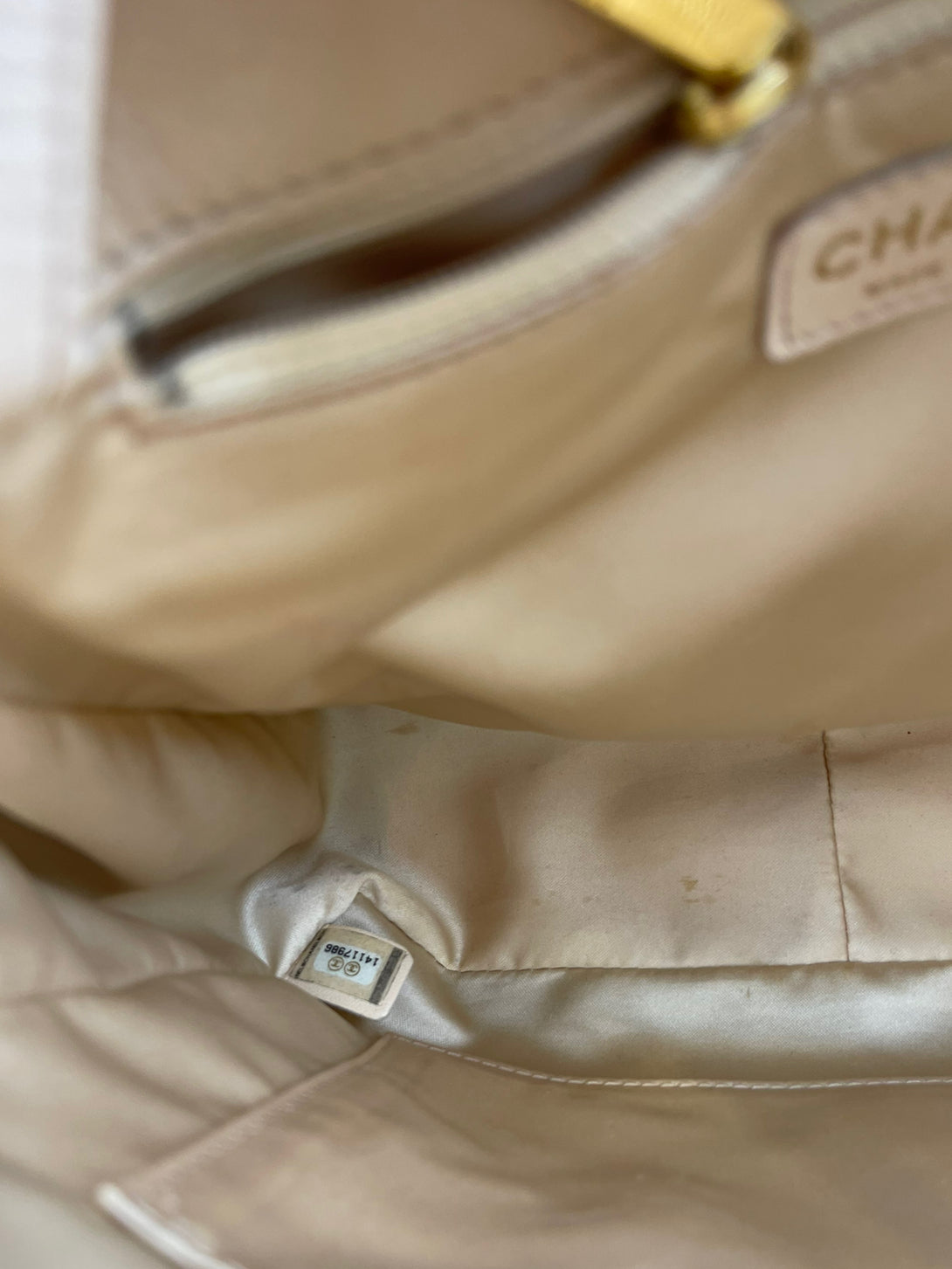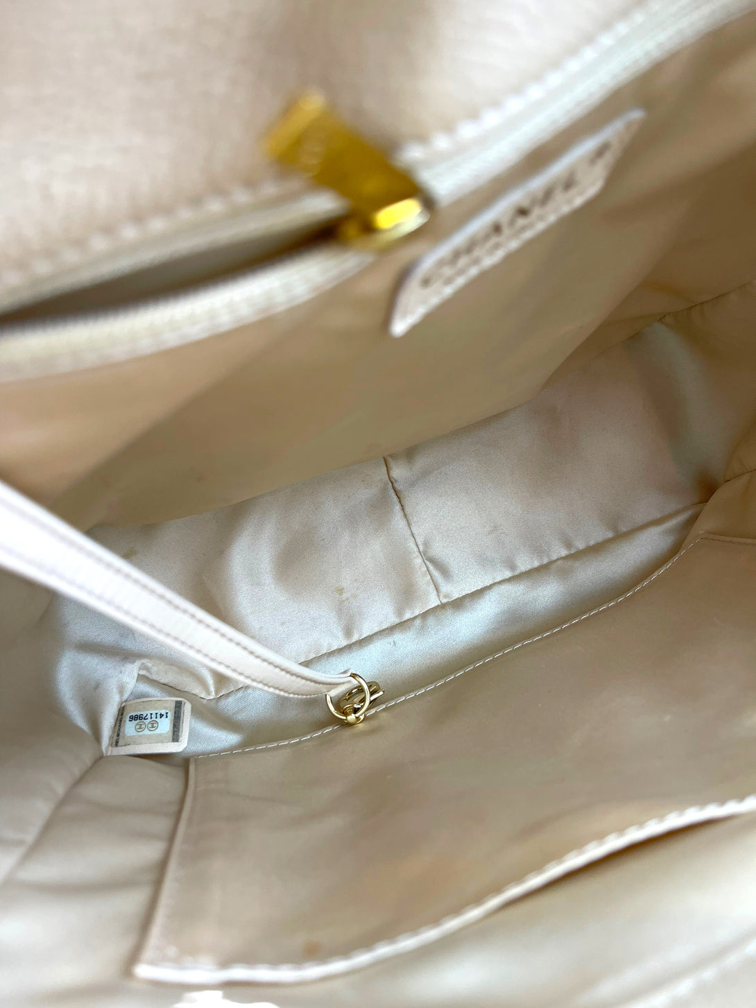 Good: Items show more prominent wear such as noticeable discoloration, stains and snags to fabric. May have worn corners and handles, tarnishing to hardware and creasing to leather. Pen or make up marks may be visible in the interior of the bag.