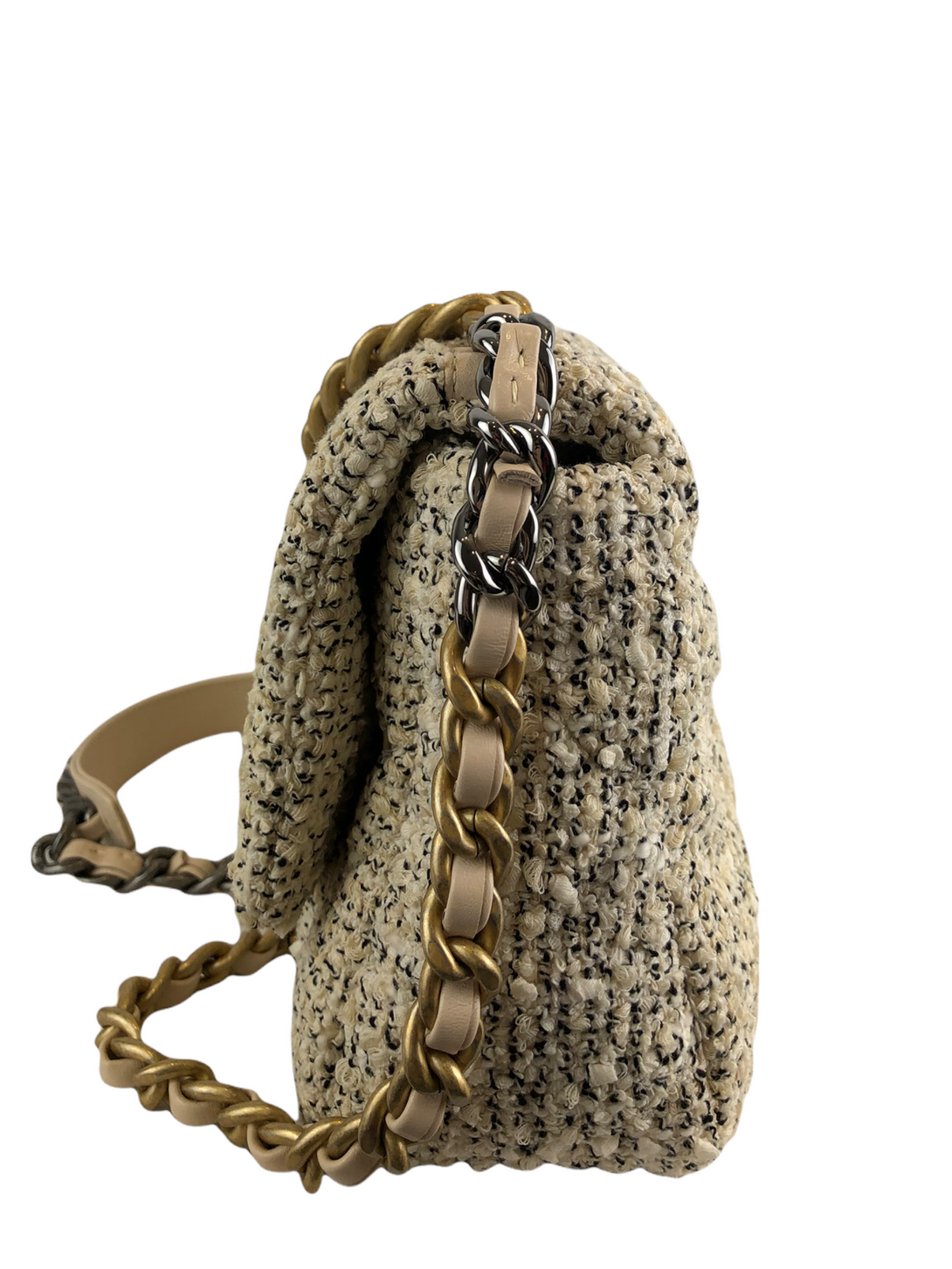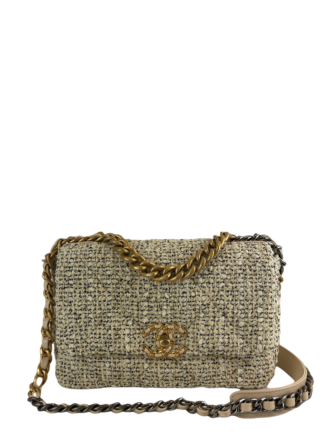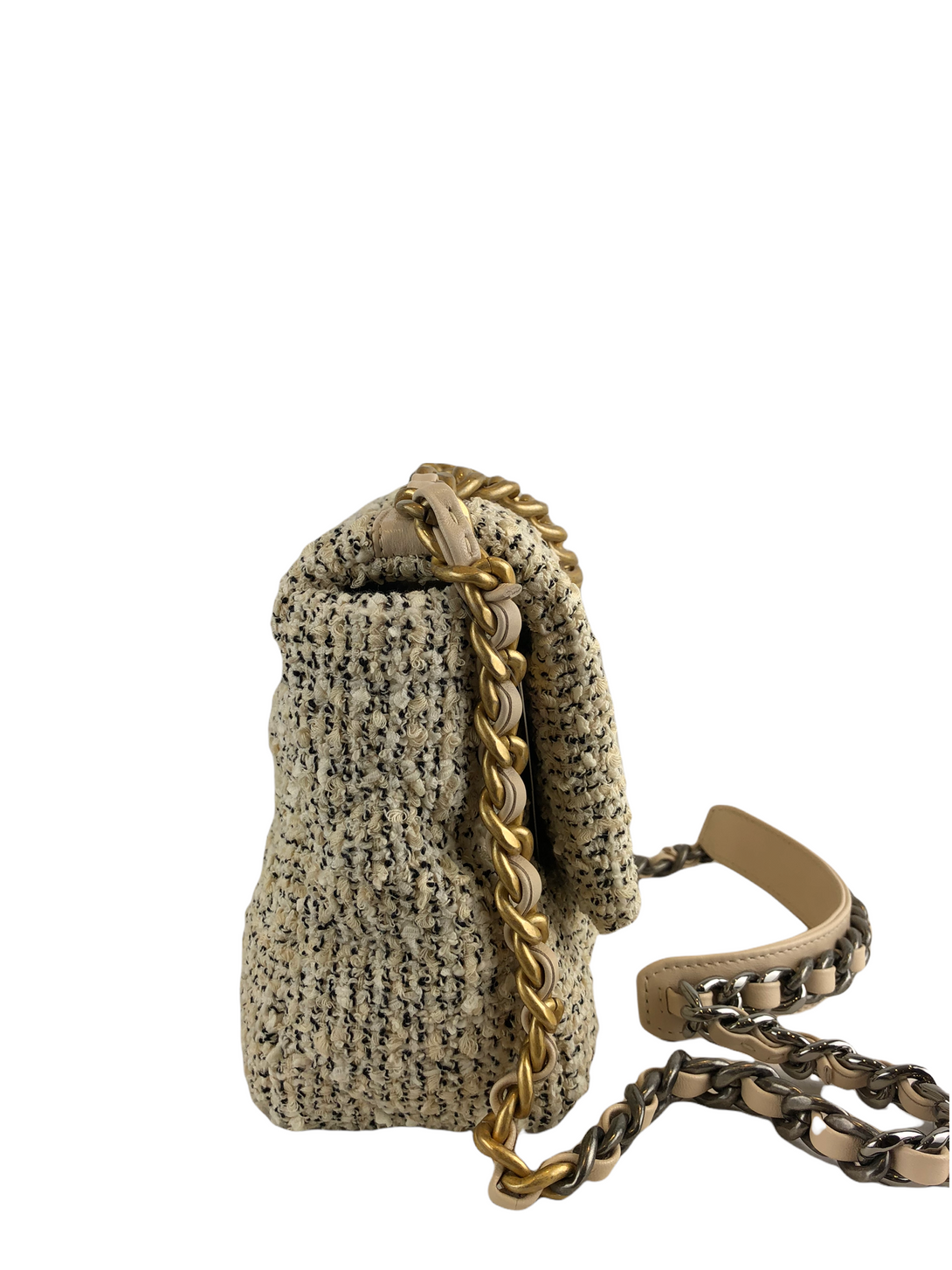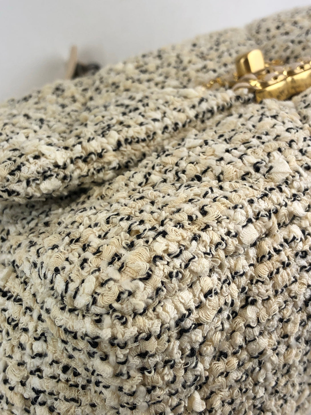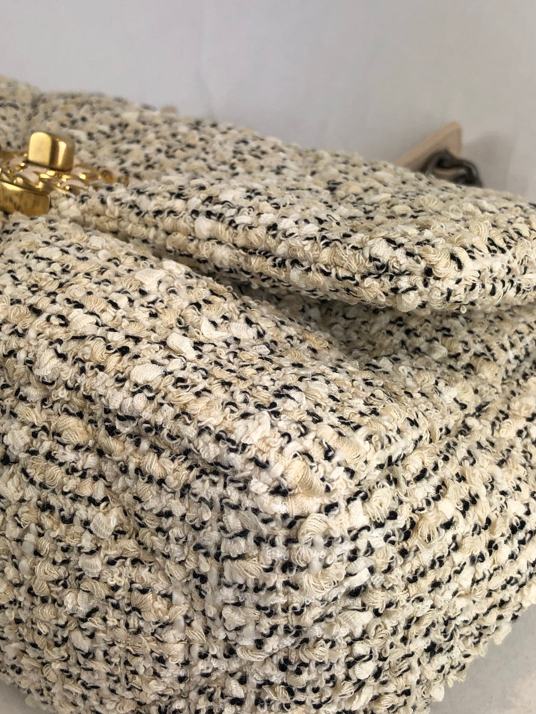 Chanel Cream Quilted Tweed ‘19 Flap’