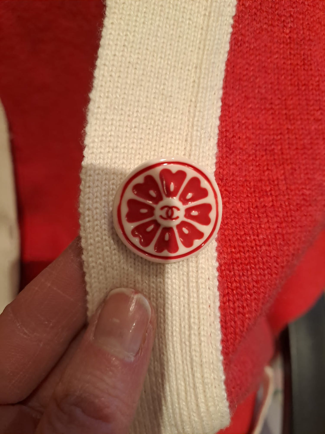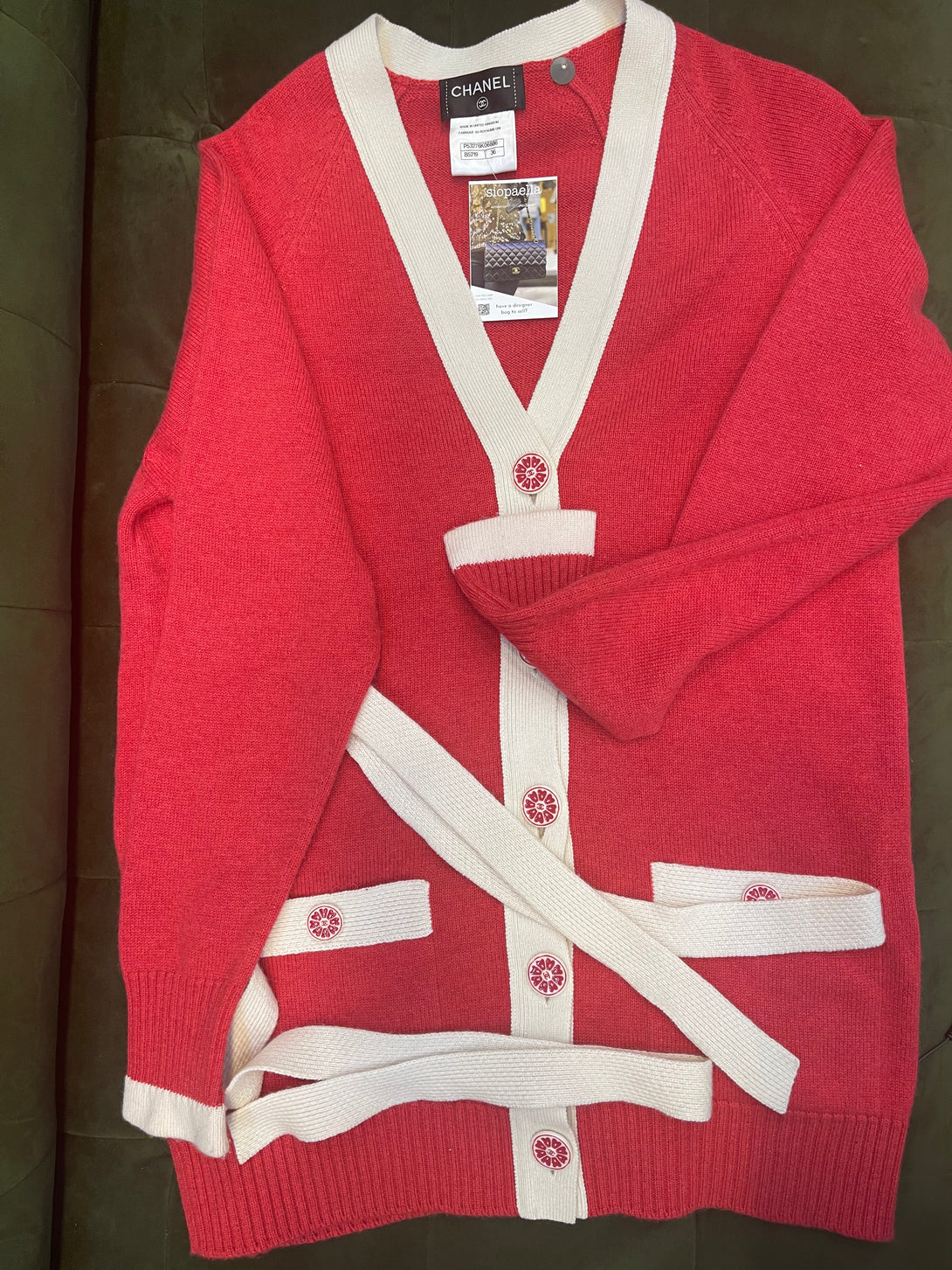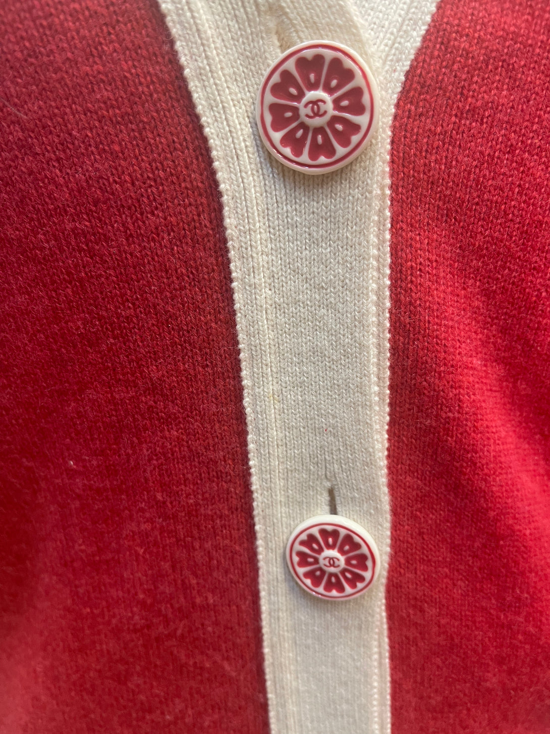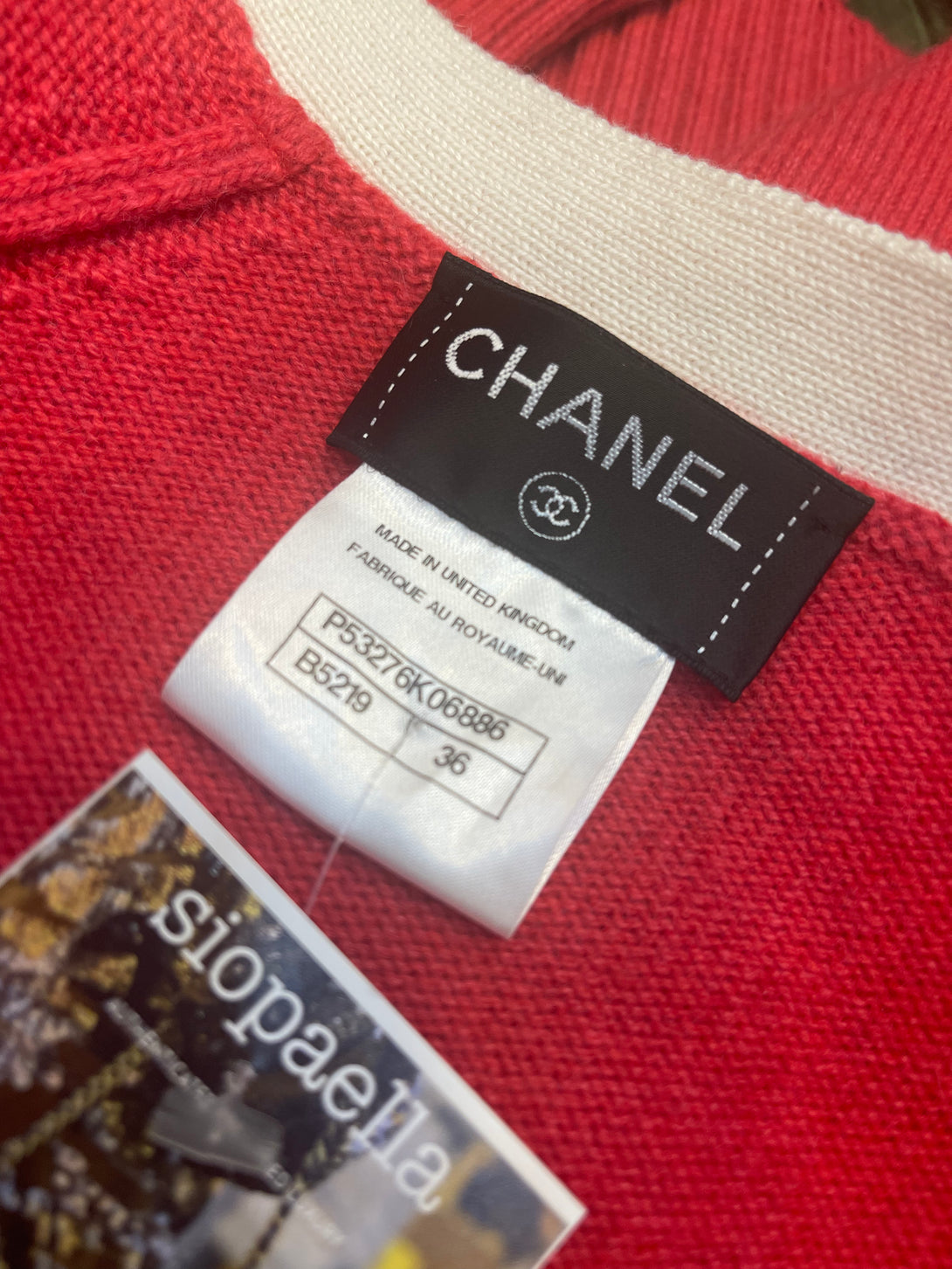 Chanel Dark Pink & Cream 100% Cashmere Cardigan - UK 8 / EU 36
