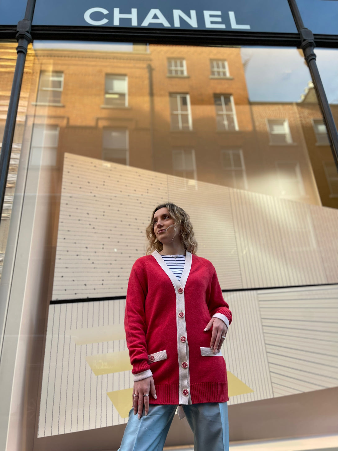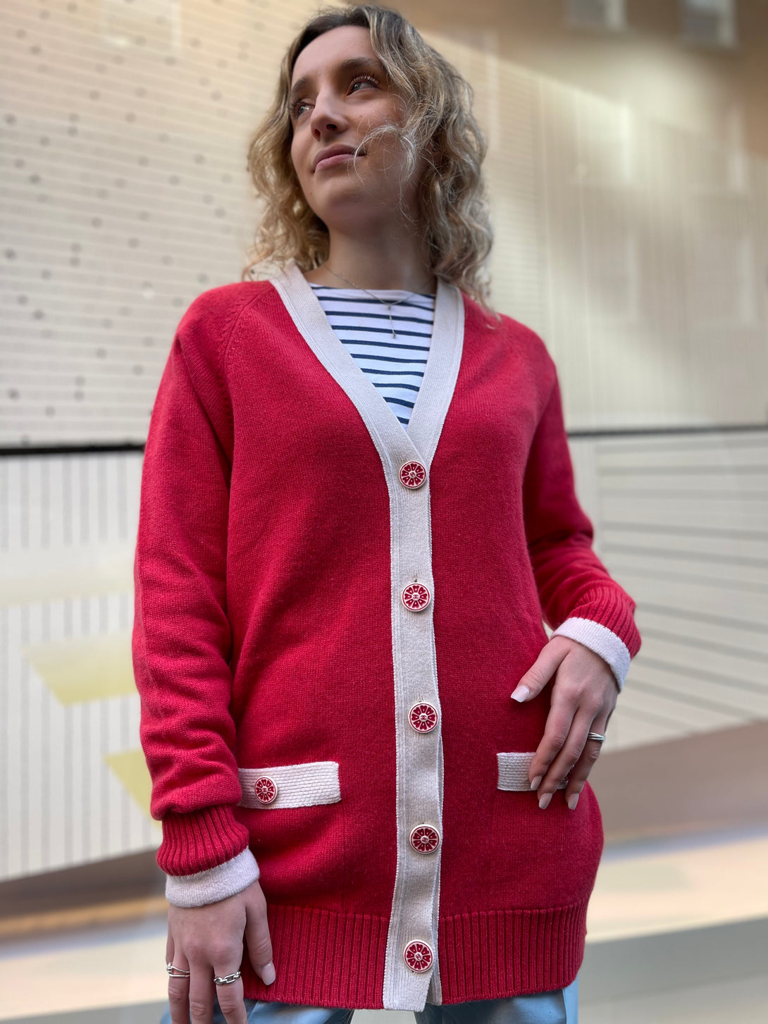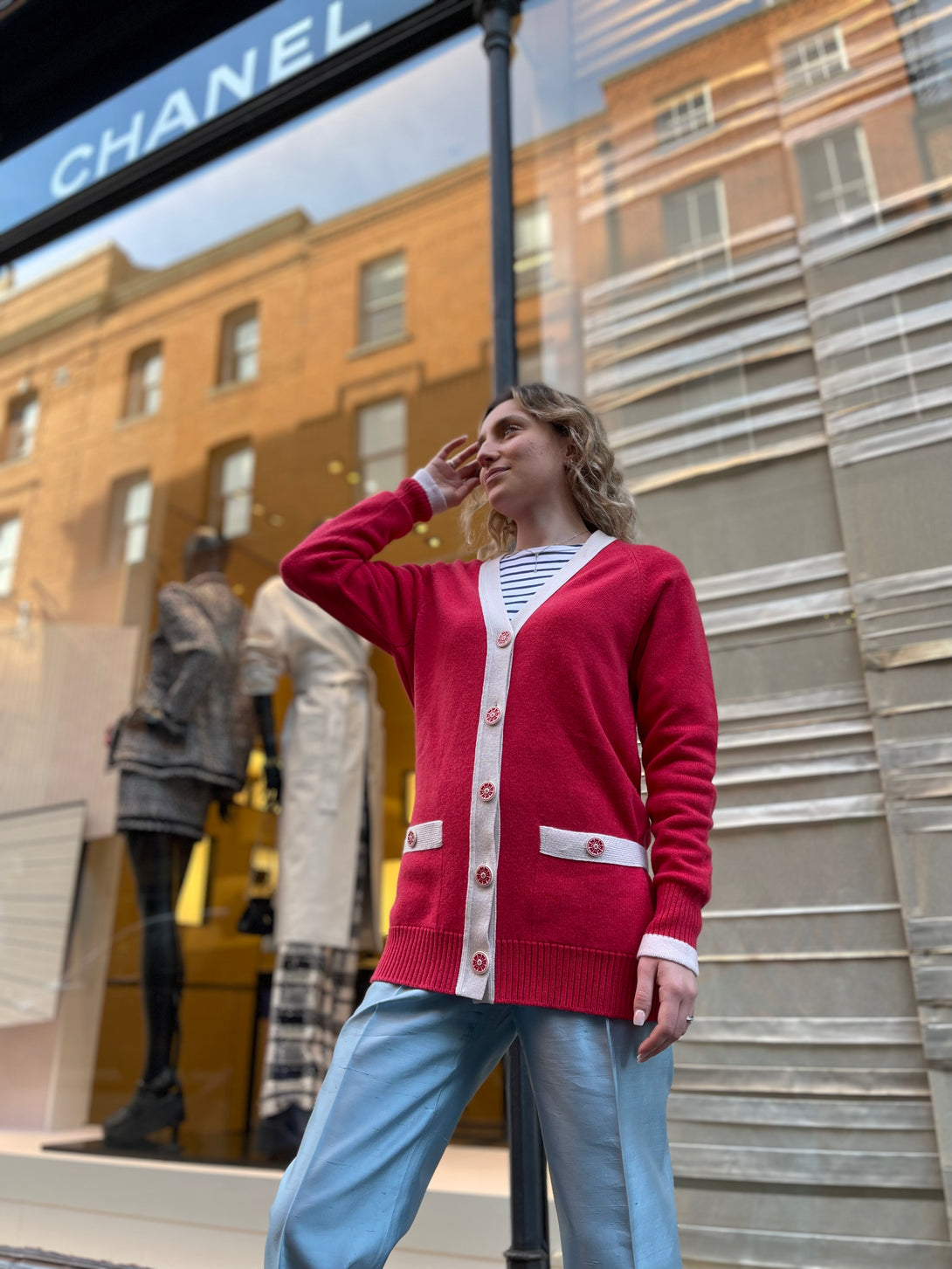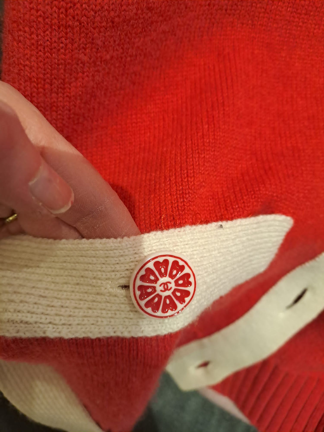 Chanel Dark Pink & Cream 100% Cashmere Cardigan - UK 8 / EU 36