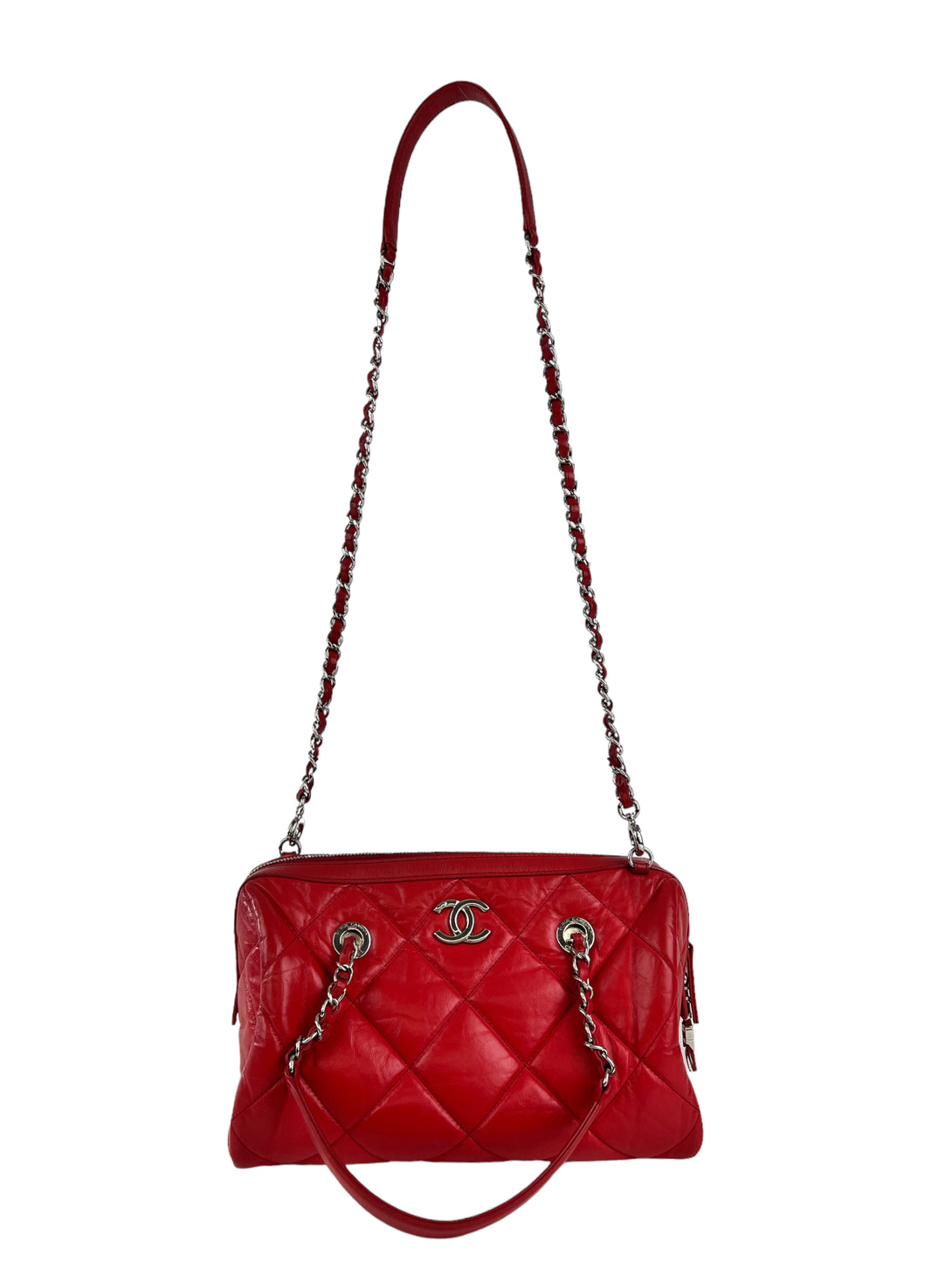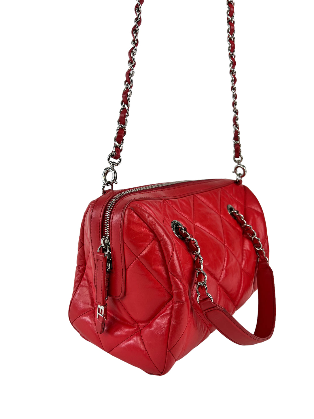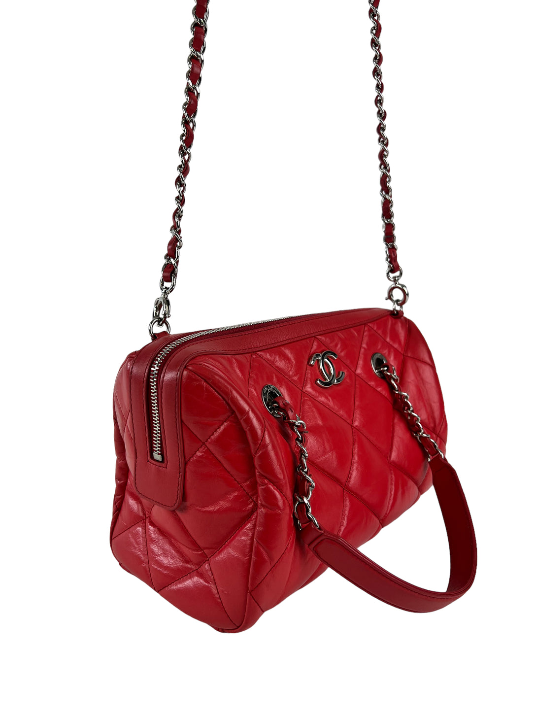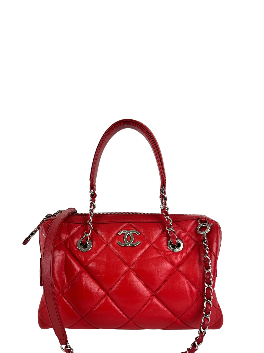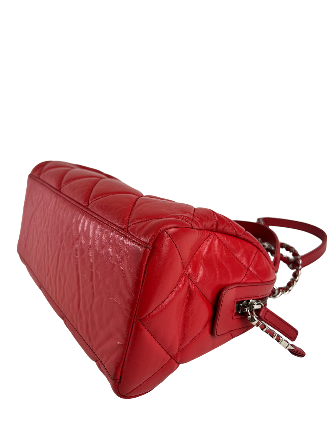 Chanel Red Quilted Calfskin Leather Convertible Bowling Bag