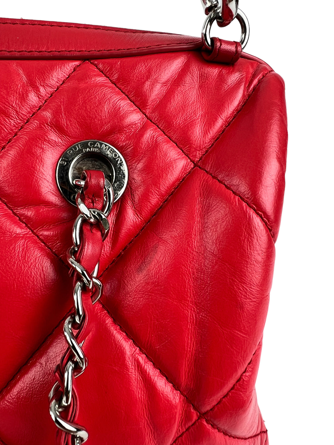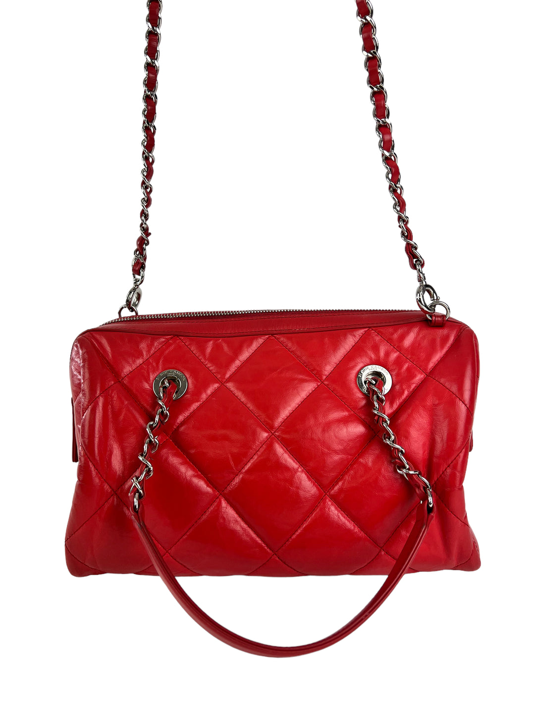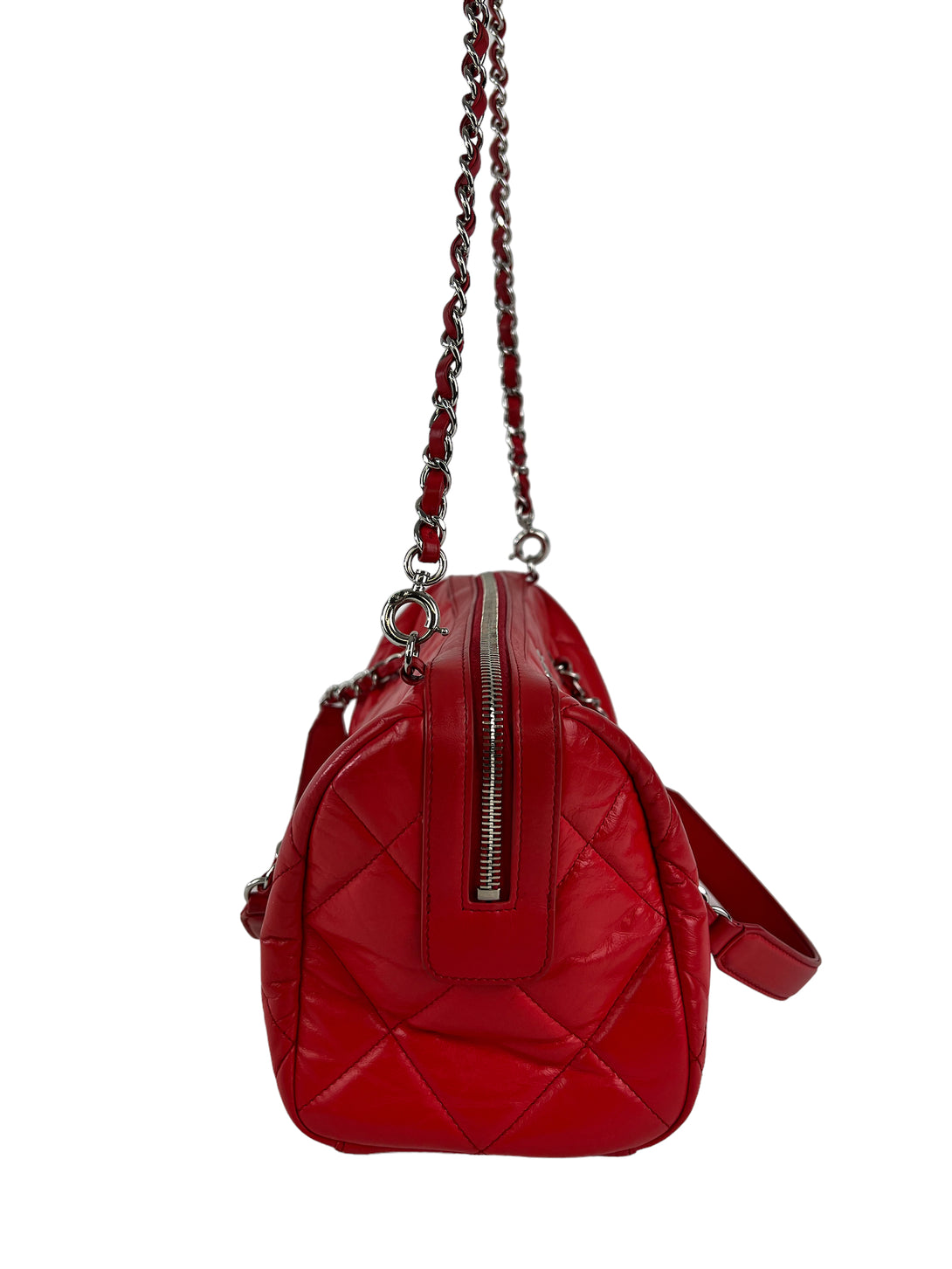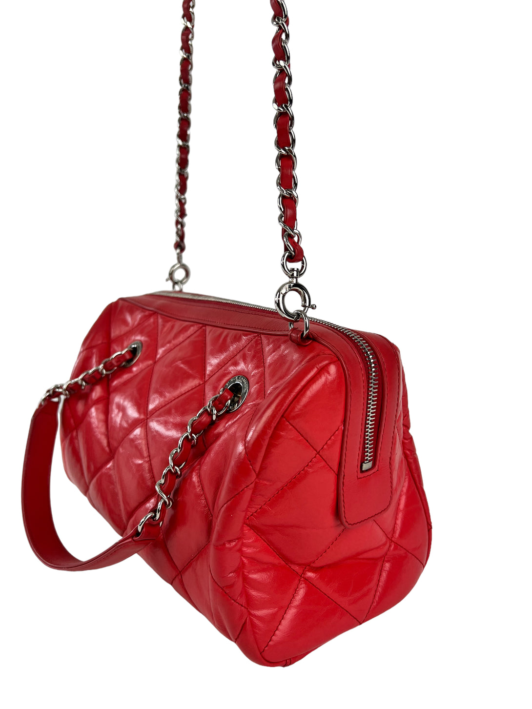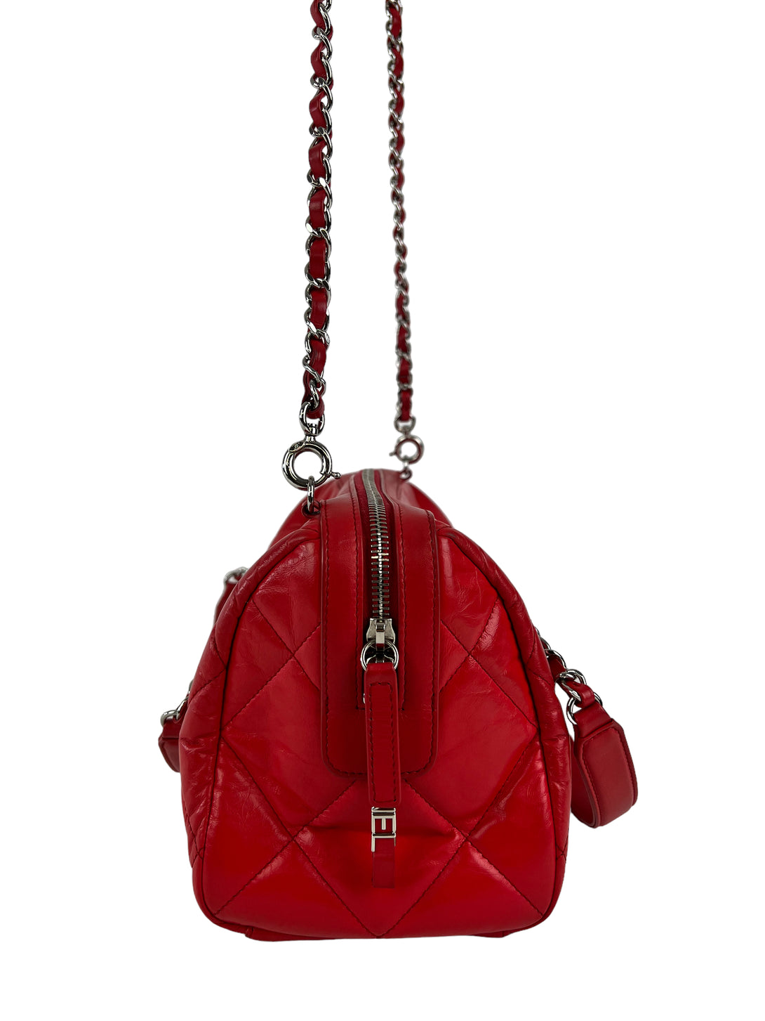 Chanel Red Quilted Calfskin Leather Convertible Bowling Bag