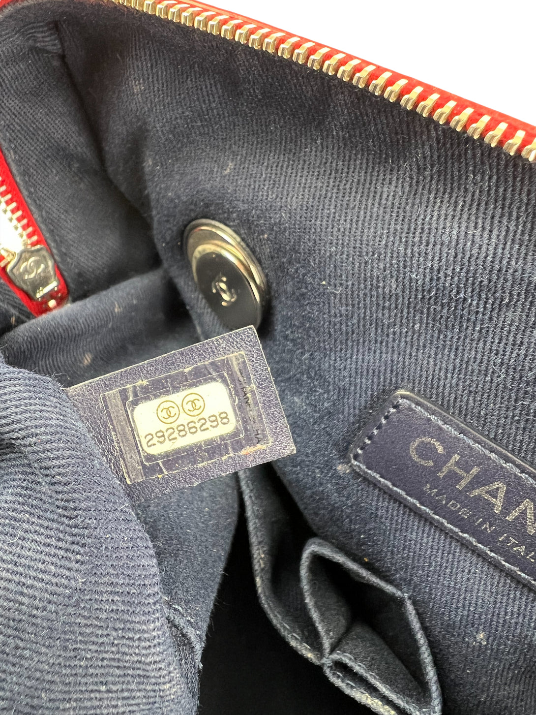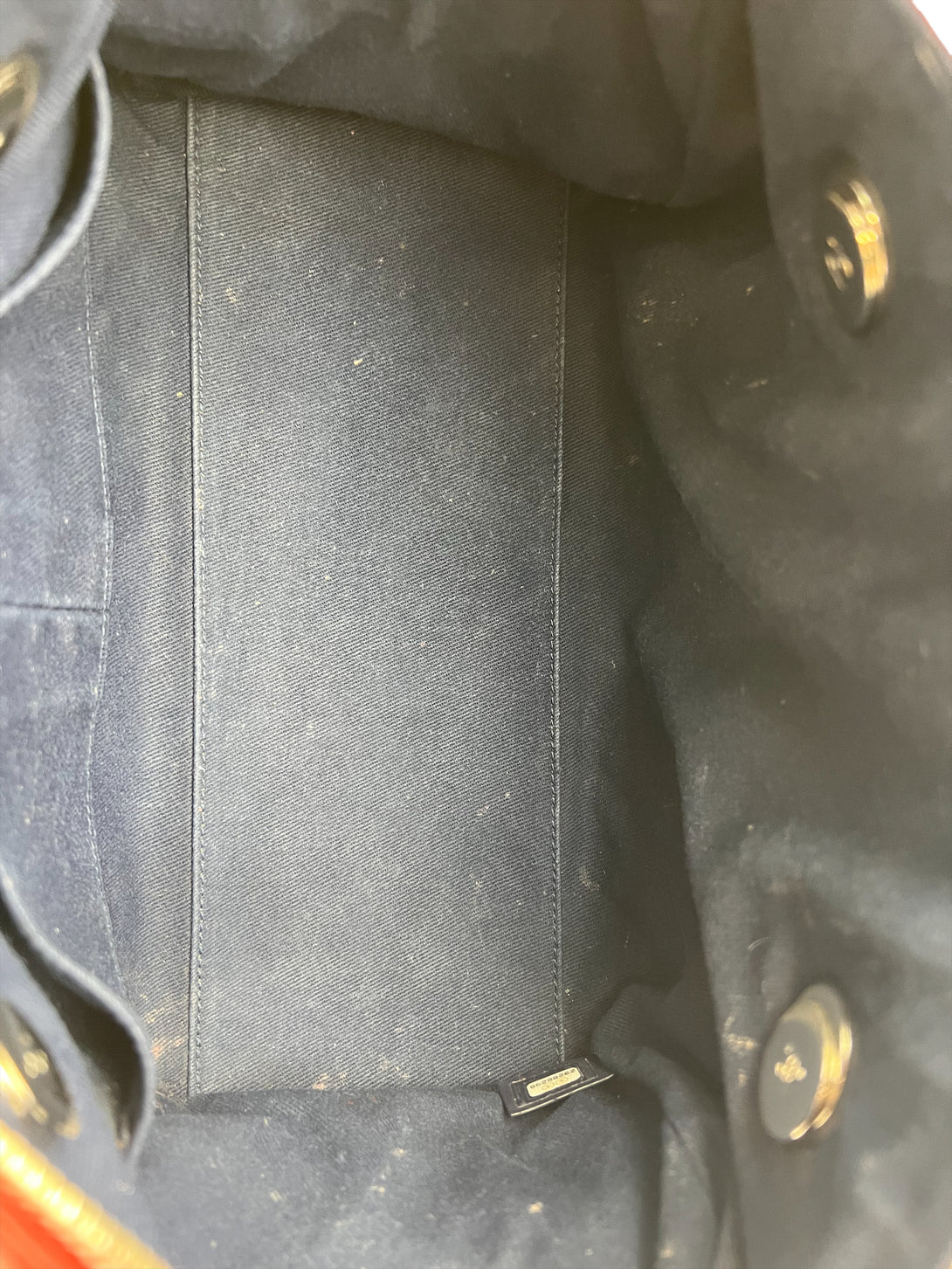 Good: Items show more prominent wear such as noticeable discoloration, stains and snags to fabric. May have worn corners and handles, tarnishing to hardware and creasing to leather. Pen or make up marks may be visible in the interior of the bag.