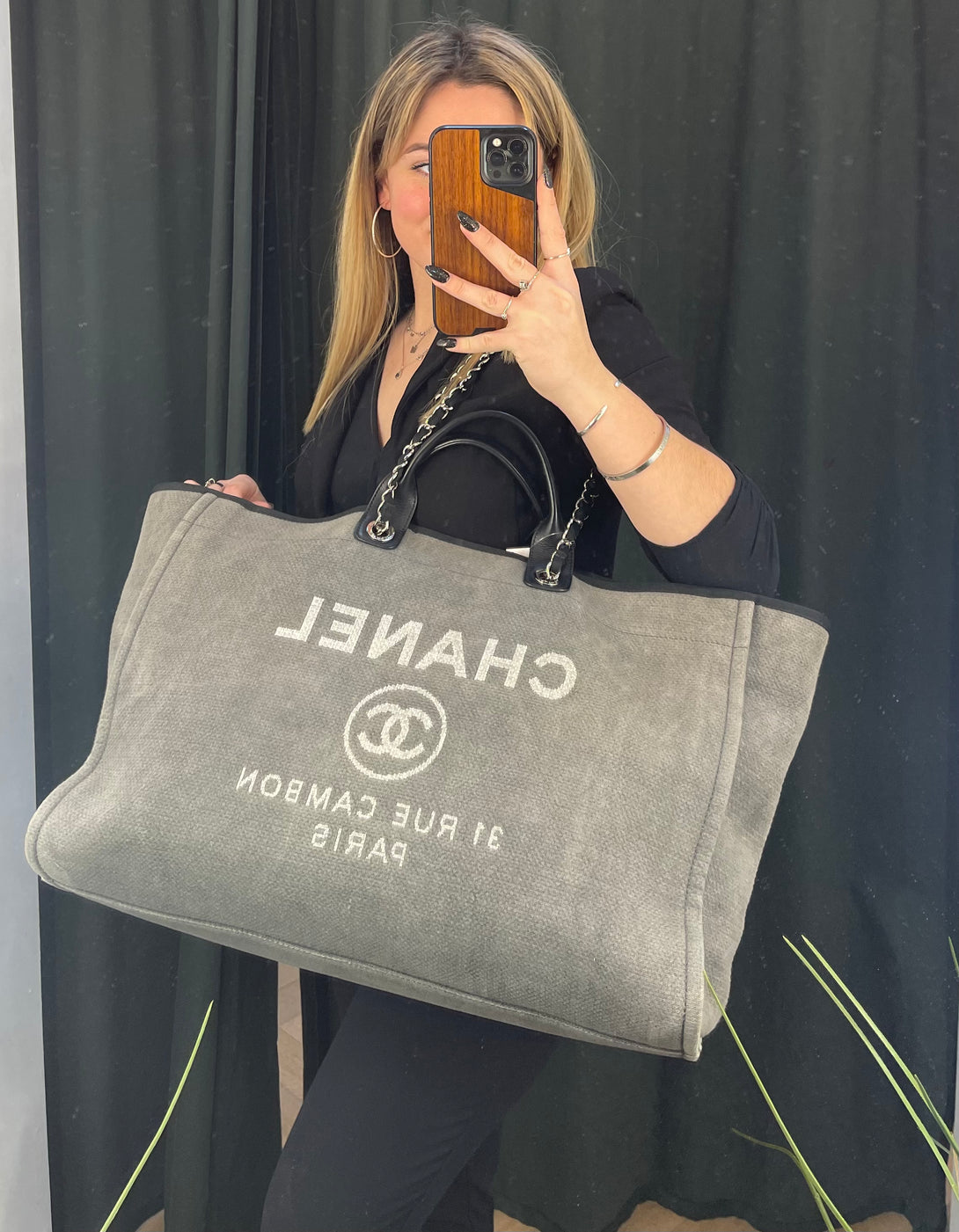 Chanel Large Grey Canvas / Tweed Deauville Tote