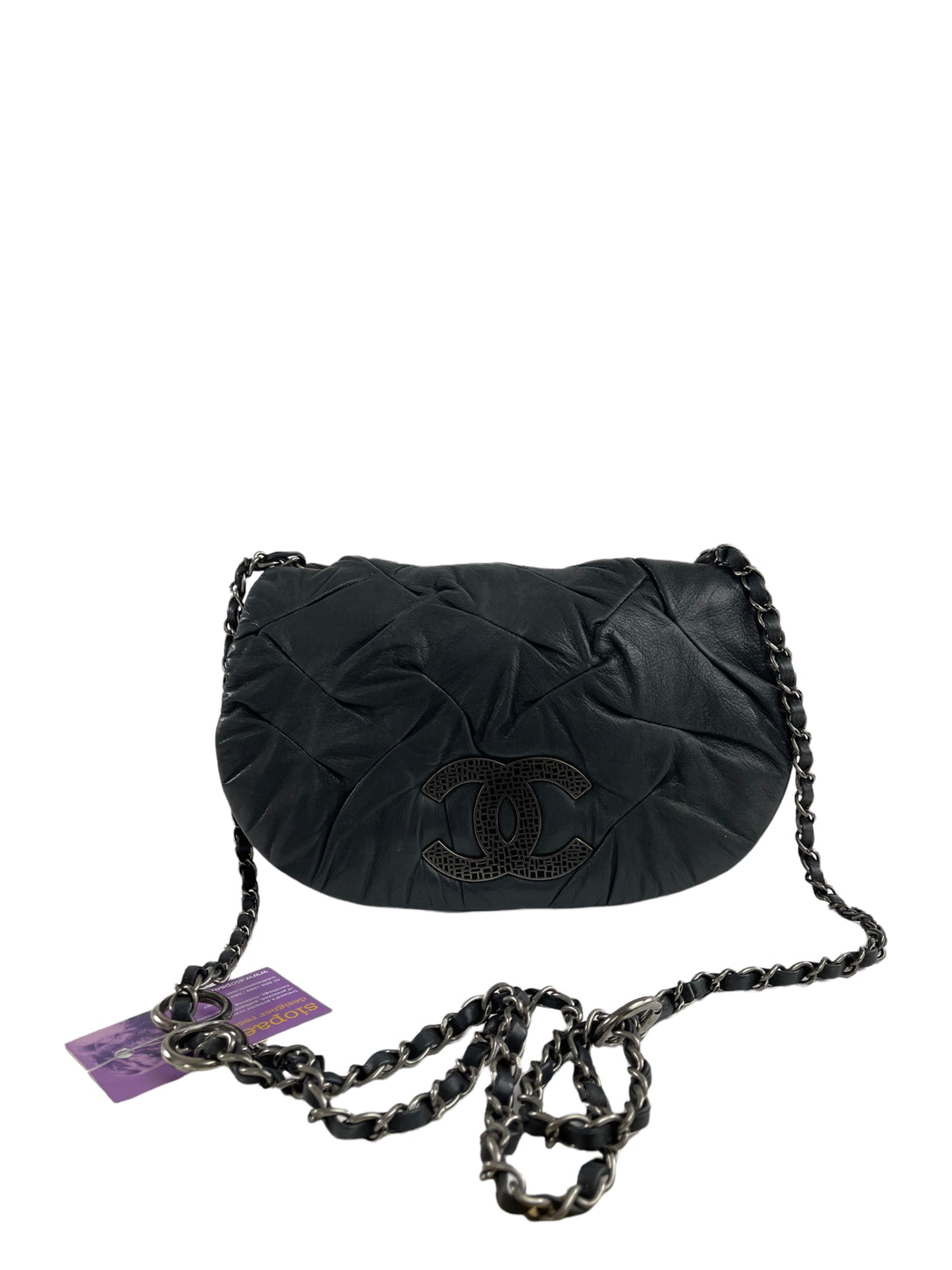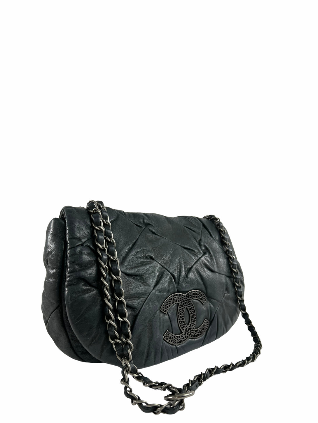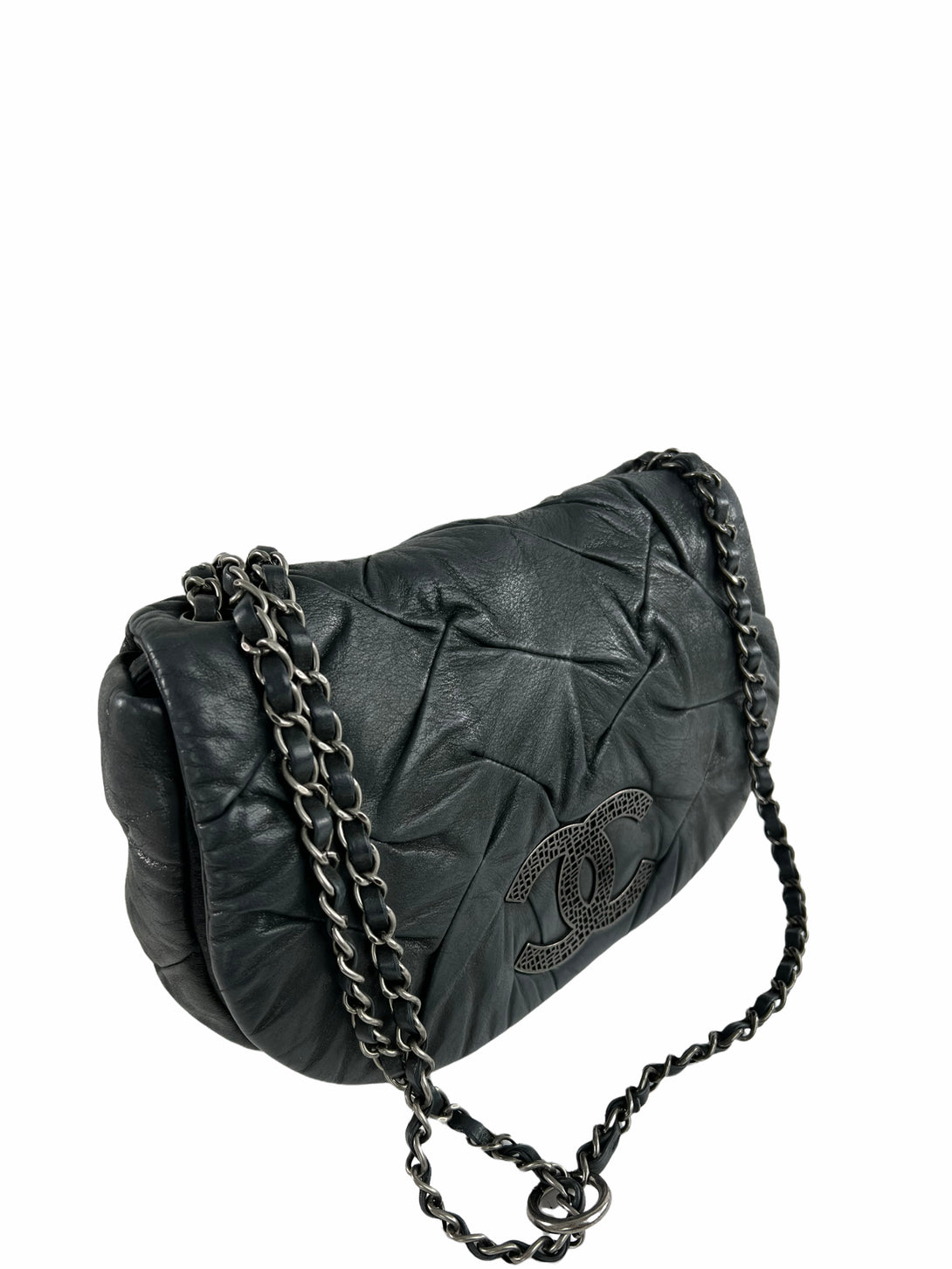 Chanel Grey Iridescent Calfskin Leather "Glint" Messenger