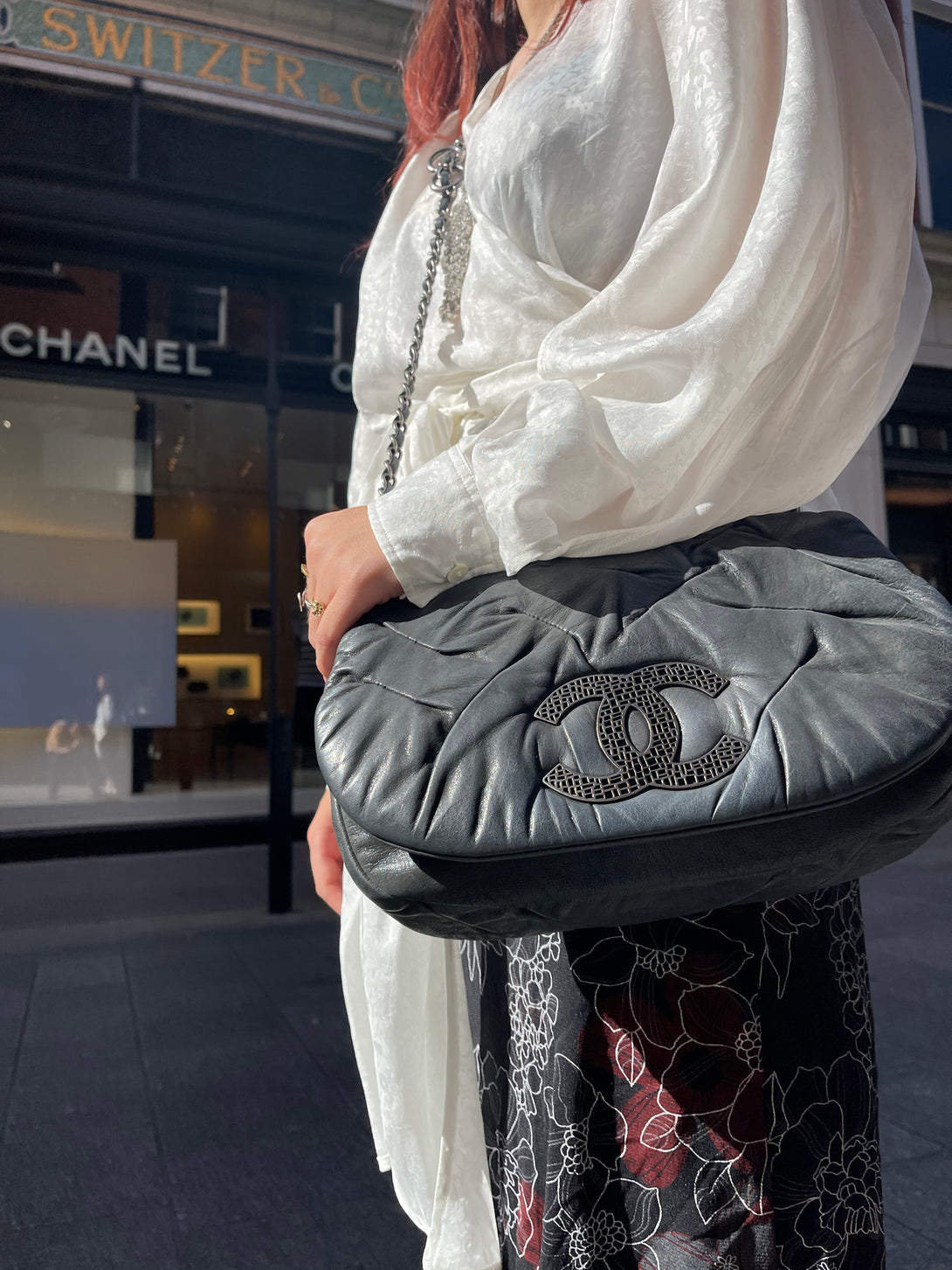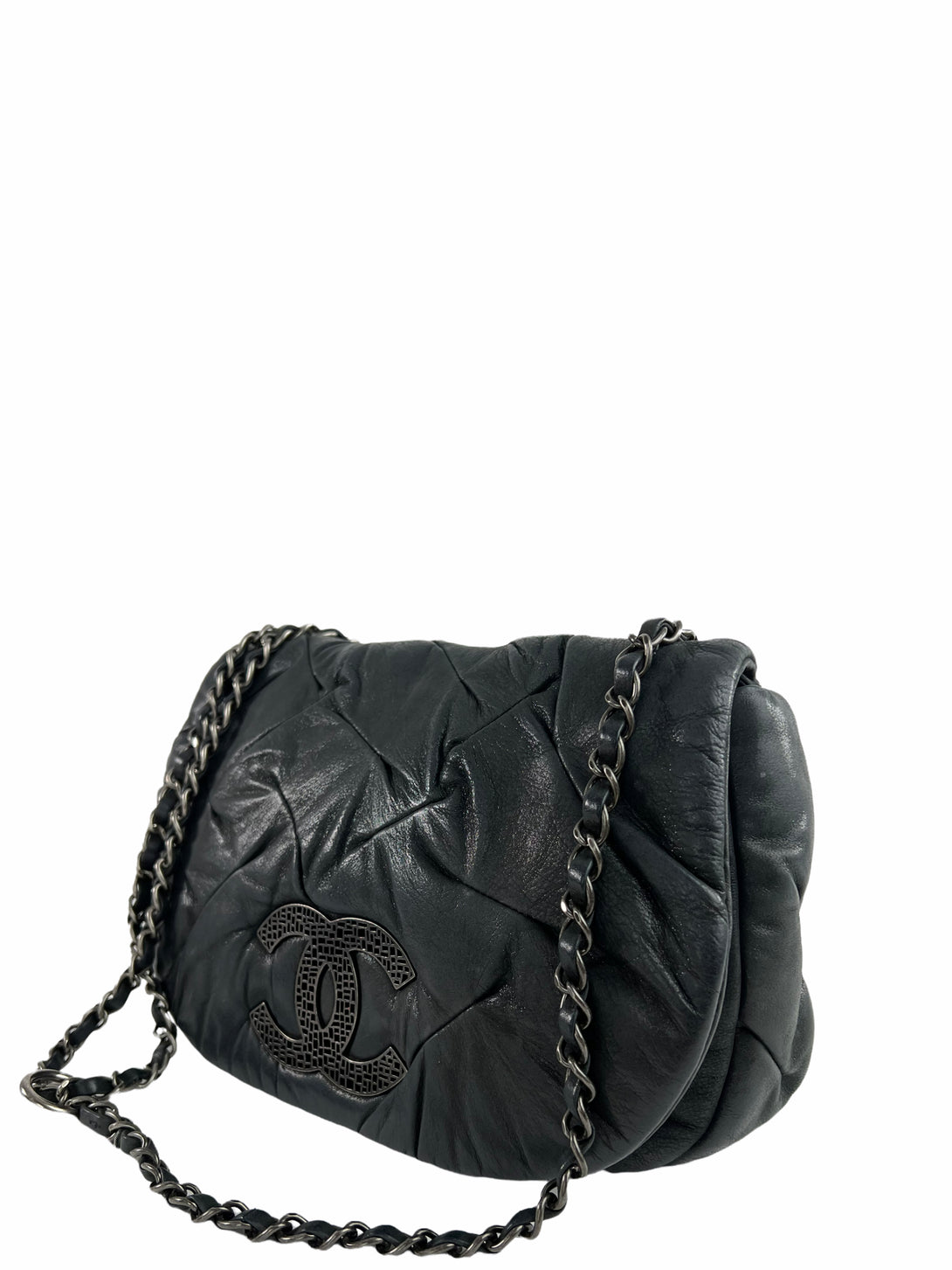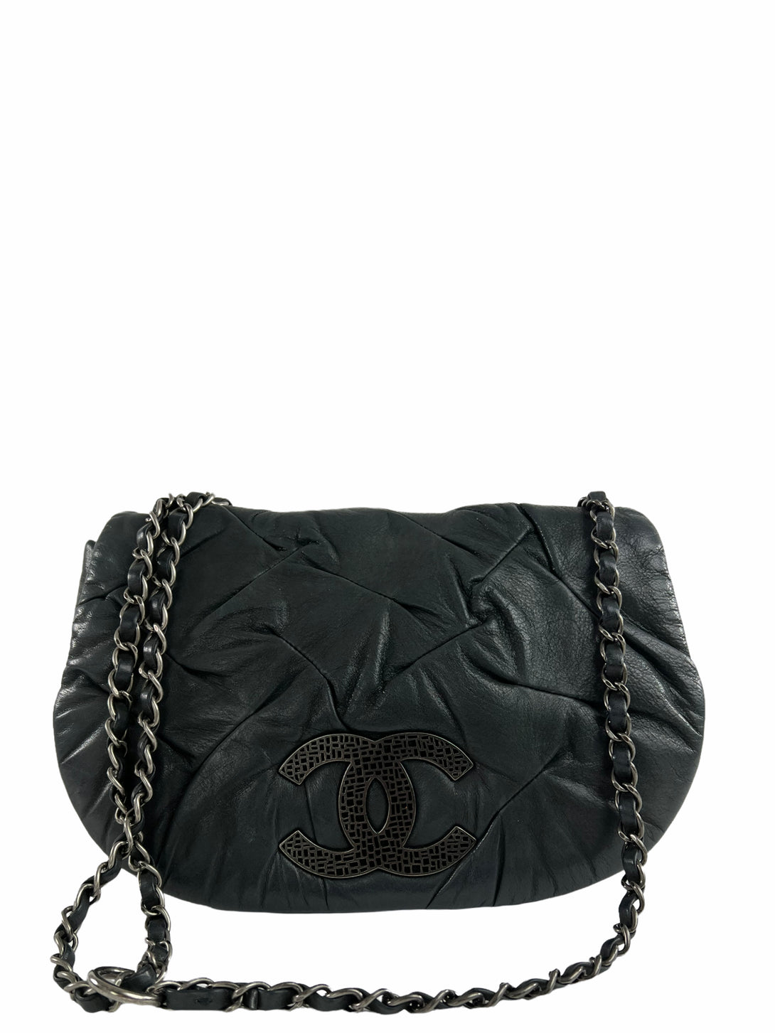 Chanel Grey Iridescent Calfskin Leather "Glint" Messenger
